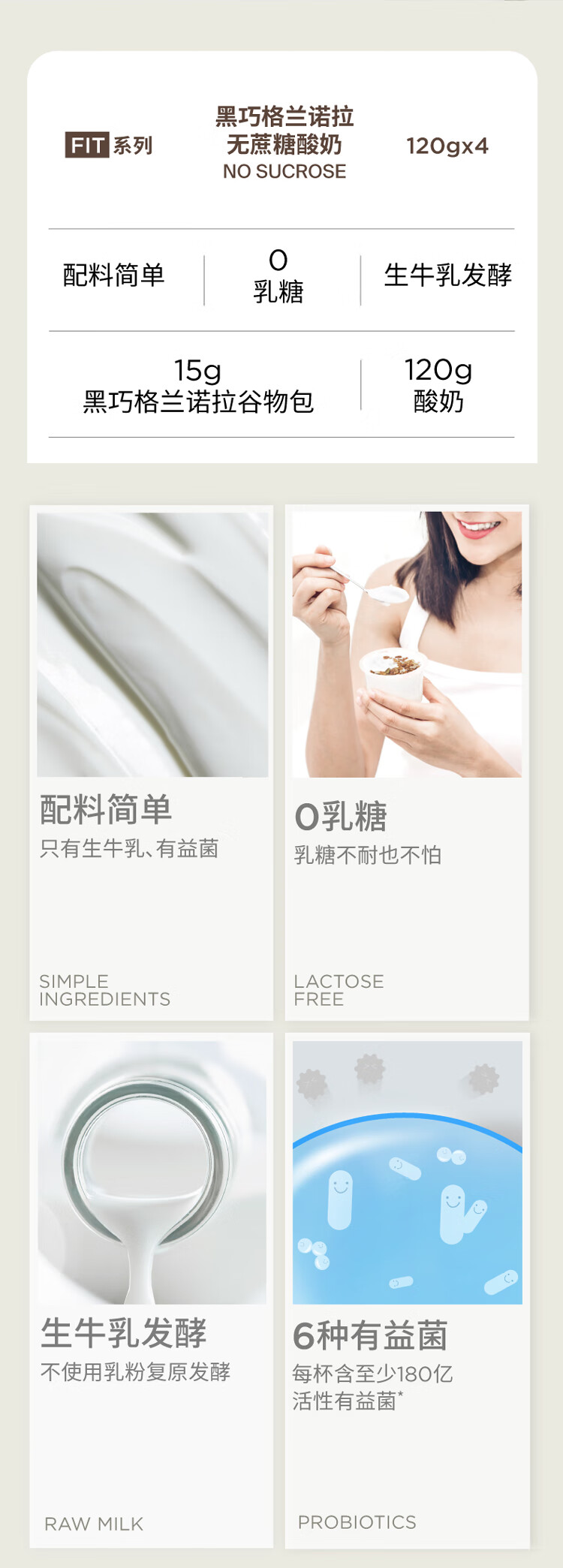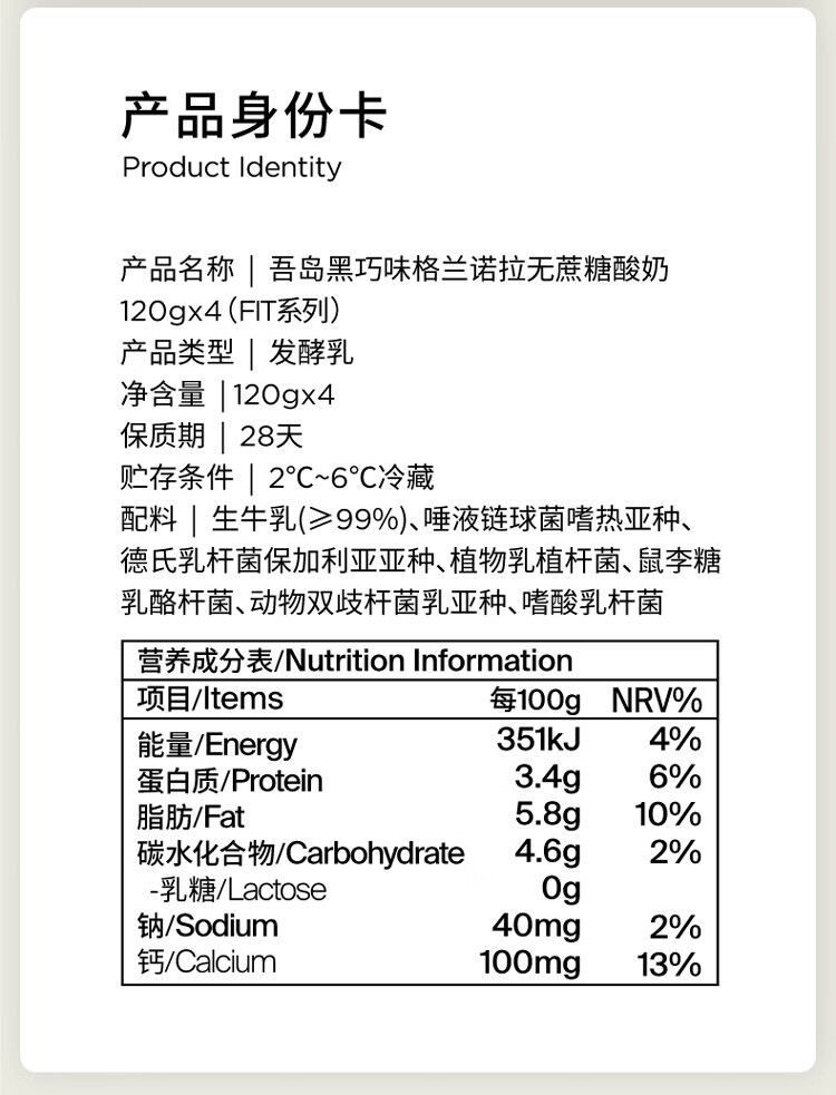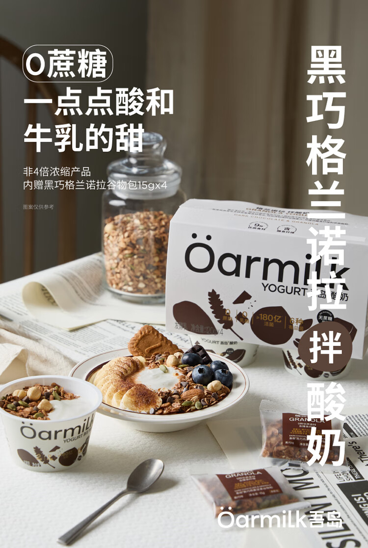OarmiLk吾岛黑巧味格兰诺拉无蔗糖酸奶120gx4杯低温酸奶谷物杯