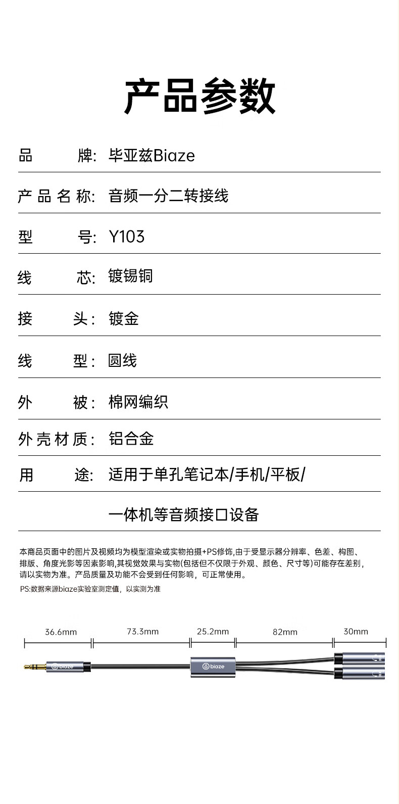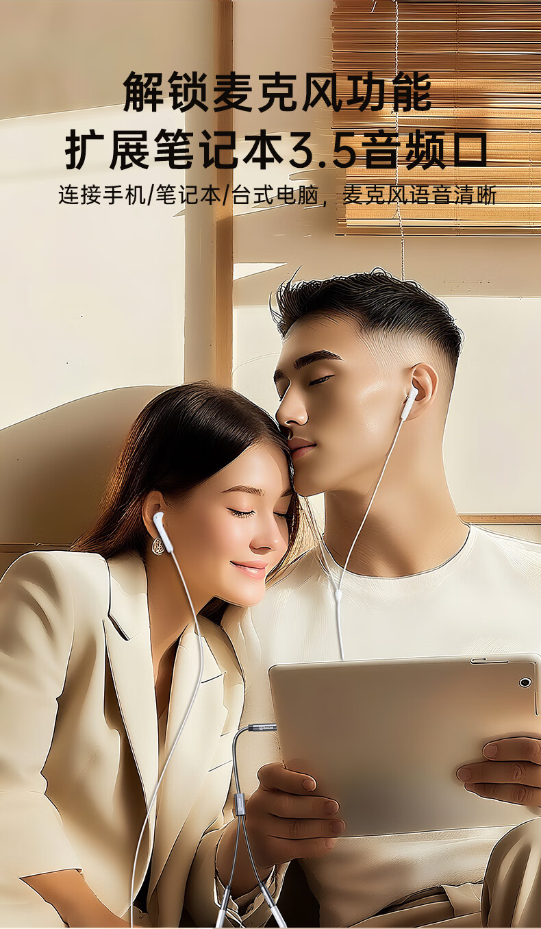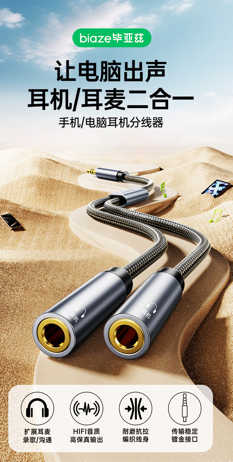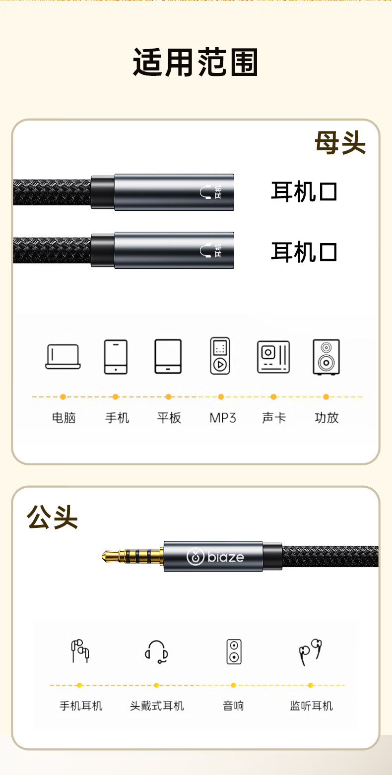 毕亚兹 3.5mm音频线一分二 公对母情侣耳机AUX分线器 手机平板音响转接延长线