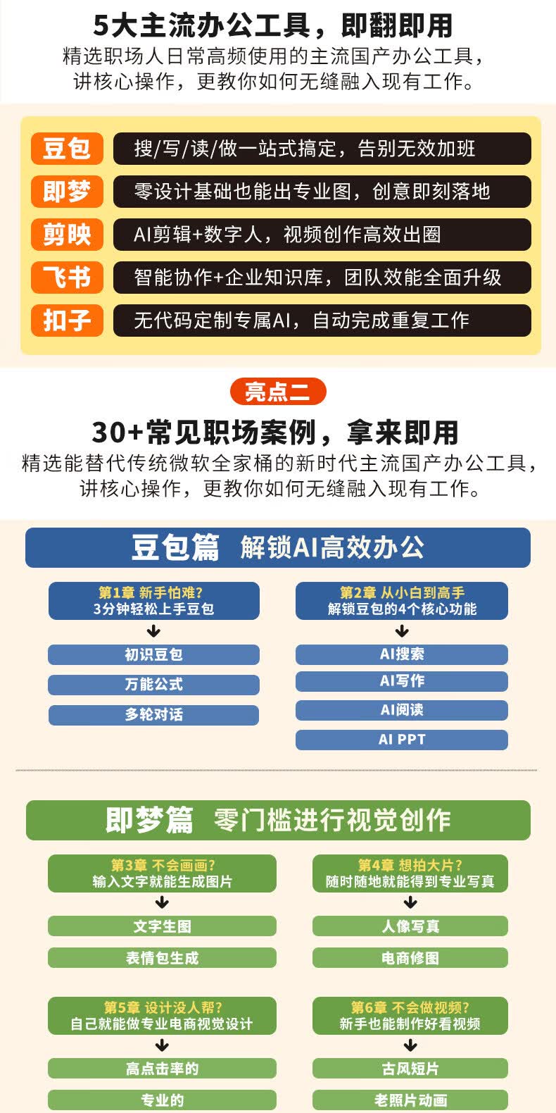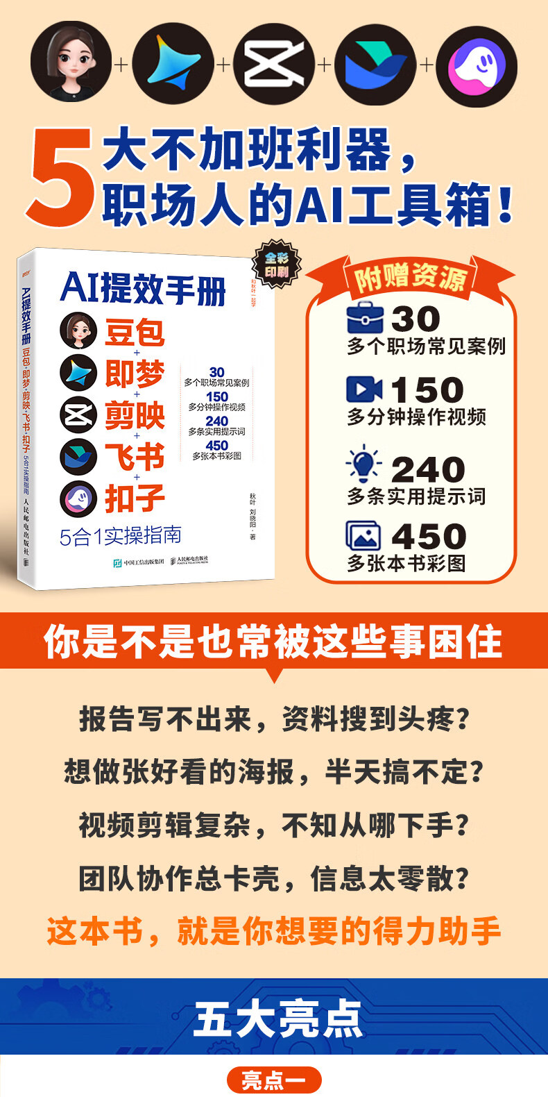 【当当 正版】AI提效手册 豆包+即梦+剪映+飞书+扣子5合1实操指南 豆包从入门到精通书籍 豆包ai时代创富书籍 豆包ai赚钱手册 【央视网推荐】AI提效手册