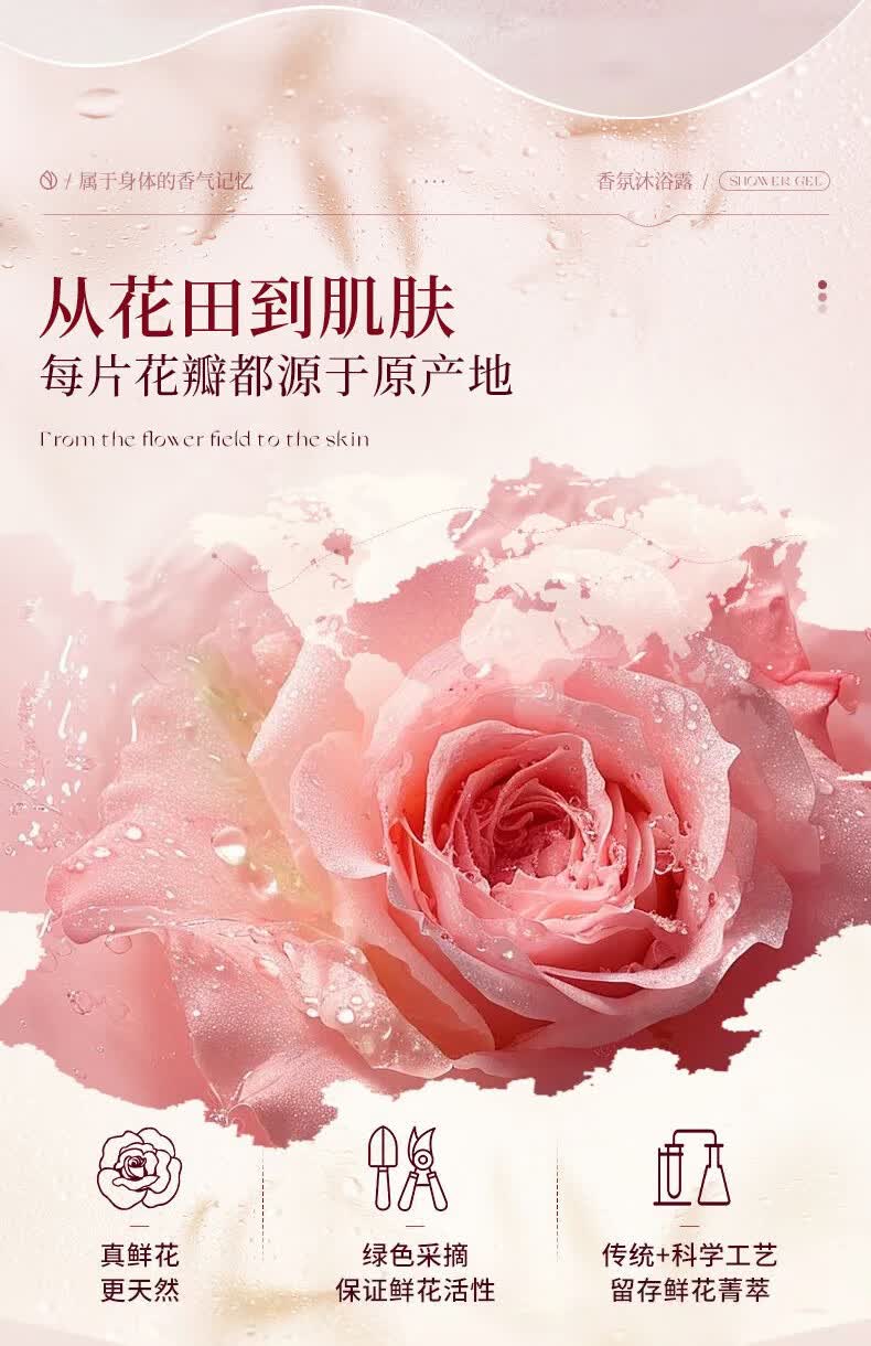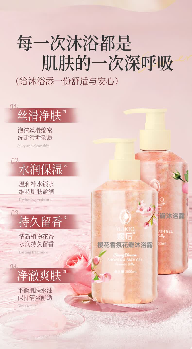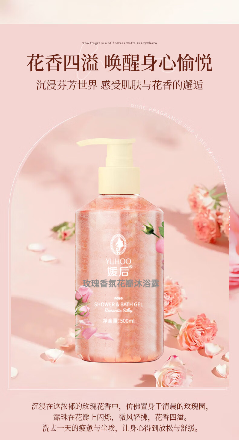 媛后花瓣香氛沐浴露持久留香滋润保湿樱花玫瑰香味乳液男女通用沐浴液 【2瓶装】樱花+玫瑰各1瓶