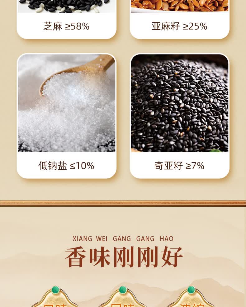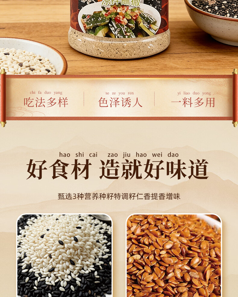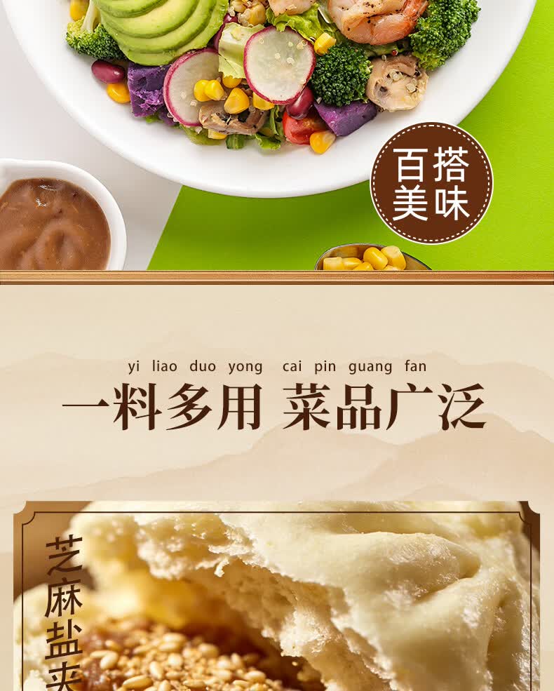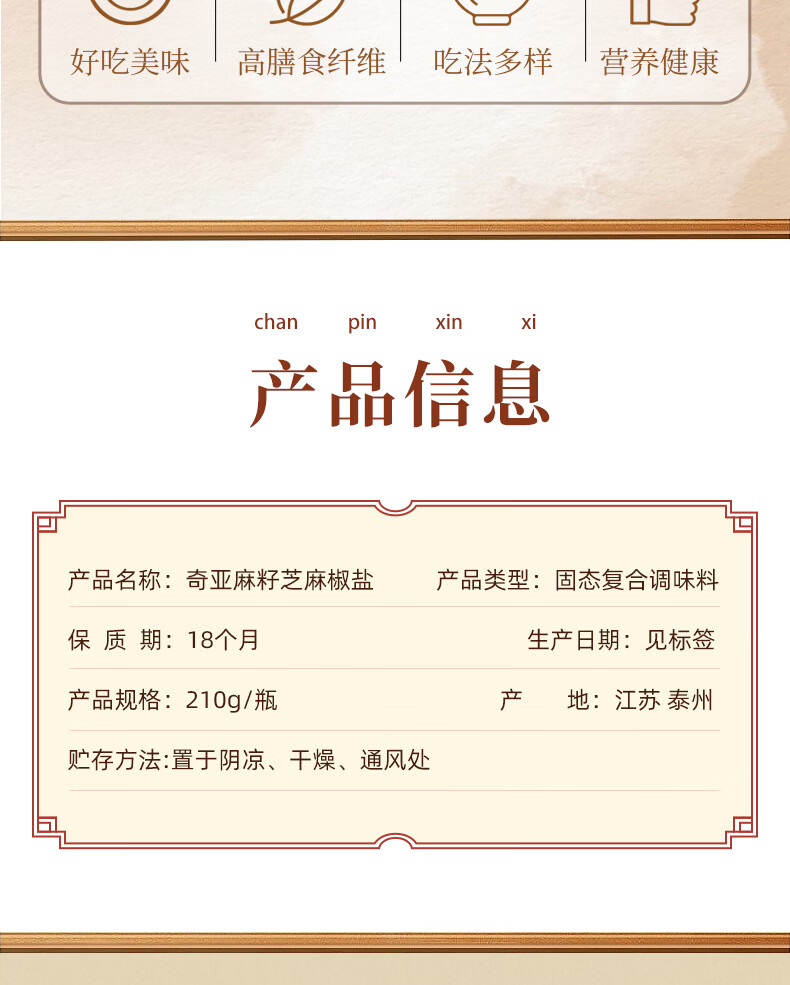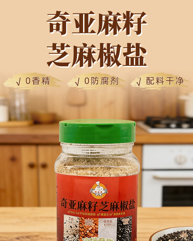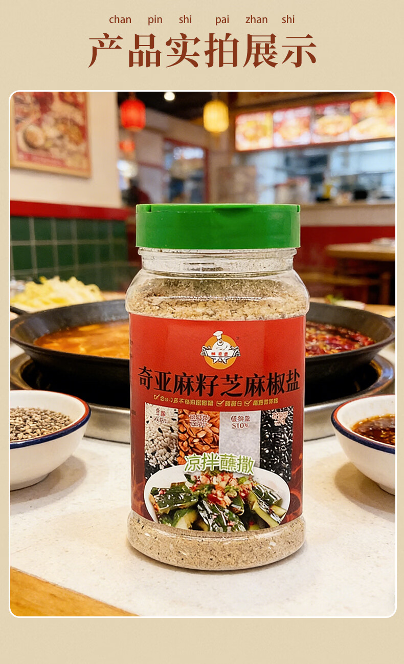 味赞臣奇亚籽芝麻椒盐亚麻芝麻盐夹馍面包沙拉拌料水煮菜轻食调味料蘸料 一瓶210克【尝鲜优选】