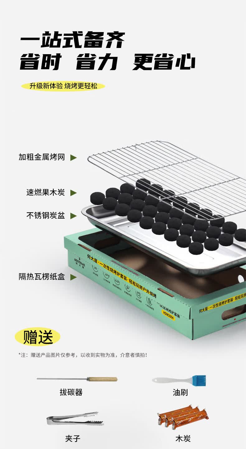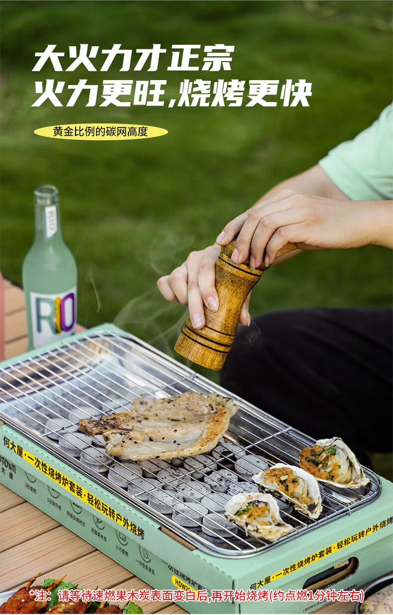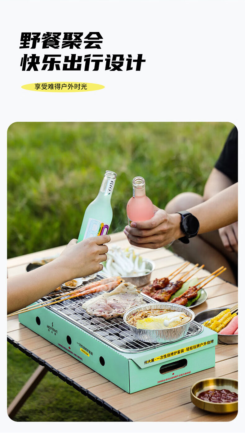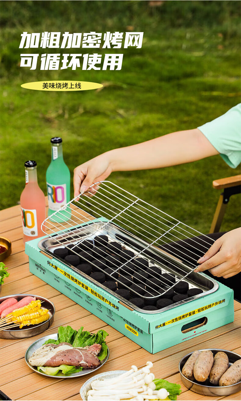 何大屋(Hodtown)一次性烧烤炉户外碳烤炉烤肉炉室内家用无烟围炉煮茶烧烤架 一次性烧烤炉套装 HDW2004