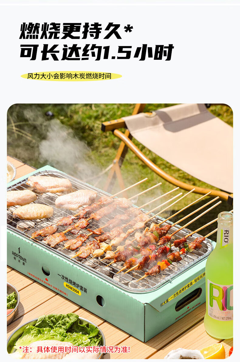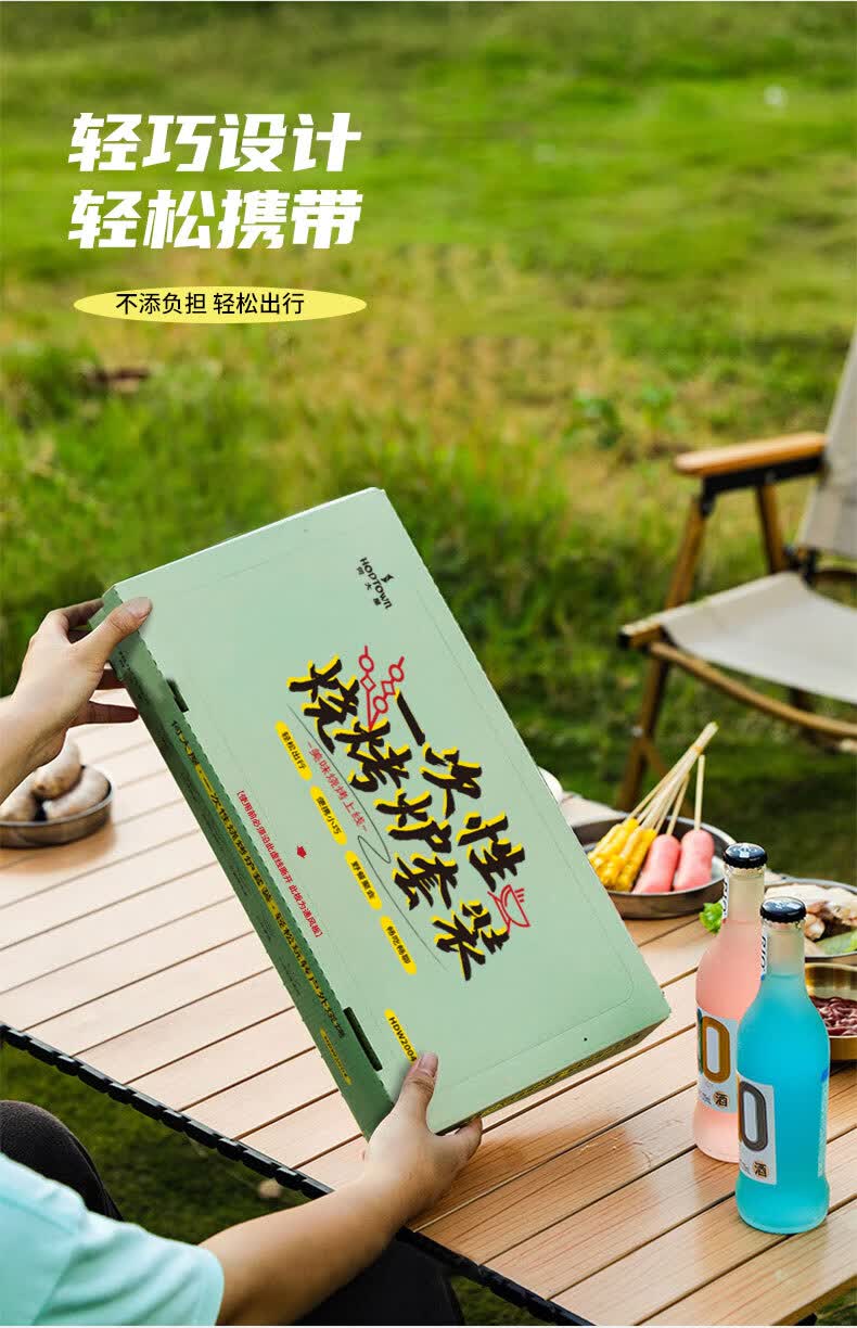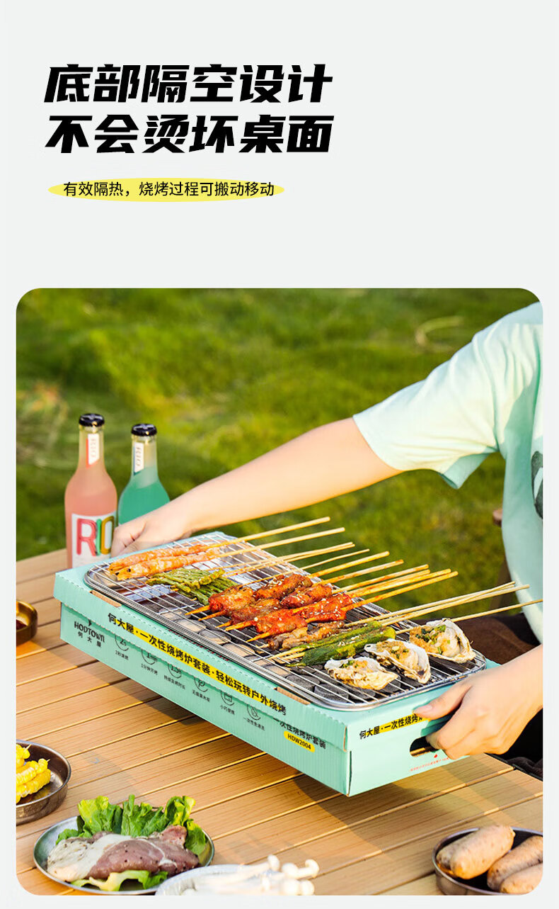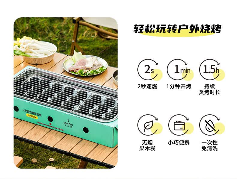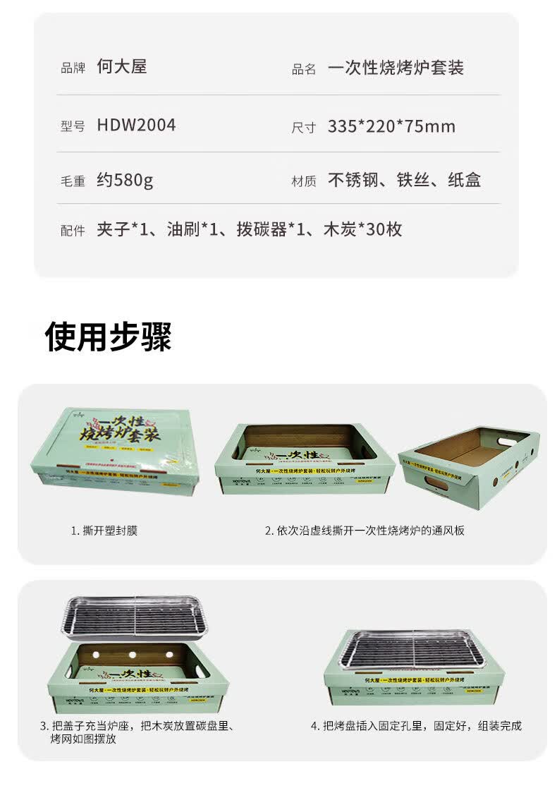 何大屋(Hodtown)一次性烧烤炉户外碳烤炉烤肉炉室内家用无烟围炉煮茶烧烤架 一次性烧烤炉套装 HDW2004