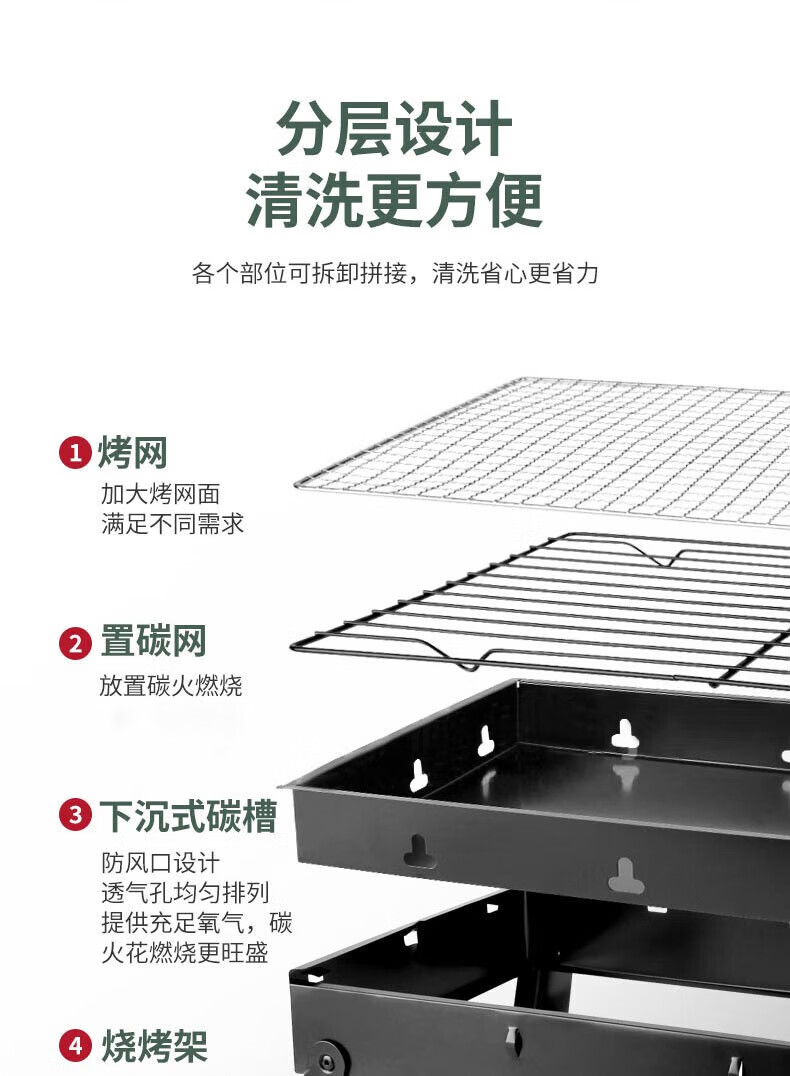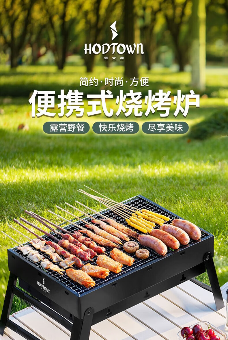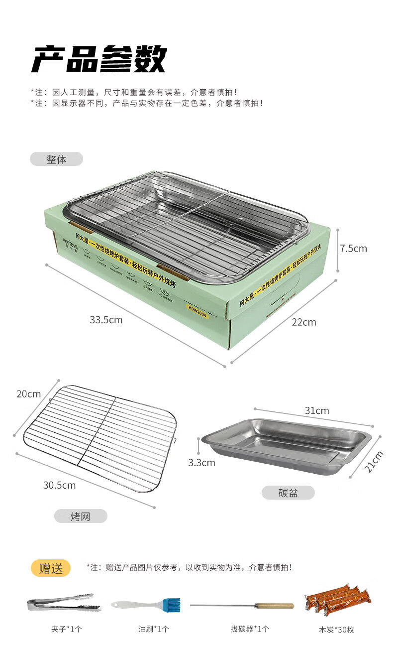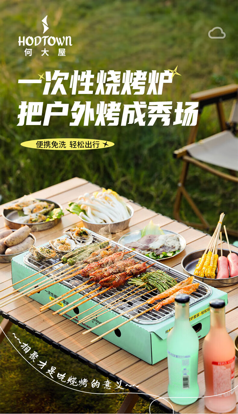 何大屋(Hodtown)一次性烧烤炉户外碳烤炉烤肉炉室内家用无烟围炉煮茶烧烤架 一次性烧烤炉套装 HDW2004