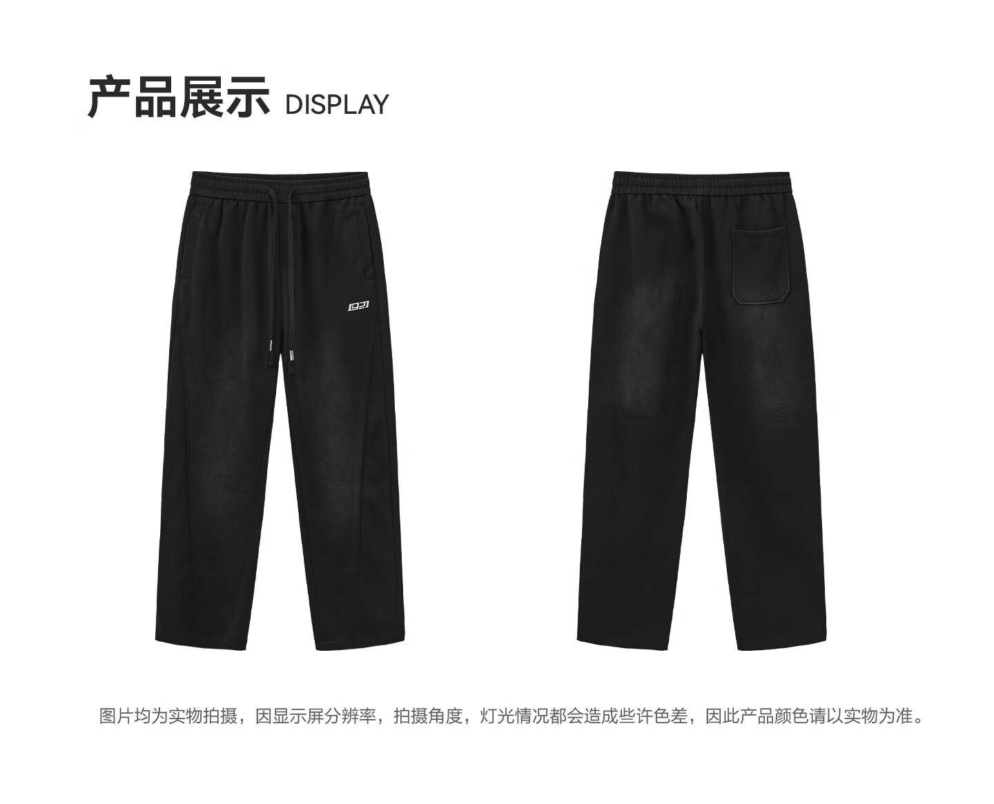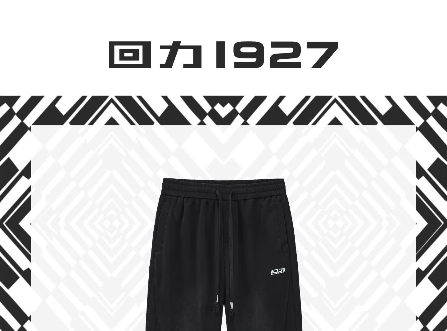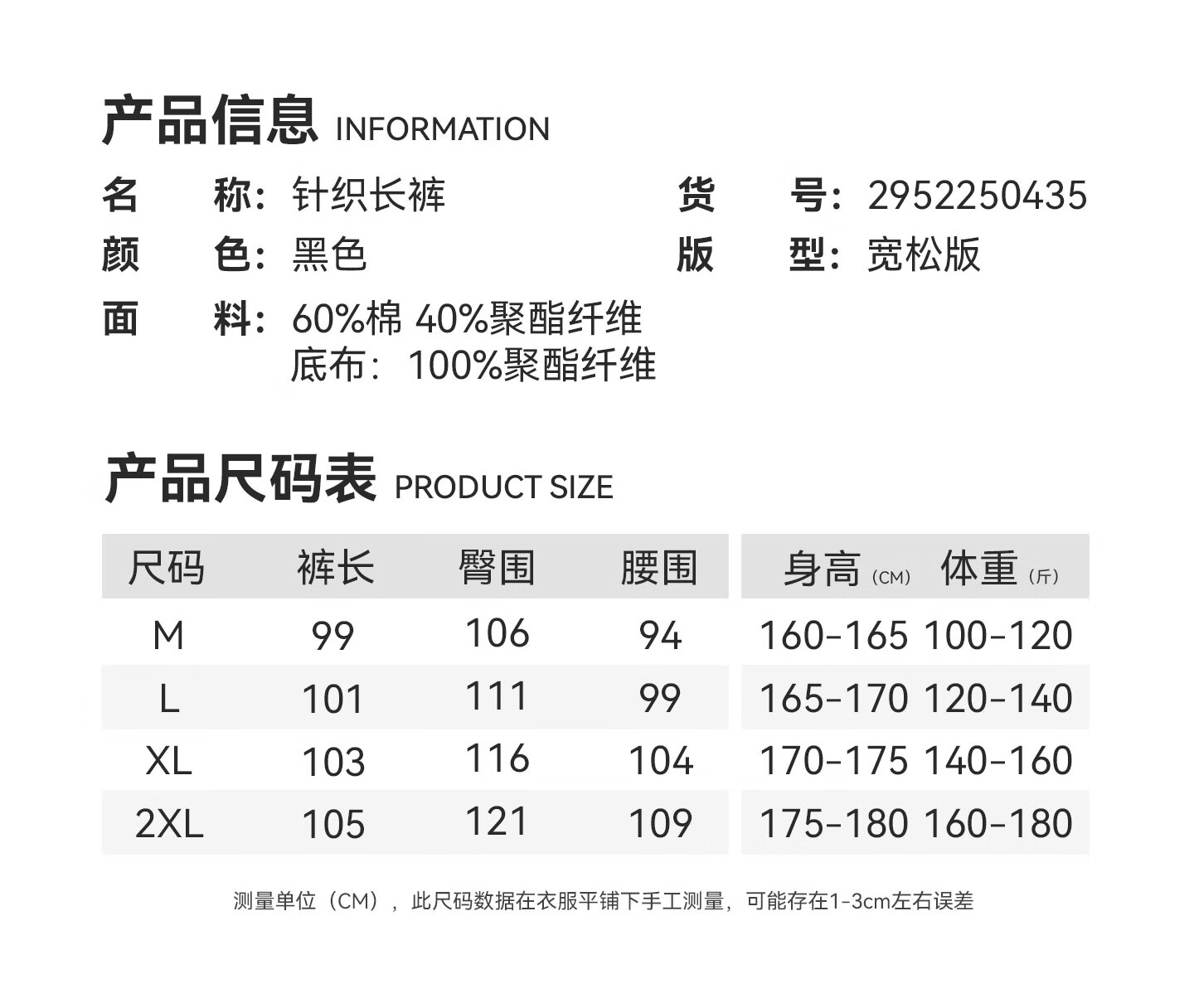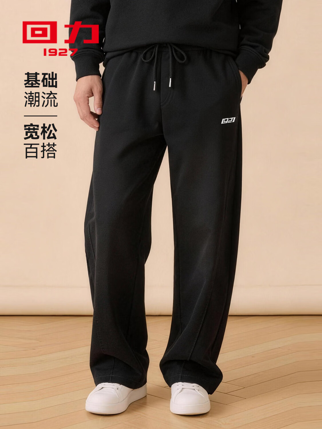 回力1927宽松休闲裤百搭简约时尚潮流舒适男女同款针织长裤 黑色 2XL