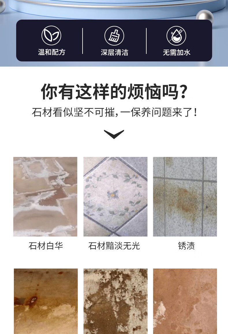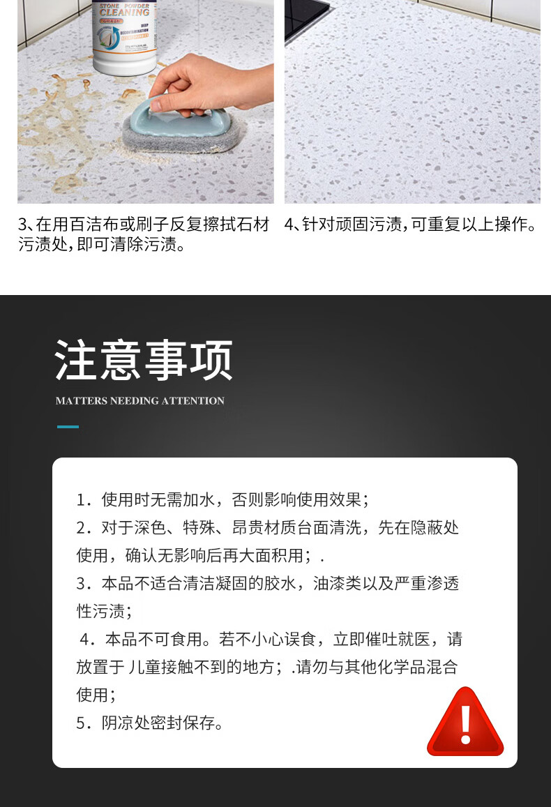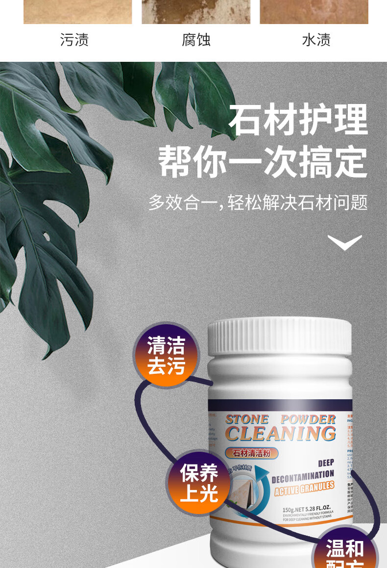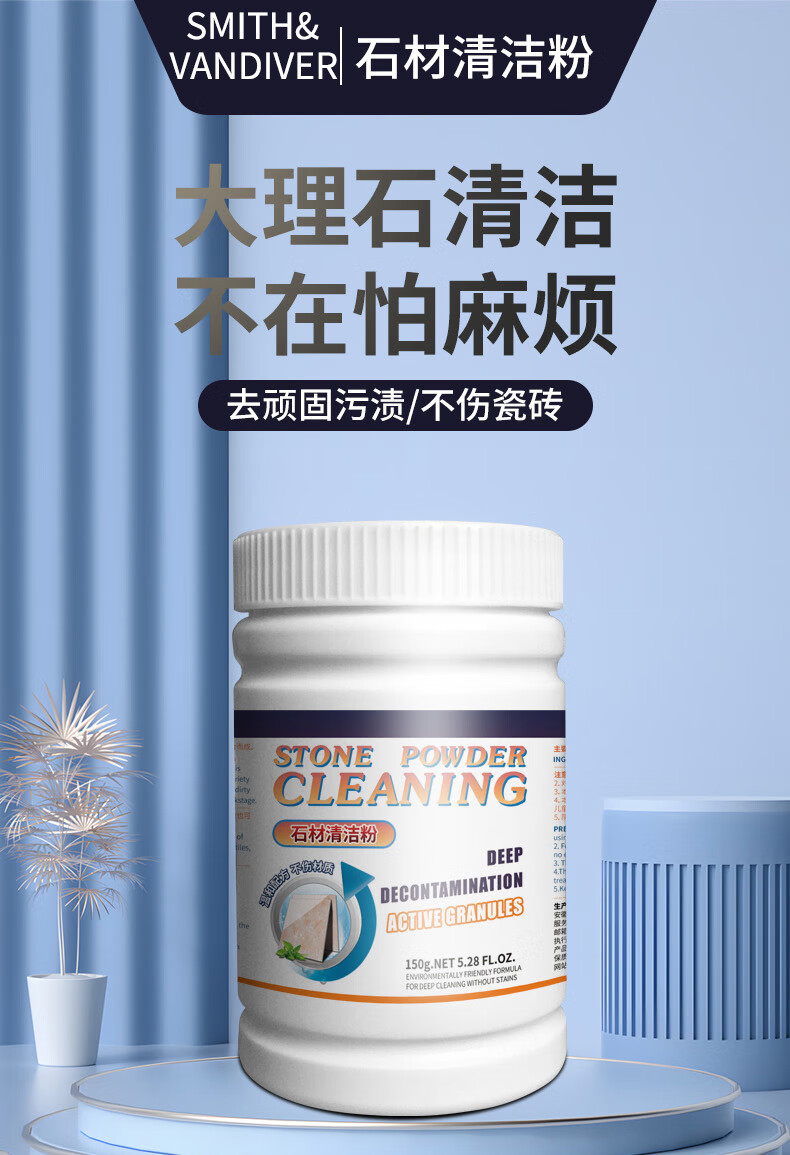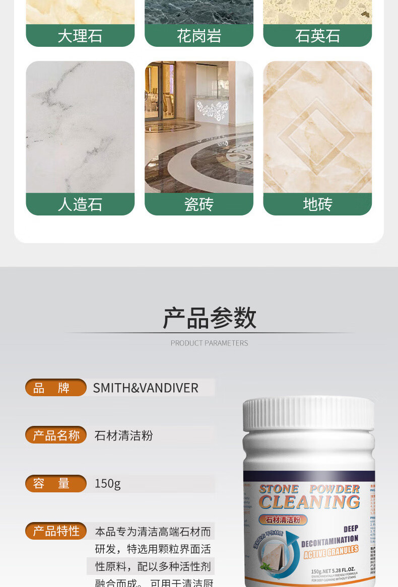 SMITH&VANDIVER石材清洁粉灶台面大理石清洁剂厨房瓷砖除蜡剂石英石水磨石去污粉 石材清洁粉3瓶装