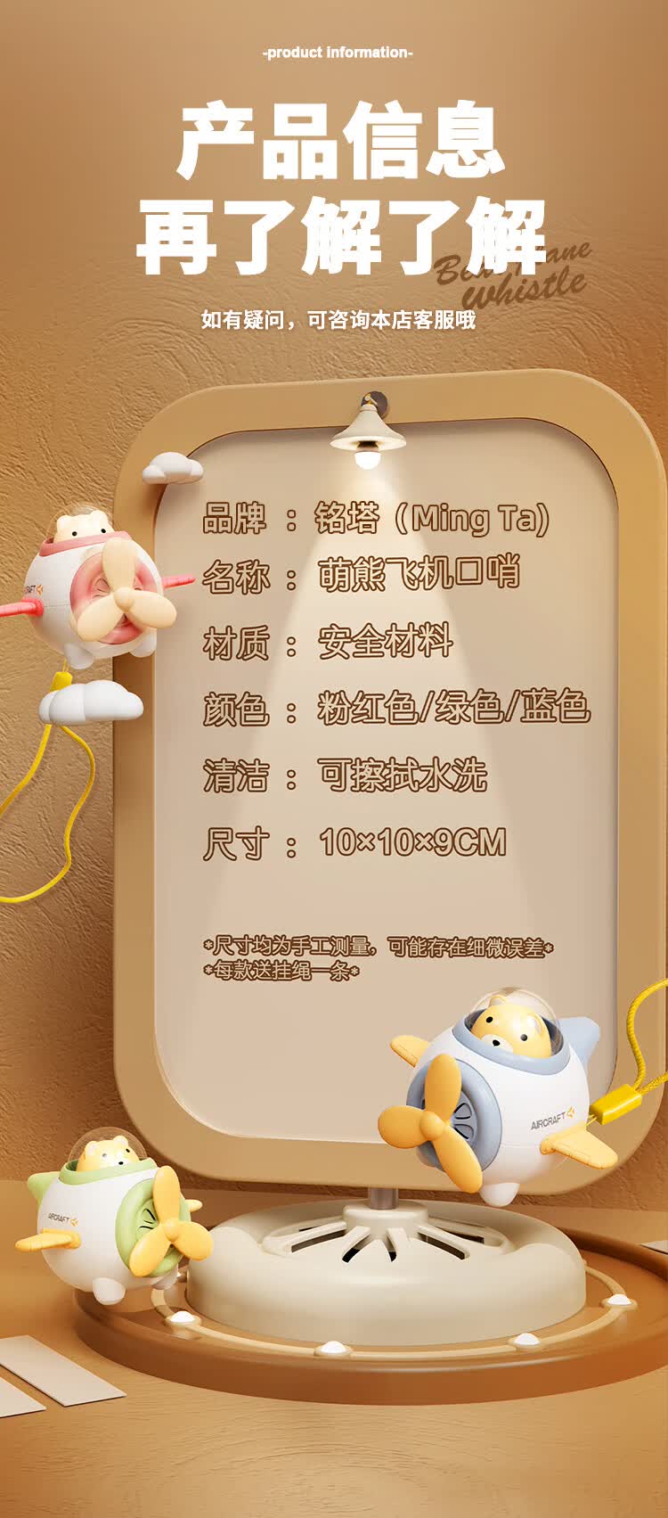 铭塔口哨小飞机儿童玩具男女孩生日礼物 【绿色】口哨小飞机+挂绳