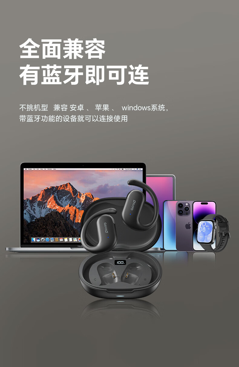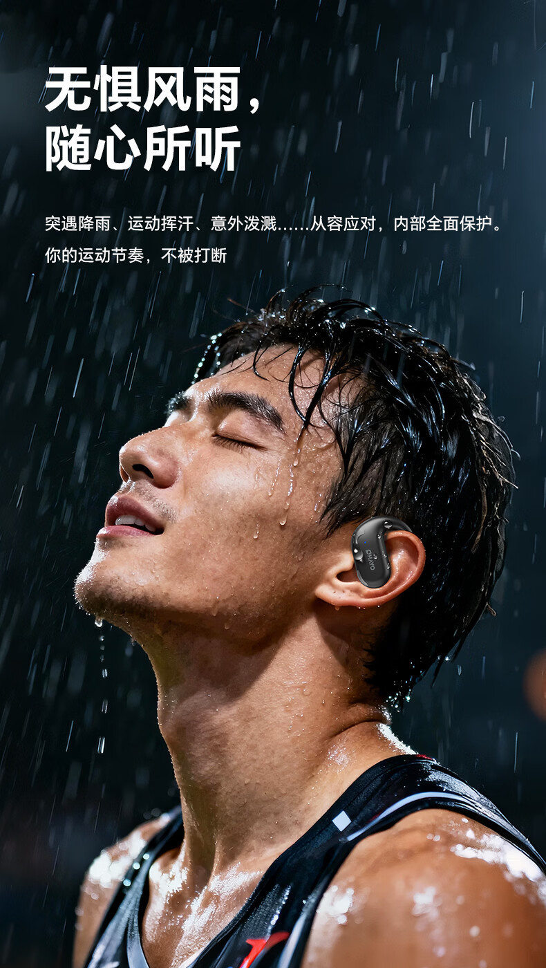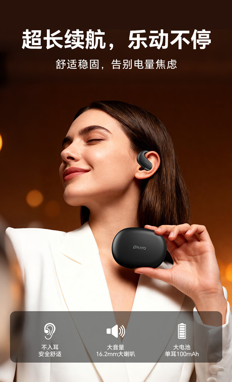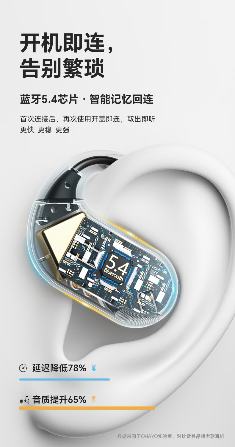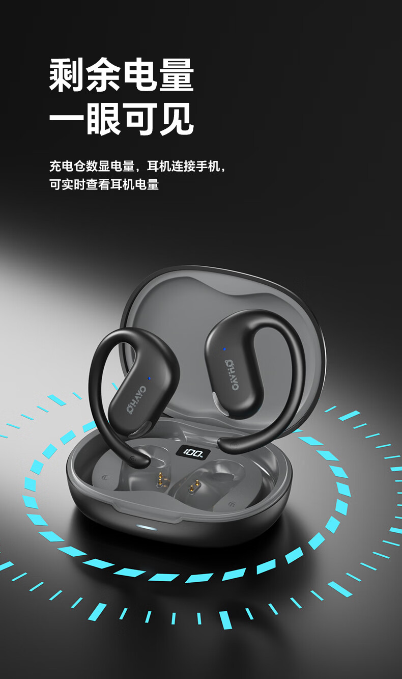雷登(OHAYO)T9 不入耳挂耳式蓝牙耳机2026新款超长续航大电量久戴不痛高音质大音量立体声无线运动耳机 T9曜黑【360°立体环绕】单次12H续航 舒适佩戴+大电量+电量显示