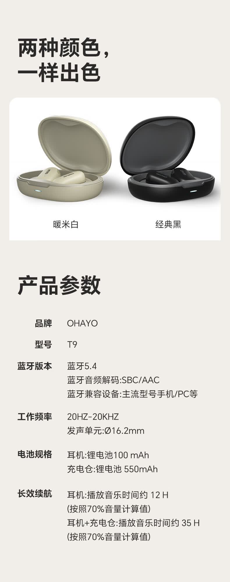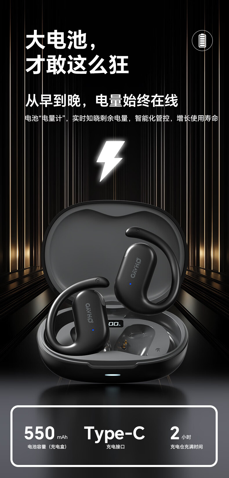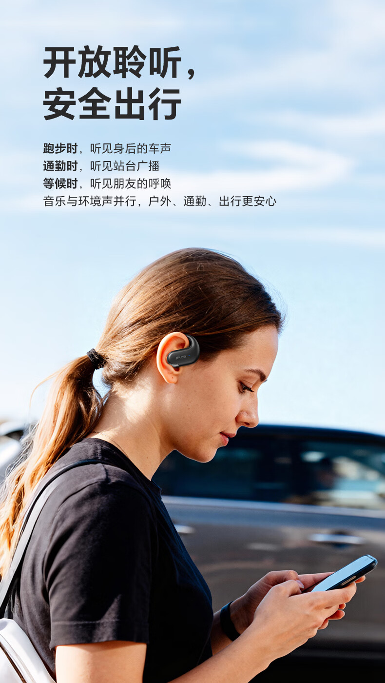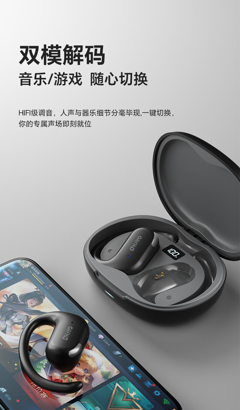 雷登(OHAYO)T9 不入耳挂耳式蓝牙耳机2026新款超长续航大电量久戴不痛高音质大音量立体声无线运动耳机 T9曜黑【360°立体环绕】单次12H续航 舒适佩戴+大电量+电量显示