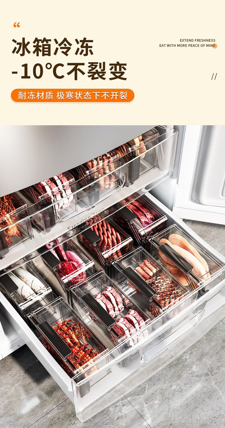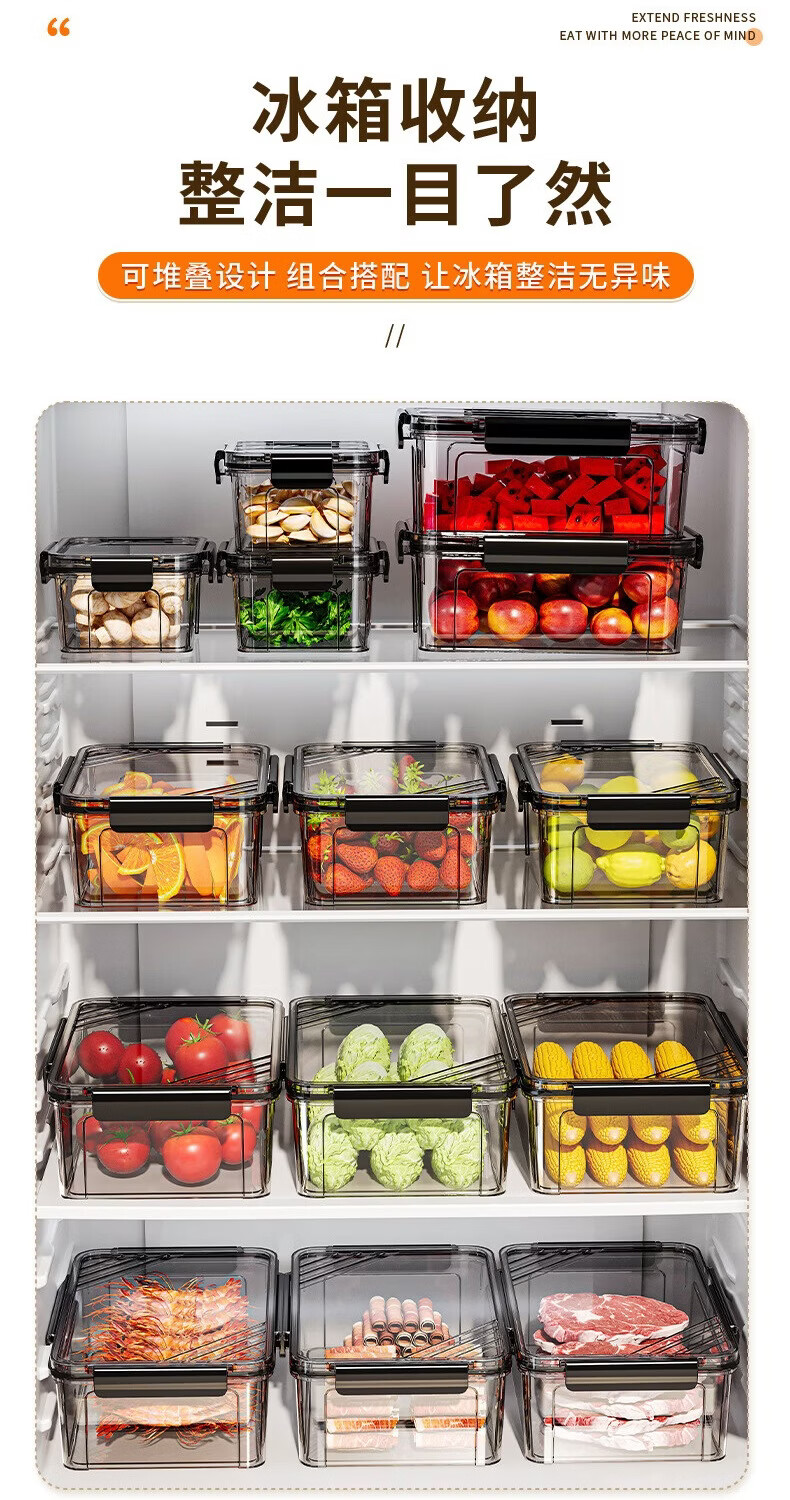 洋臣保鲜盒食品级冰箱专用收纳盒冷冻食物冷藏密封长方形大容量整理盒 颜色随机2个装【约1100ML/个】
