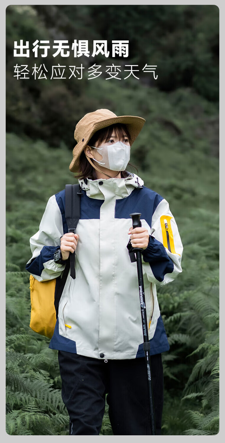 猫人男女三合一防风衣秋冬加绒加厚防风防水透气登山服运动外套滑雪服 女-象牙白 L