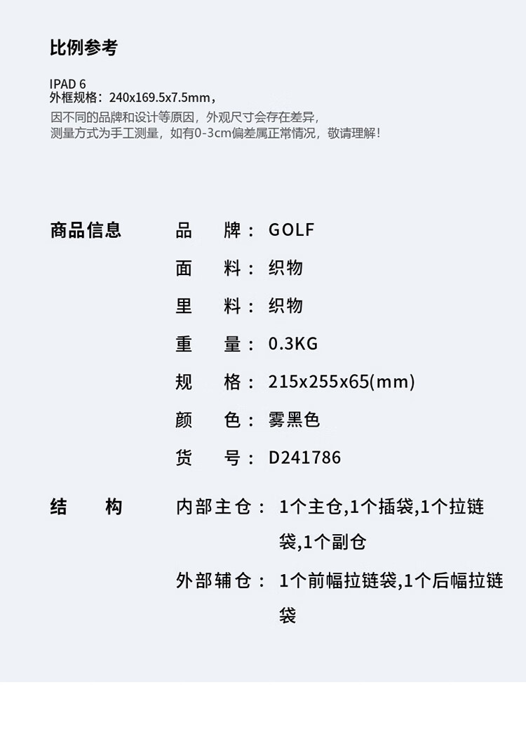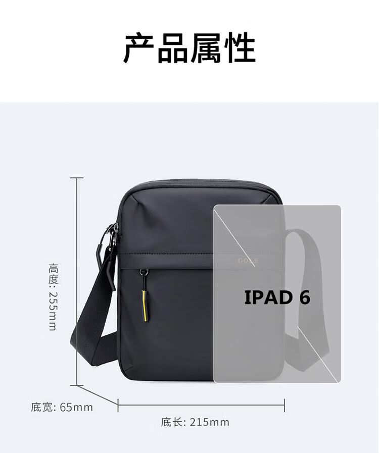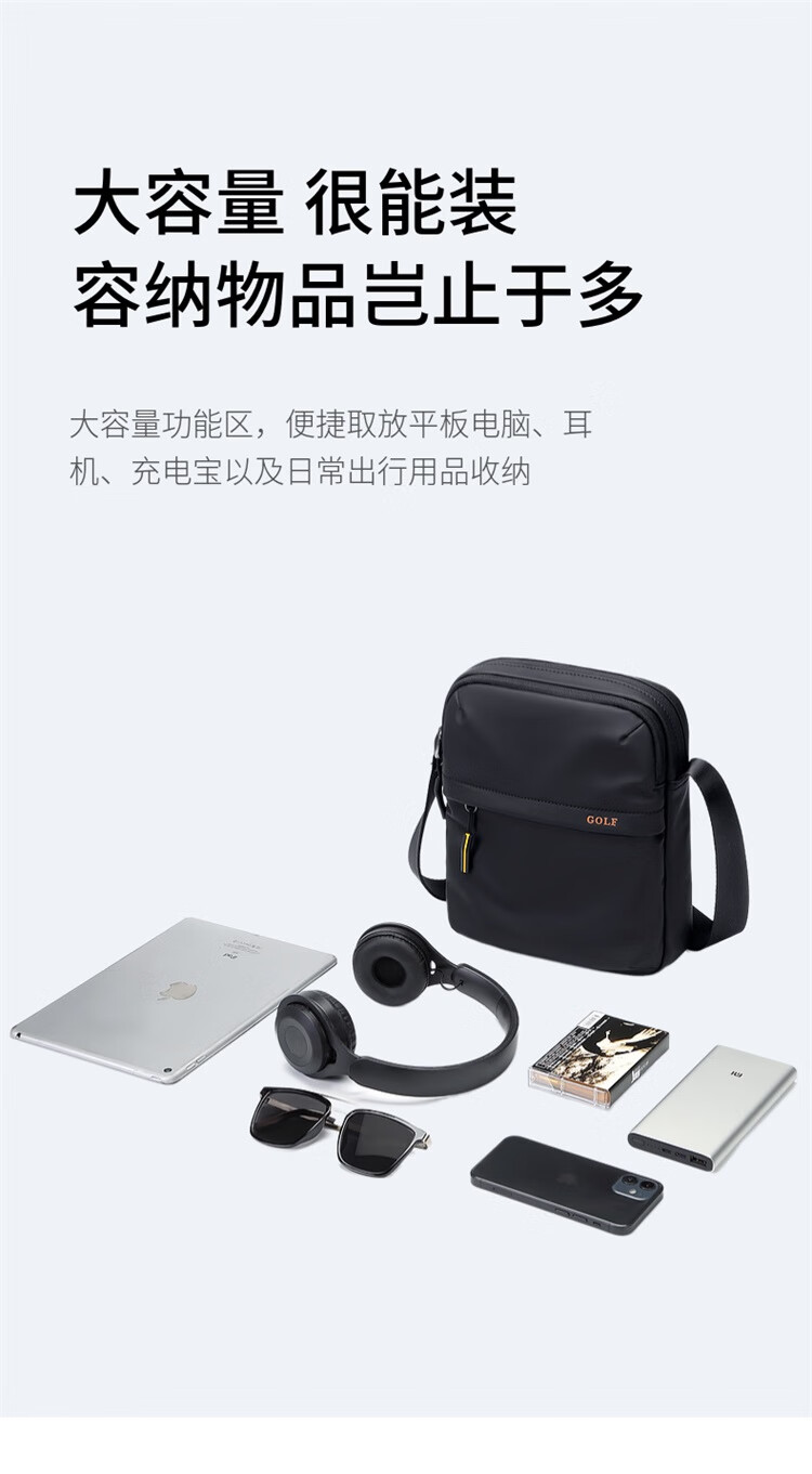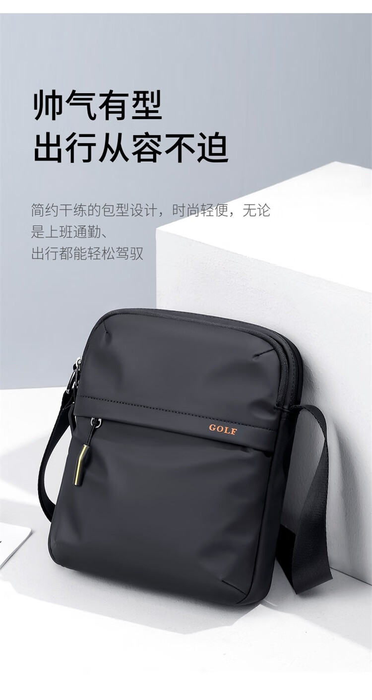 高尔夫(GOLF)斜挎包男士休闲单肩包男轻便百搭挎包男便携小包男包防泼水运动包 雾黑色