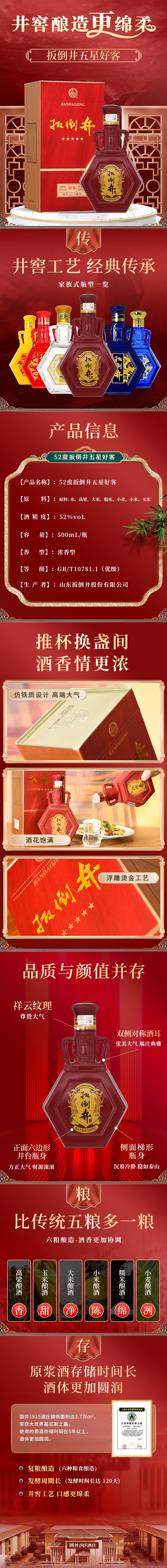 扳倒井白酒 52度五星好客 纯食酿造送礼自饮收藏白酒 山东特产名酒 52度 500mL 2瓶