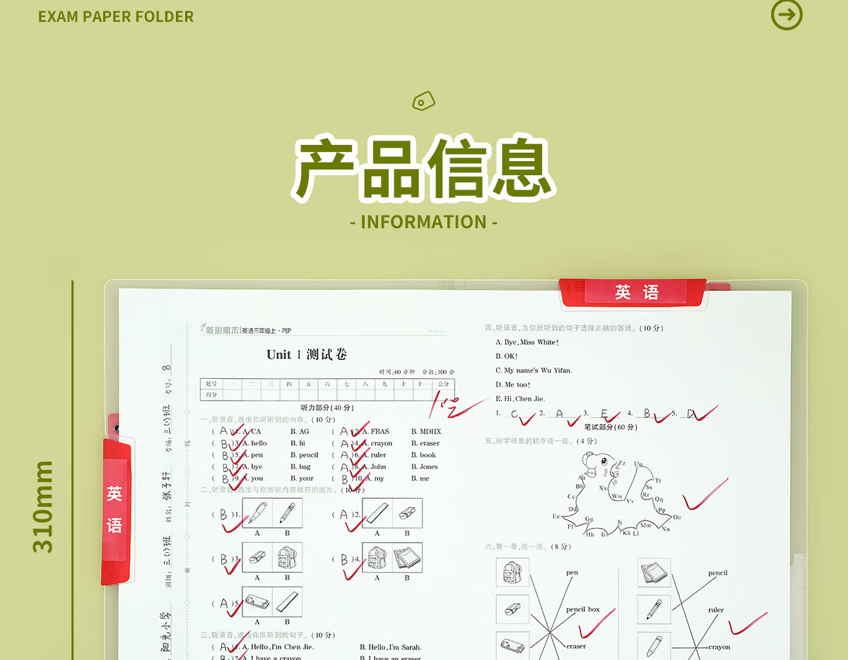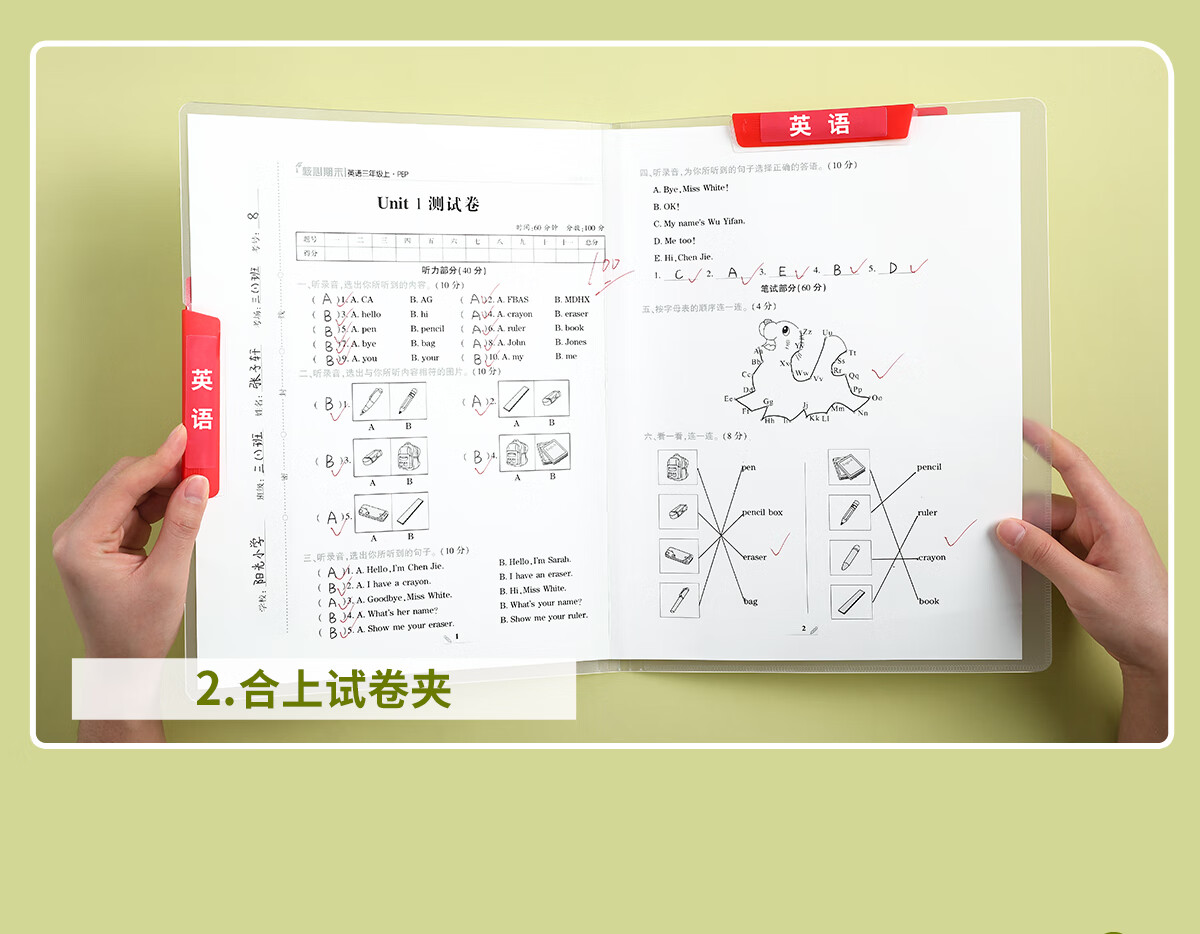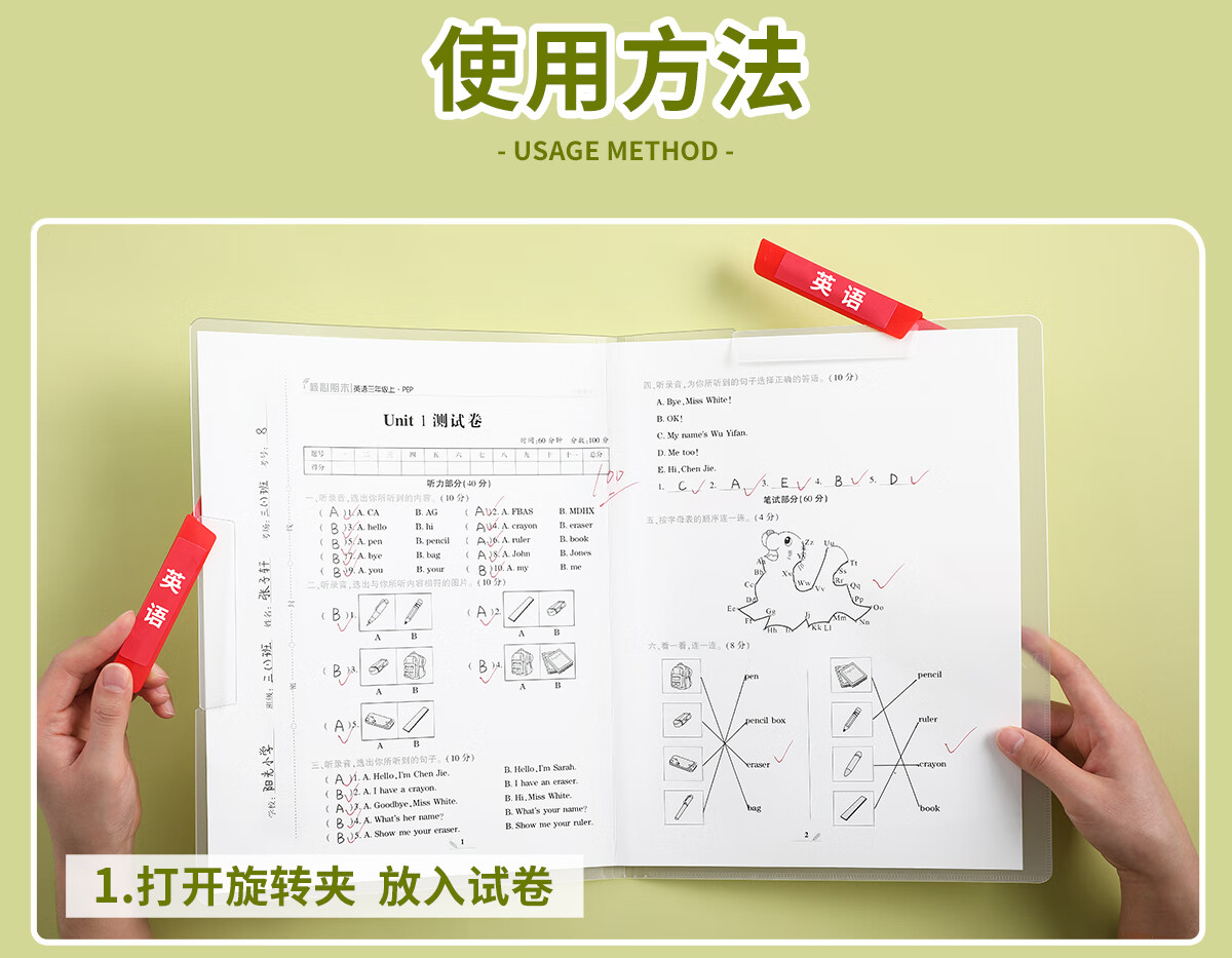 思赞A3双拉杆试卷夹整理夹小学生专用收纳夹旋转文件夹初中生放卷子神器大容量抽杆夹作业夹子a4资料夹 A3双拉杆夹特厚55C【5个装】送科目贴