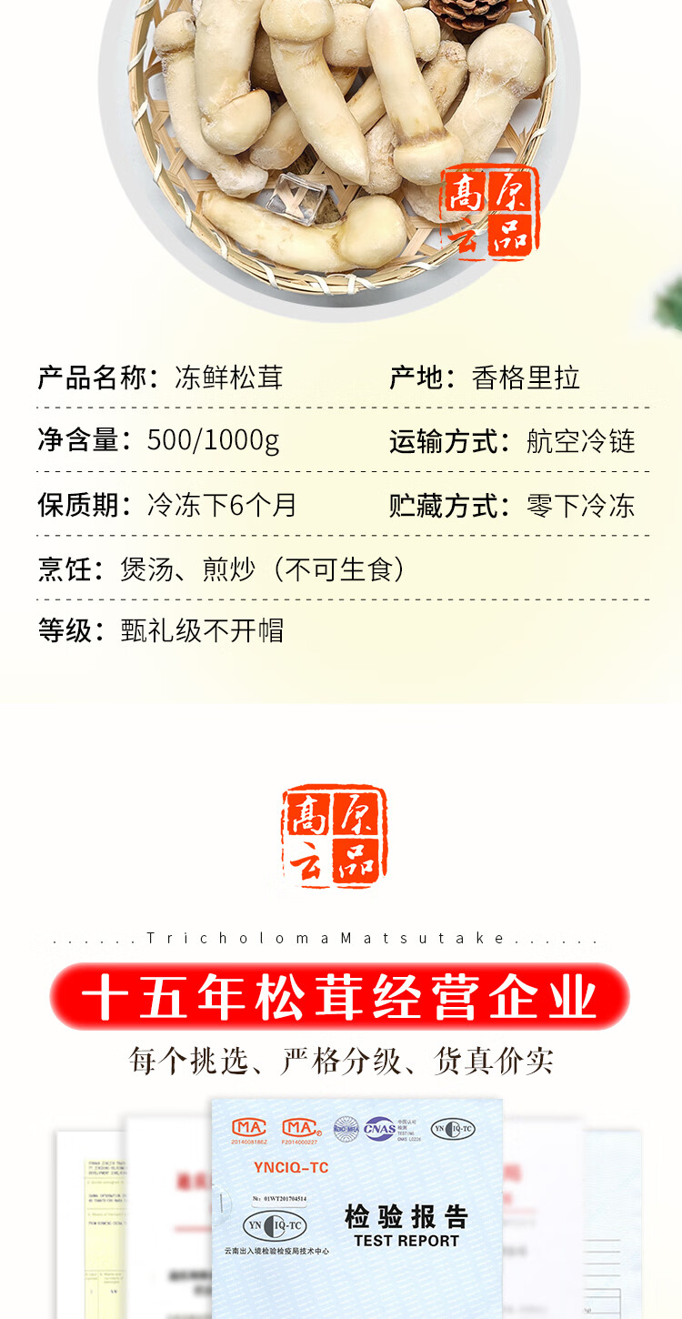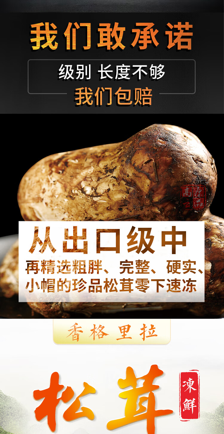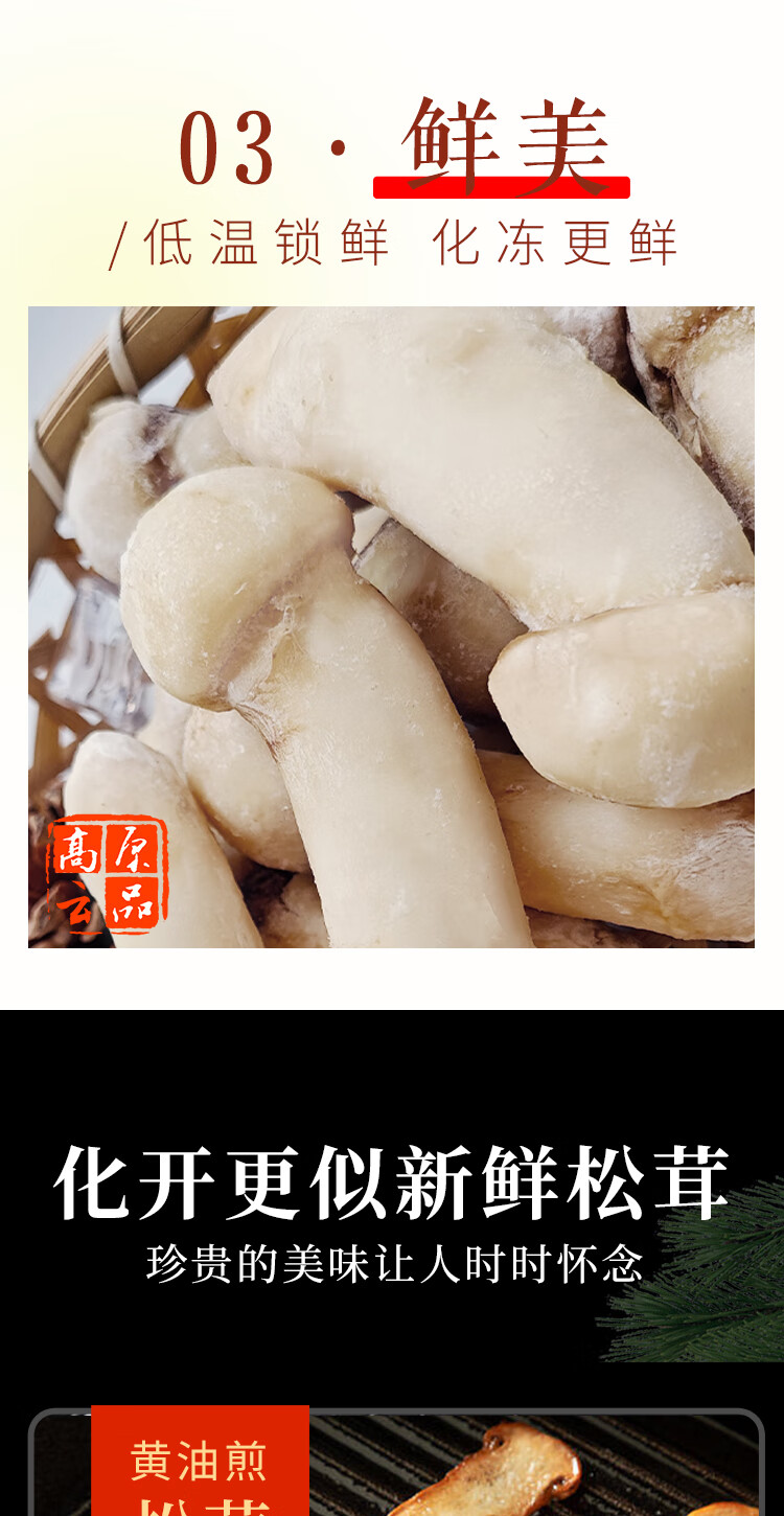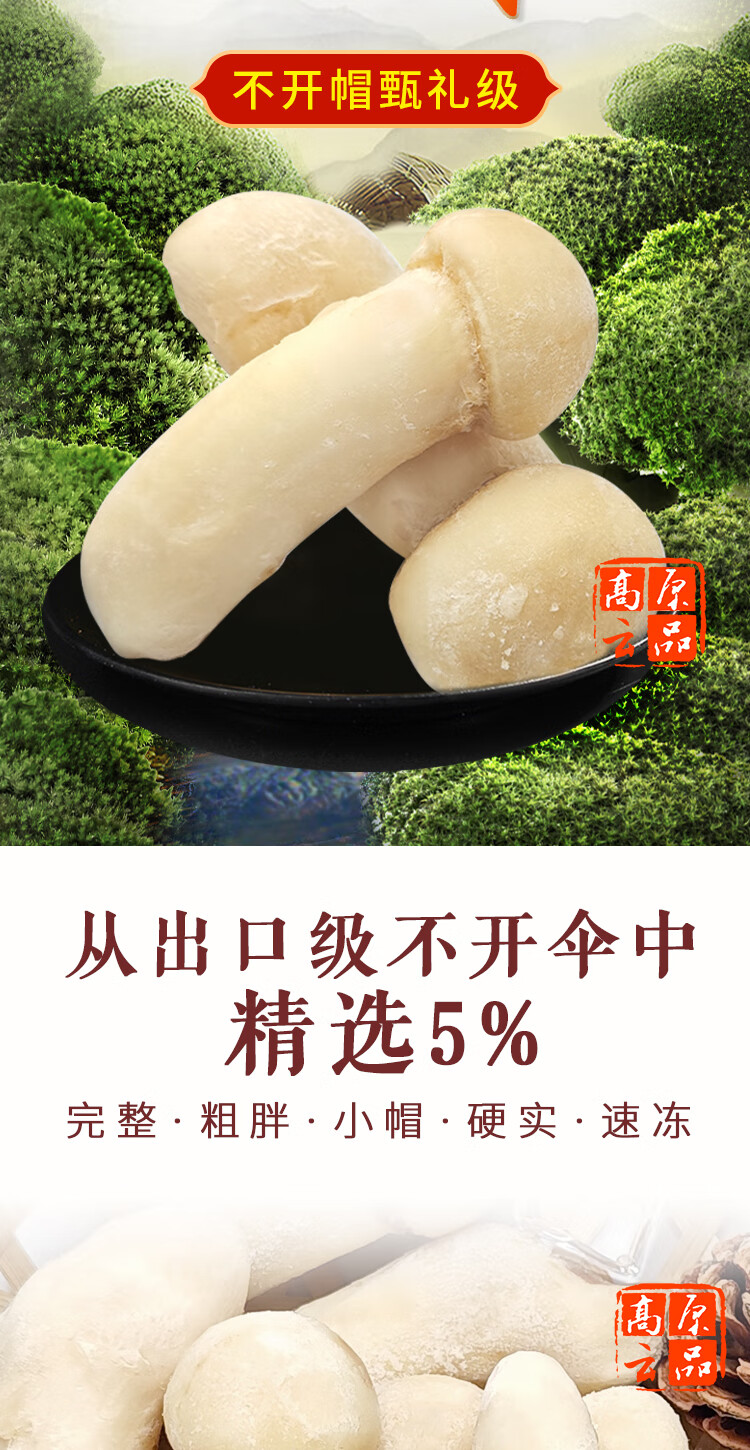 高原云品【冻鲜松茸】香格里拉出口级不开伞松茸新鲜速冻 航空冷链 10-12CM500克