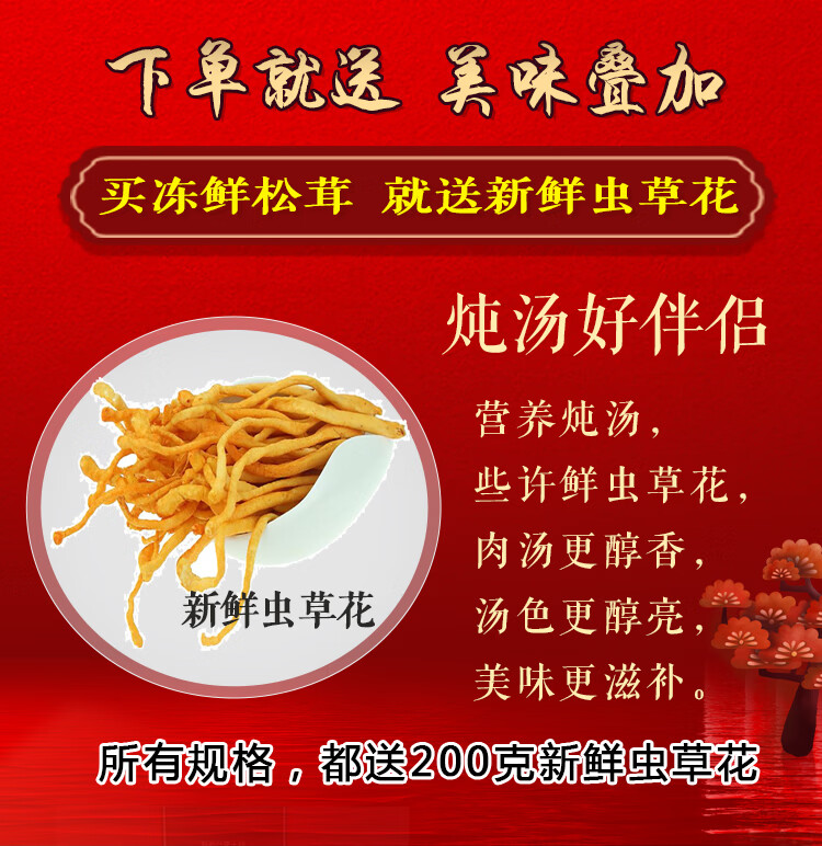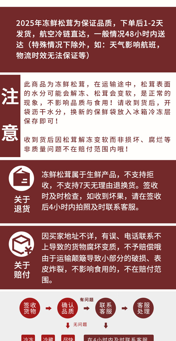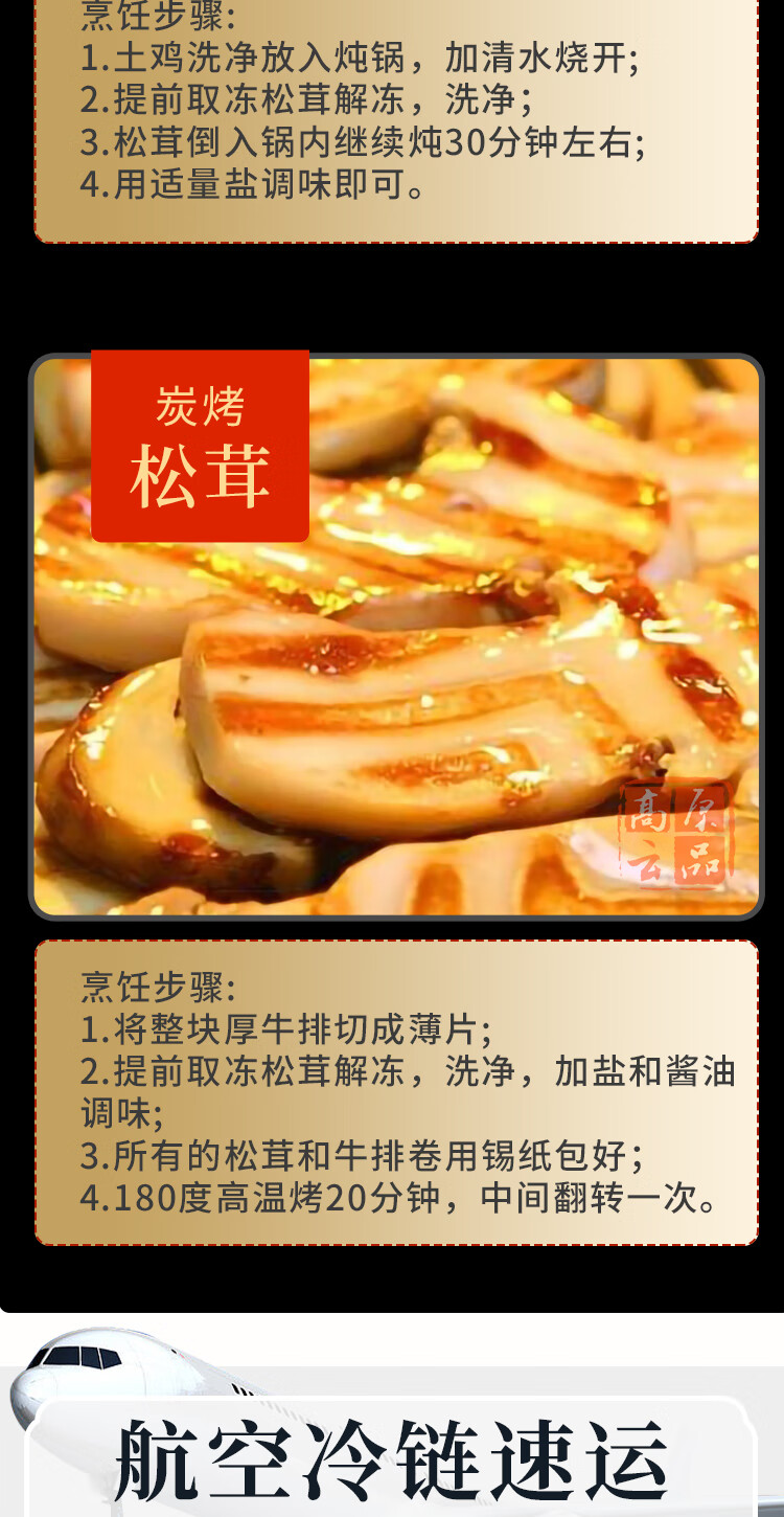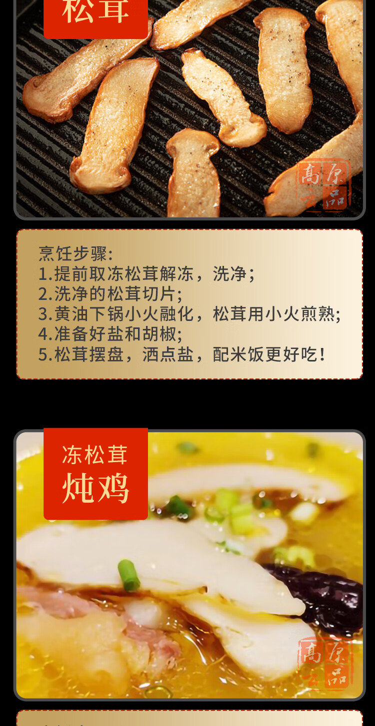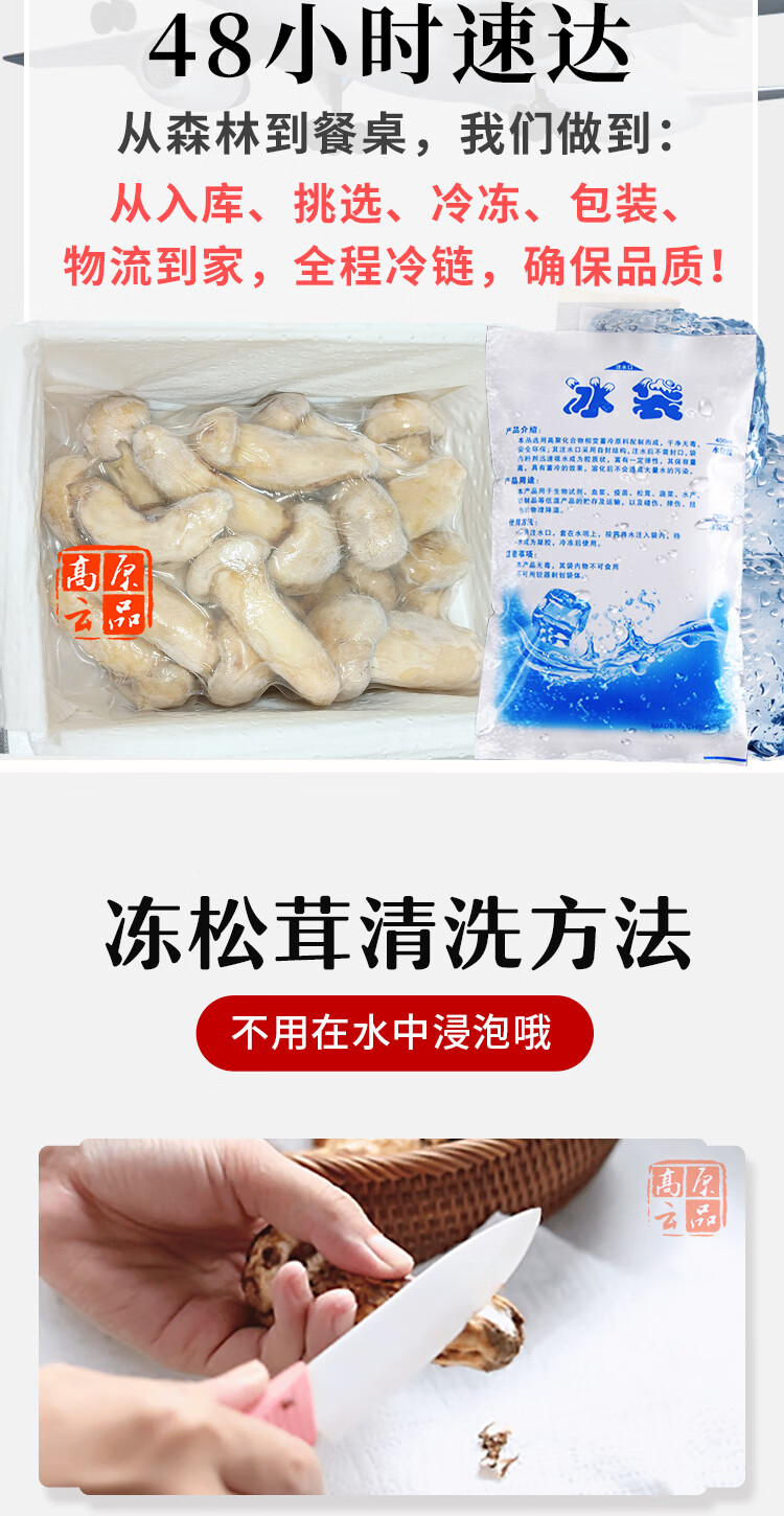 高原云品【冻鲜松茸】香格里拉出口级不开伞松茸新鲜速冻 航空冷链 10-12CM500克