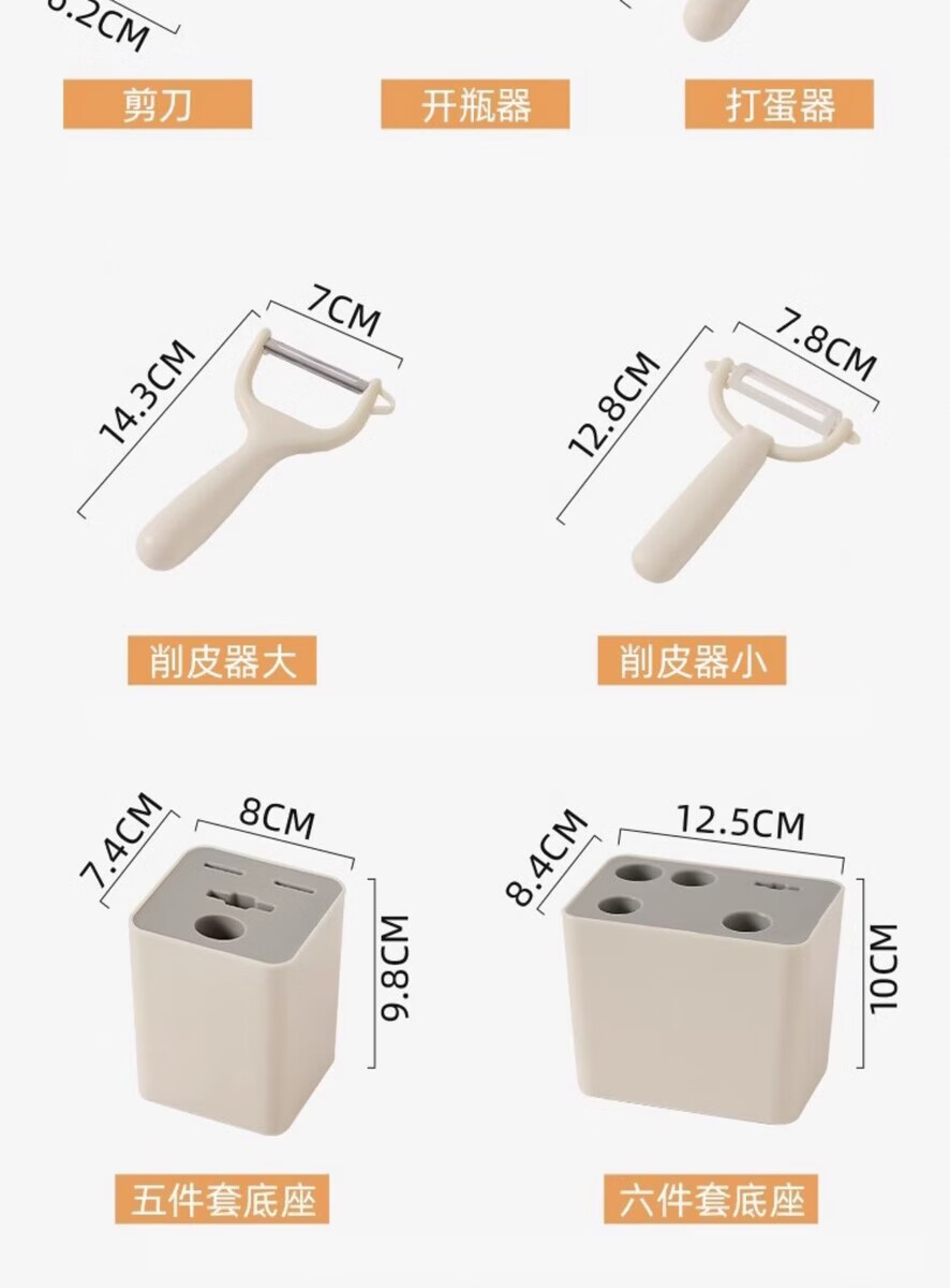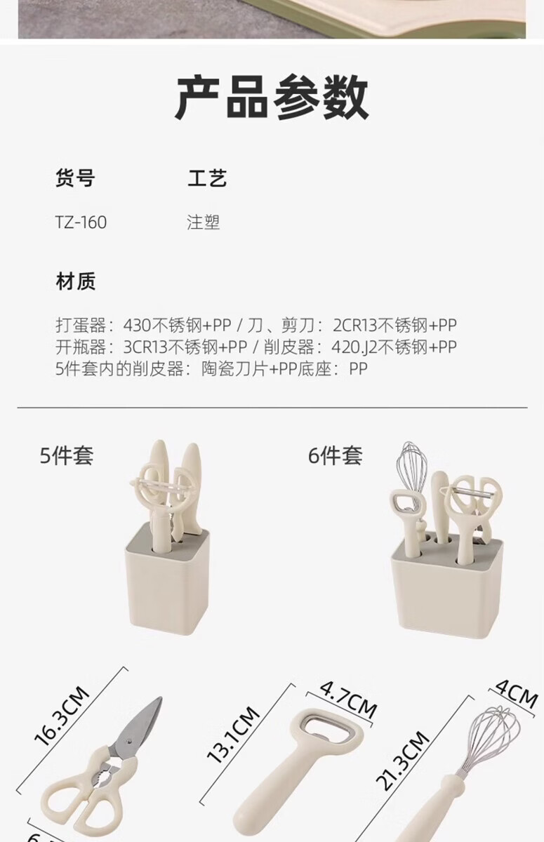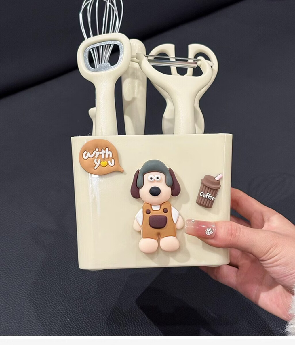 溥畔厨房小工具套装不锈钢水果刀削皮刀打蛋器剪刀开瓶器组合家用收纳 小狗厨房5件套[可沥水收纳盒] 1
