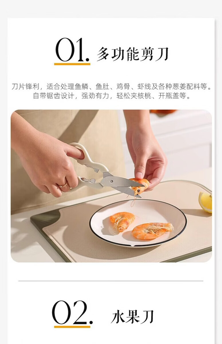 【甄选好物】不锈钢家用剪刀强力厨房多功能裁缝剪学生手工美工大 多功能剪刀【黄灰色】 大号1把装
