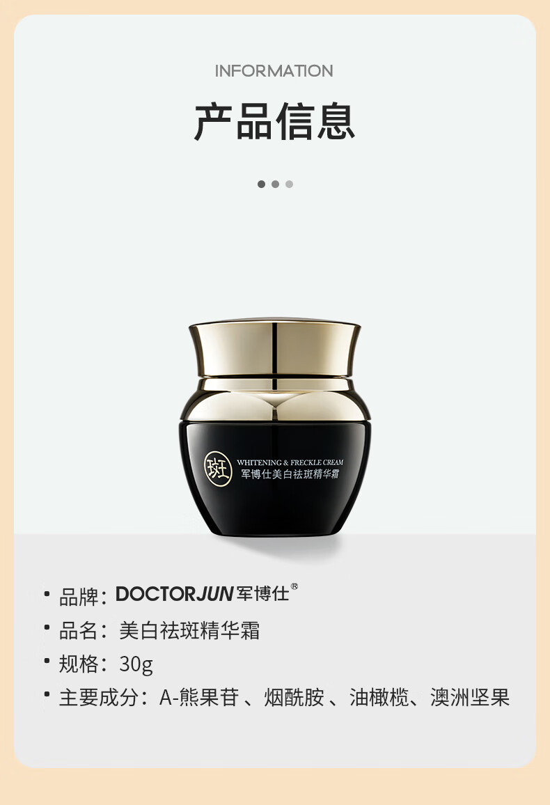 军博仕美白祛斑精华霜 淡化色斑雀斑 改善暗沉 提亮控油面霜护肤品男女 军博仕美白祛斑精华霜 30g