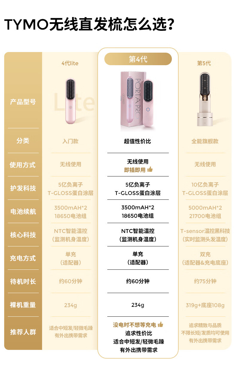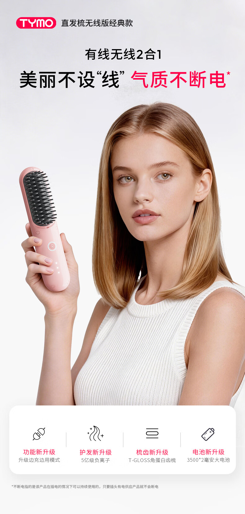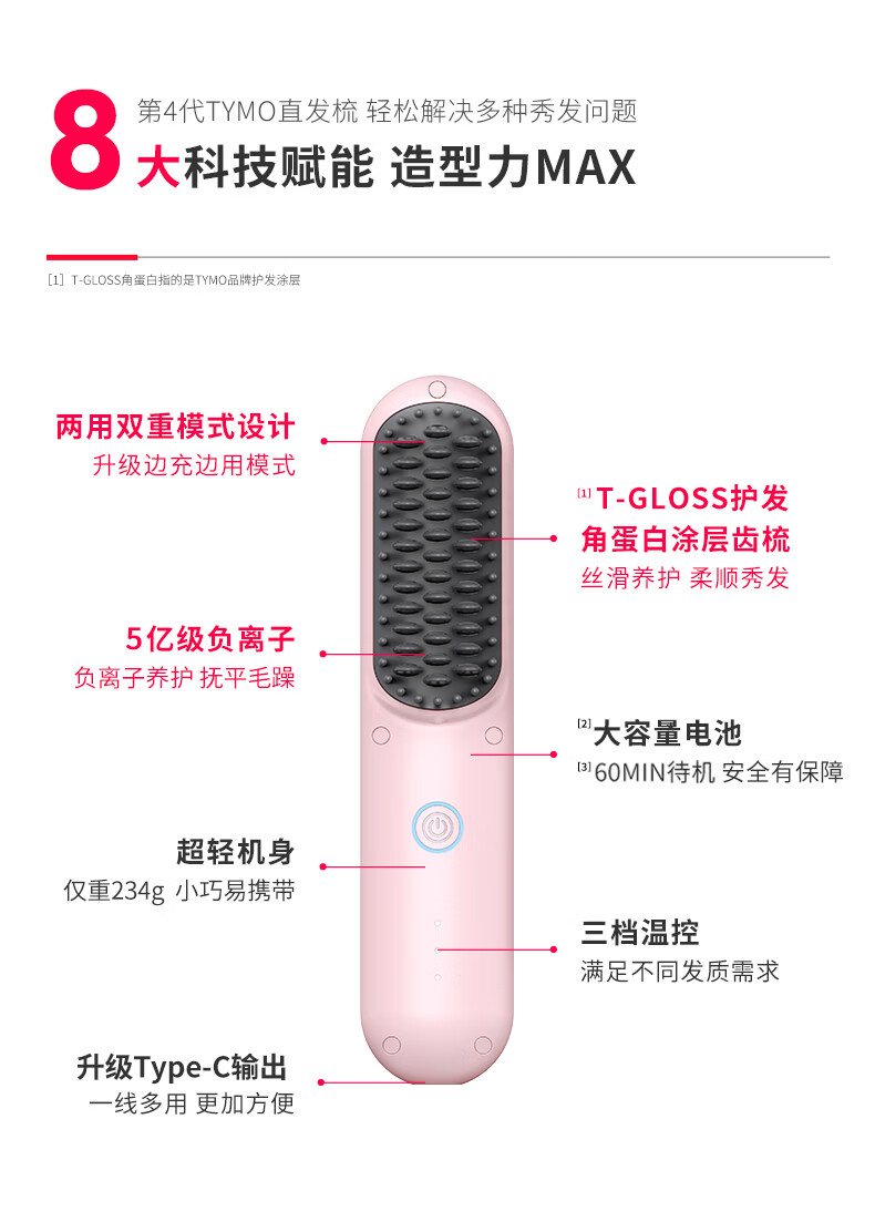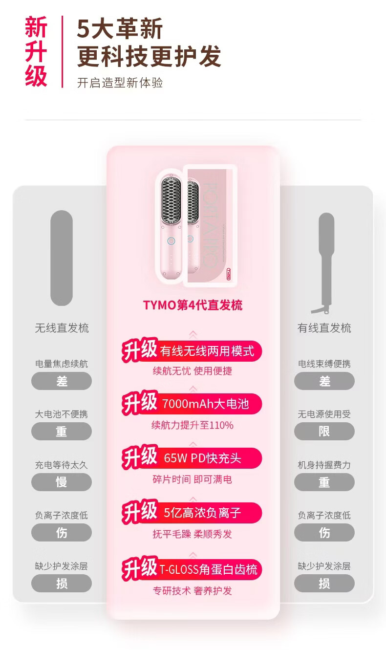 TYMO【明星同款】第4代无线直发梳有线无线2合1负离子直板夹卷发棒不伤发高颅顶抚平毛躁 送女生礼物