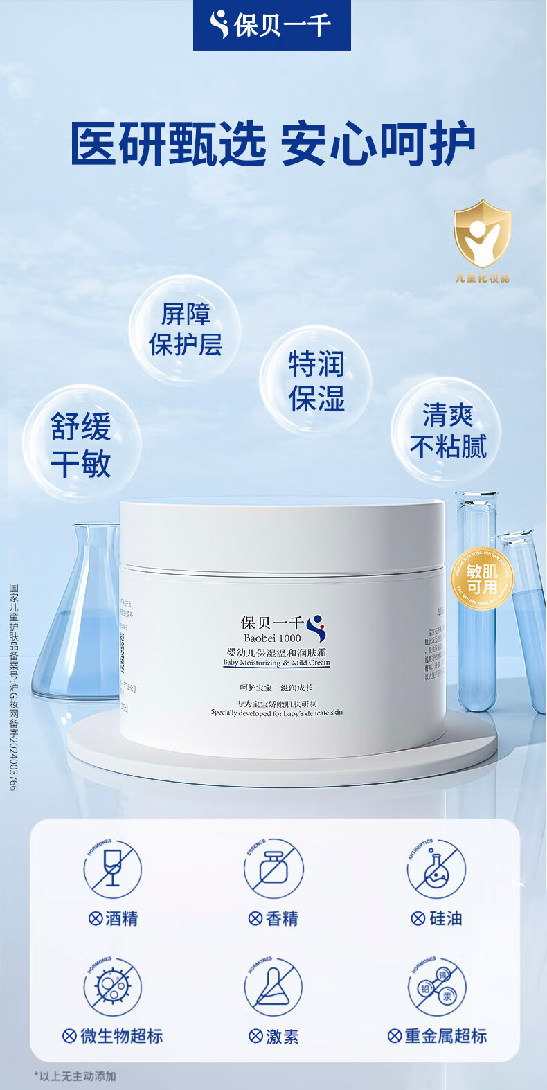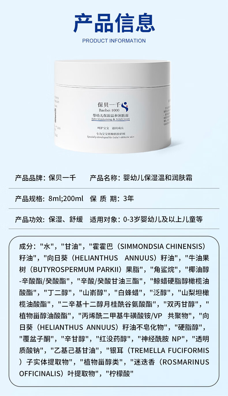 保贝一千婴幼儿宝宝面霜婴儿护肤品小孩擦脸润肤霜新生儿身体乳儿童护肤 200ml