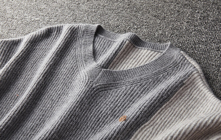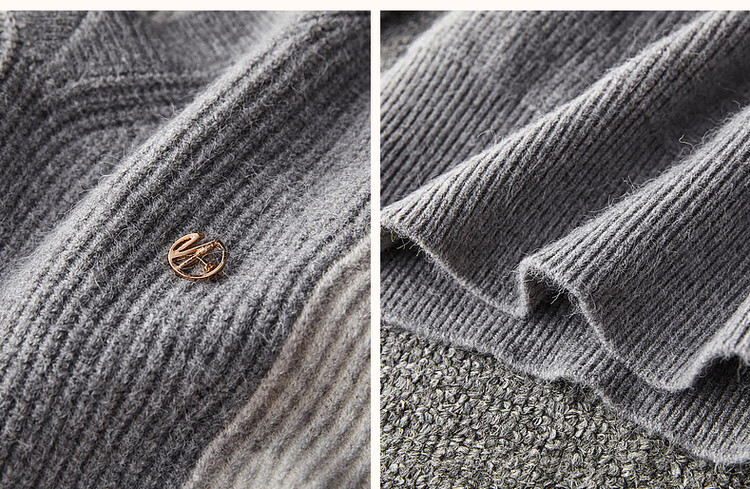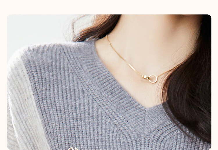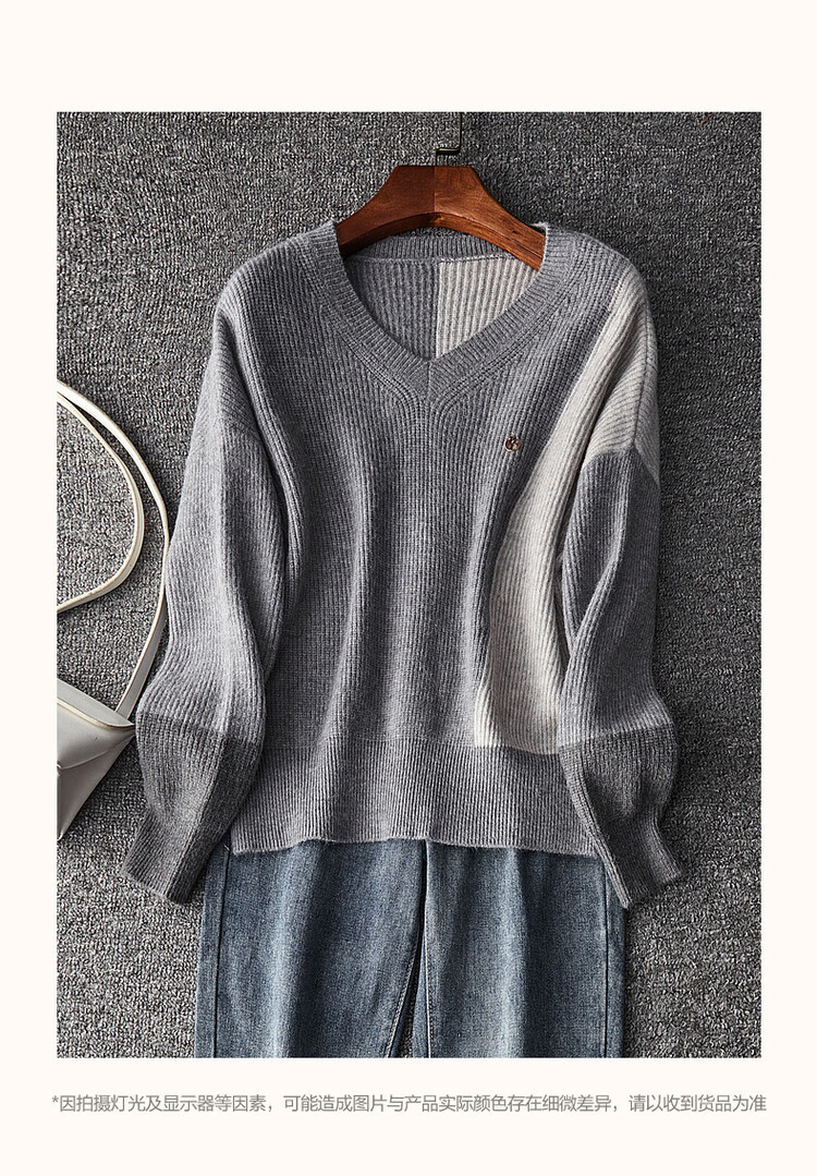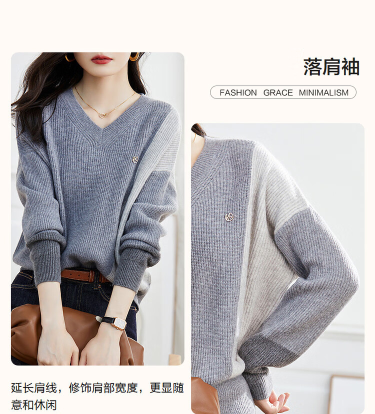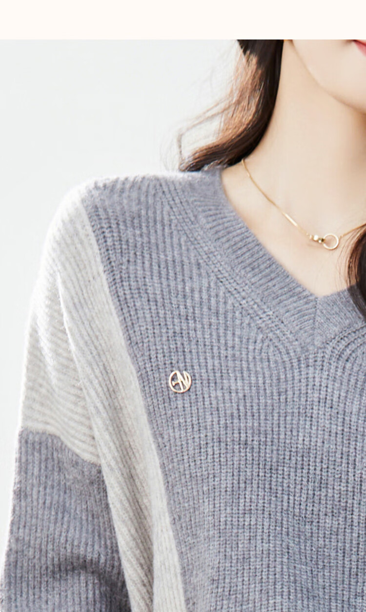 德玛纳【拼色线衫】秋冬季V领落肩长袖毛衣微弹针织衫女上衣