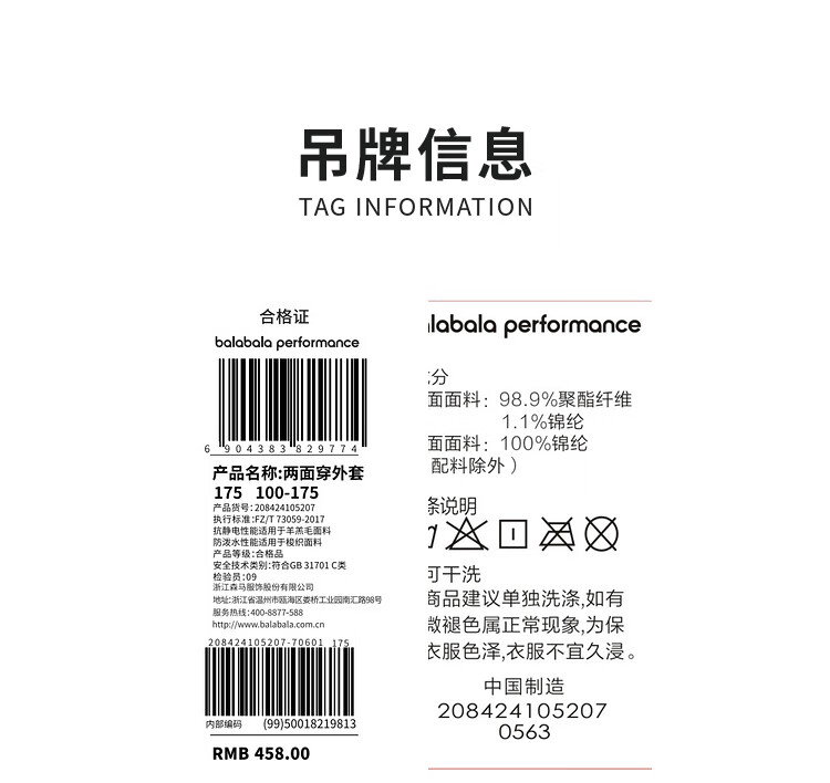 巴拉巴拉童装儿童外套男女童运动冬装两面穿衣服防寒户外印花208424105207