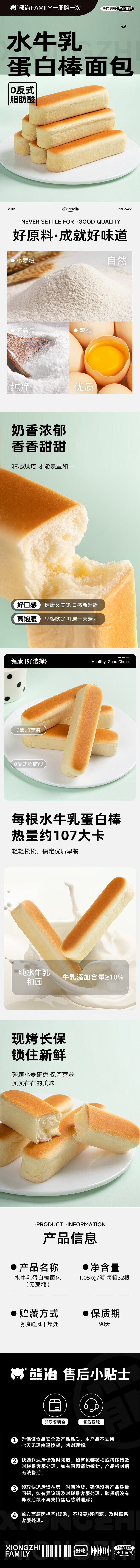 熊治水牛乳蛋白棒夹心水牛乳蛋白棒面包营养早餐 原味水牛乳蛋白棒*10根