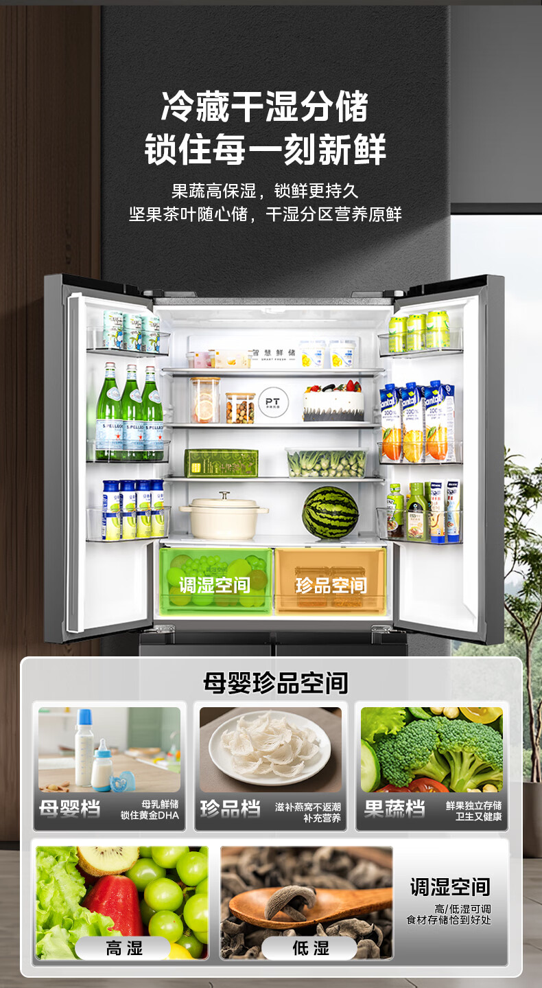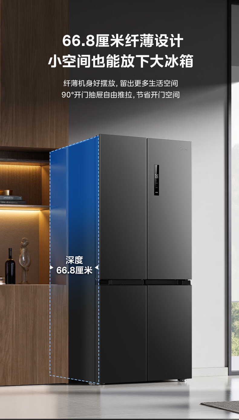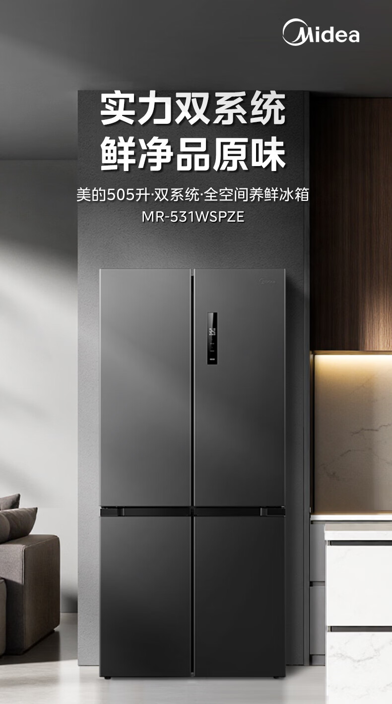 美的(Midea)505L十字门冰箱双系统双循环保鲜大容量三档变温一级能效风冷无霜以旧换新MR-531WSPZE国家补贴