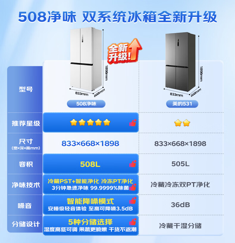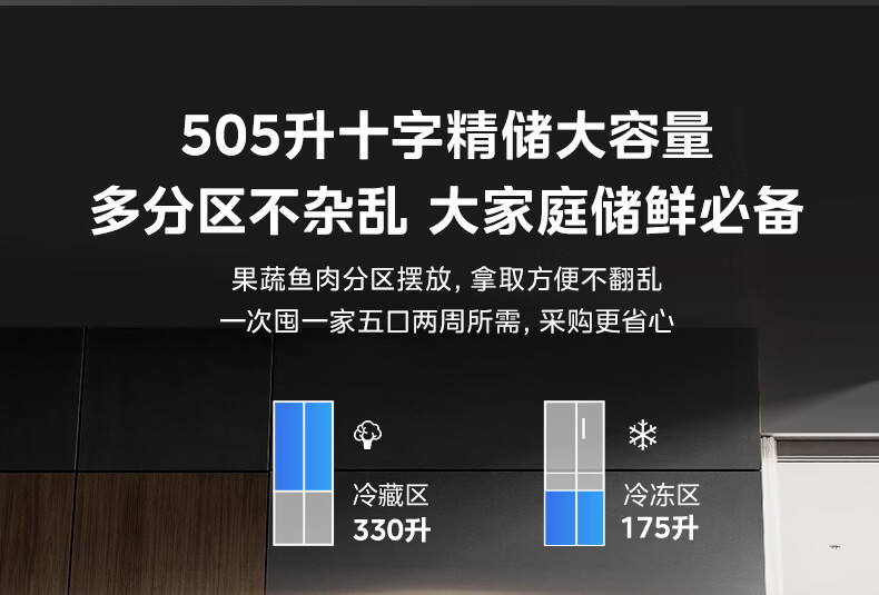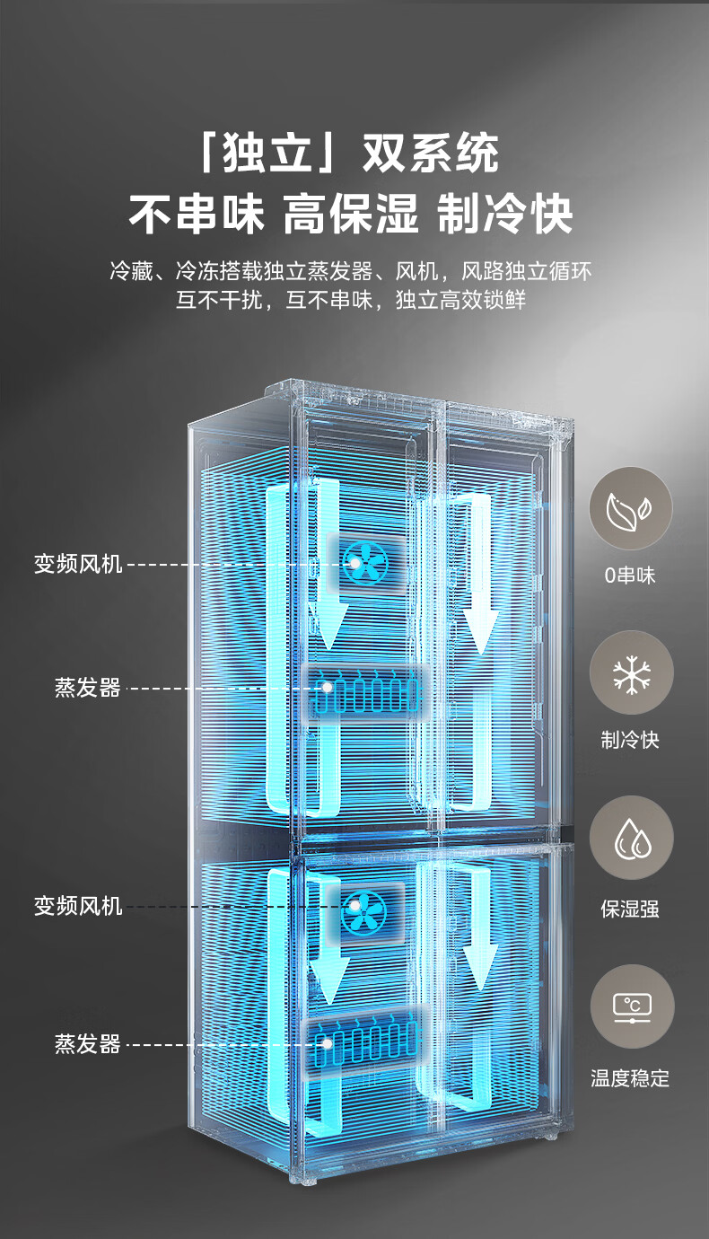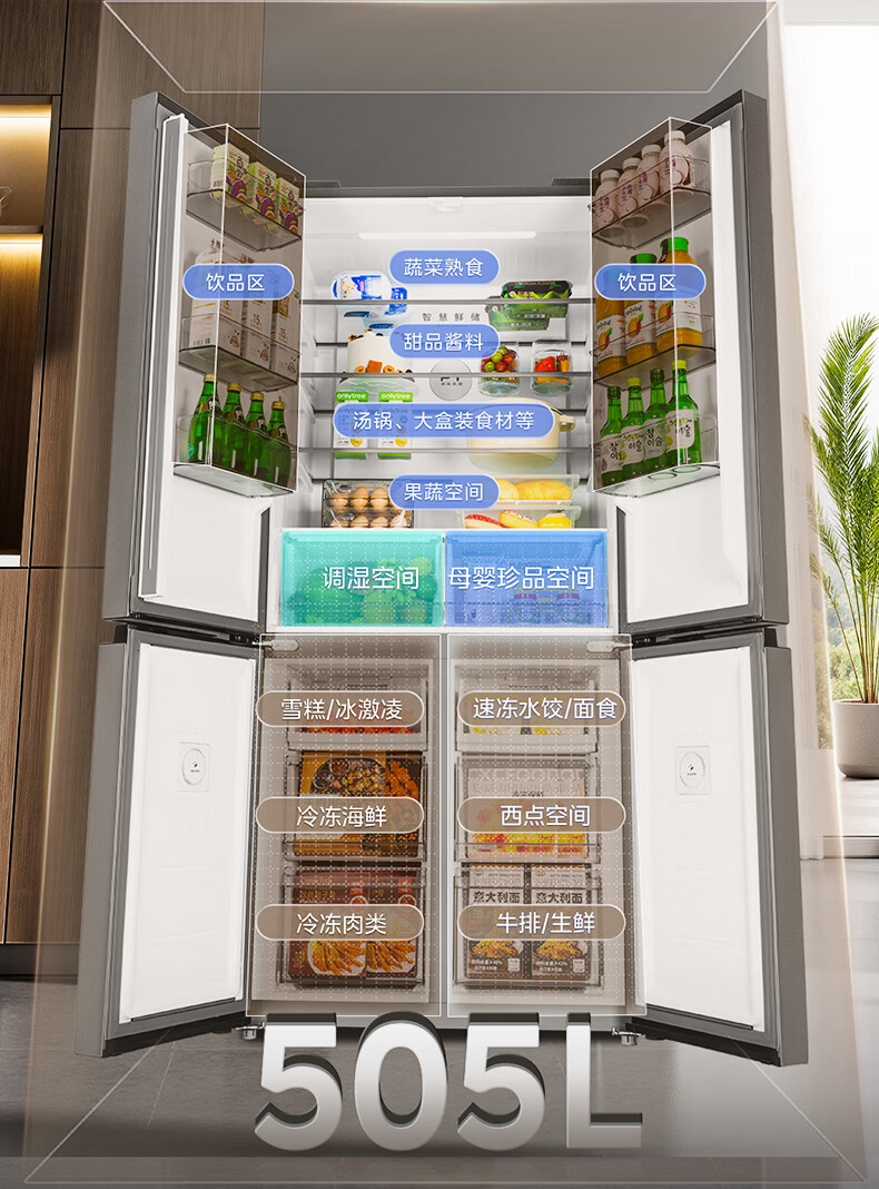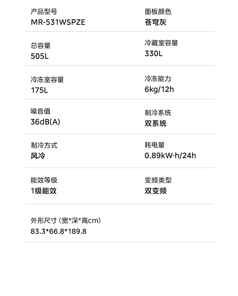 美的(Midea)505L十字门冰箱双系统双循环保鲜大容量三档变温一级能效风冷无霜以旧换新MR-531WSPZE国家补贴