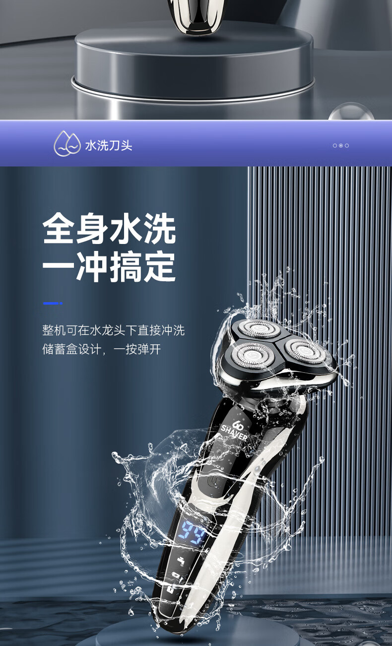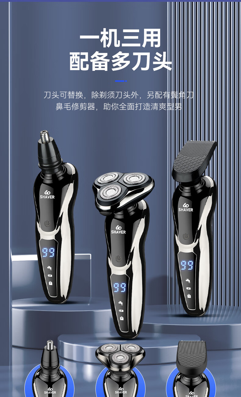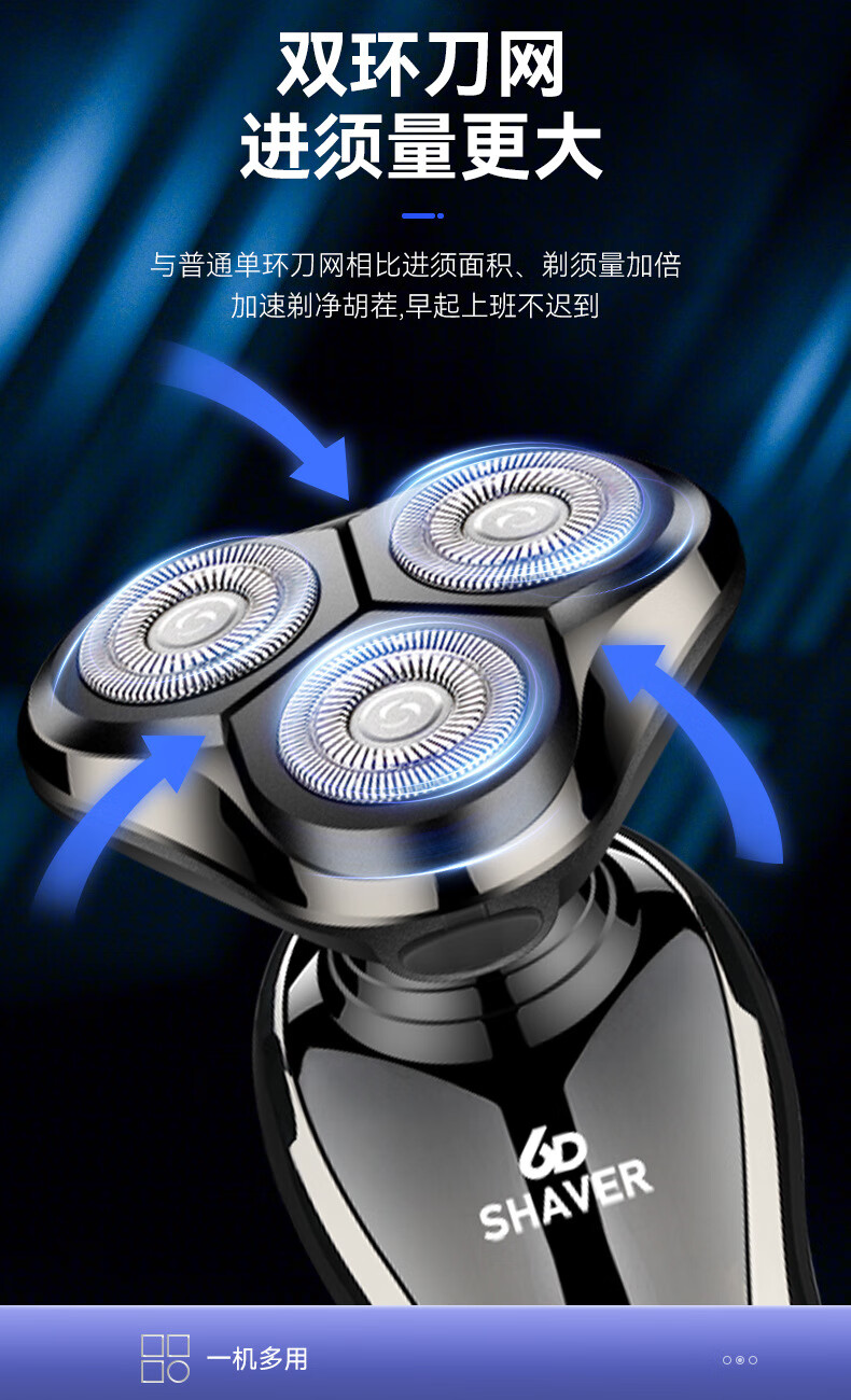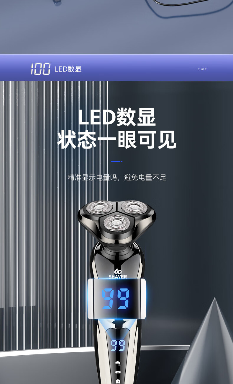 RABACIO德国品牌电动剃须刀男士刮胡刀USB充电式三刀头全身水洗胡须刀情人节礼物送男友父亲爸爸 酷炫黑【智能数显】 剃须刀热卖第一 生日礼物送男生新年礼物