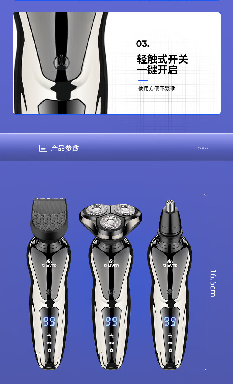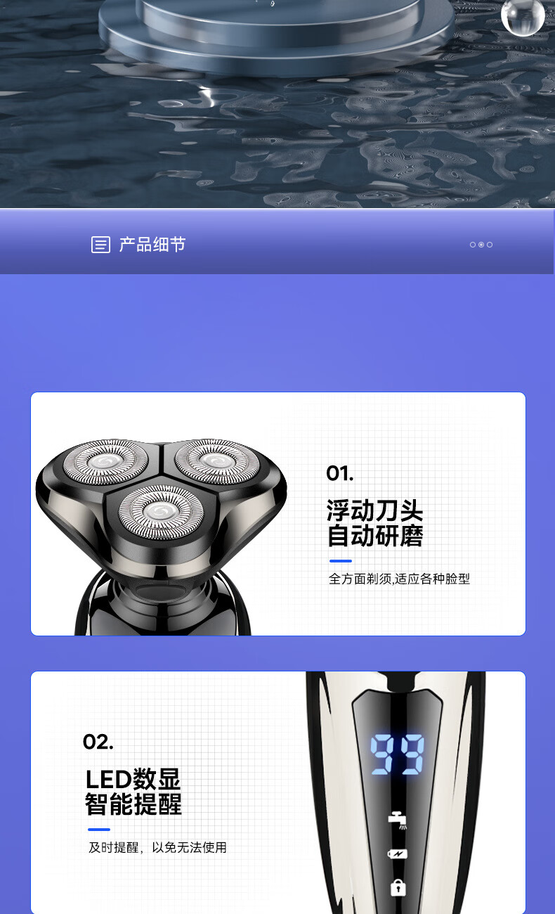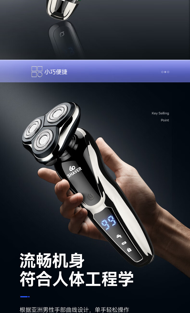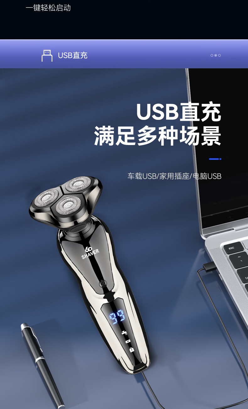 RABACIO德国品牌电动剃须刀男士刮胡刀USB充电式三刀头全身水洗胡须刀情人节礼物送男友父亲爸爸 酷炫黑【智能数显】 剃须刀热卖第一 生日礼物送男生新年礼物