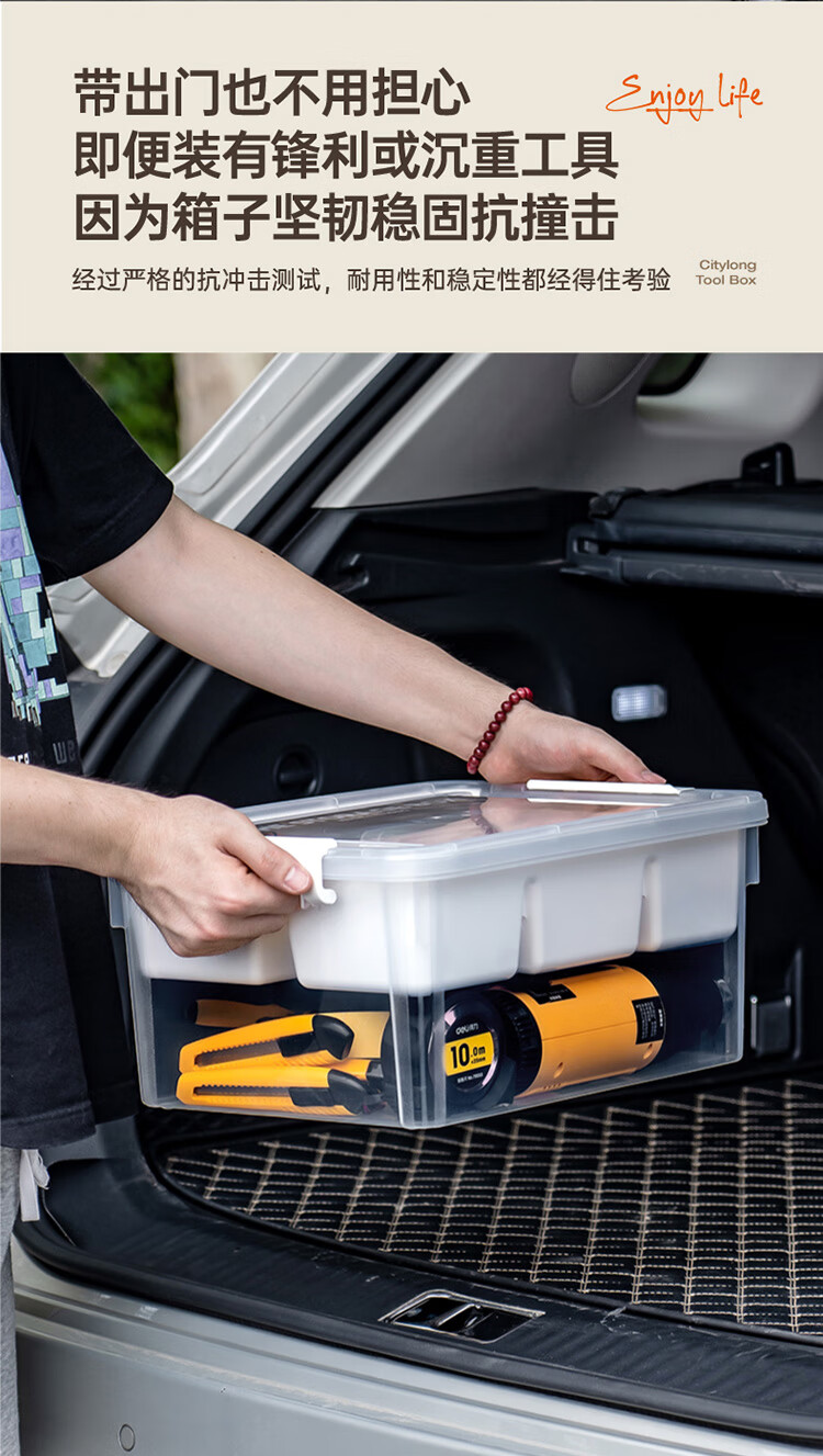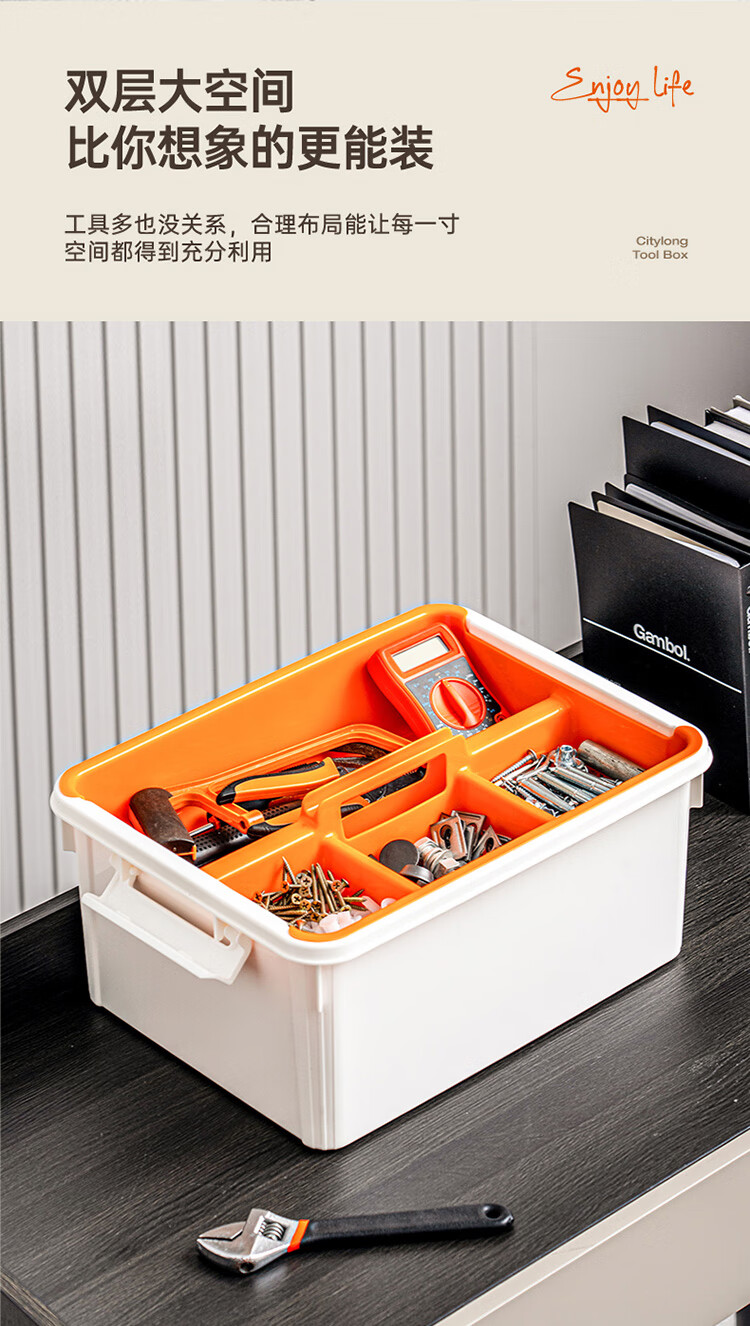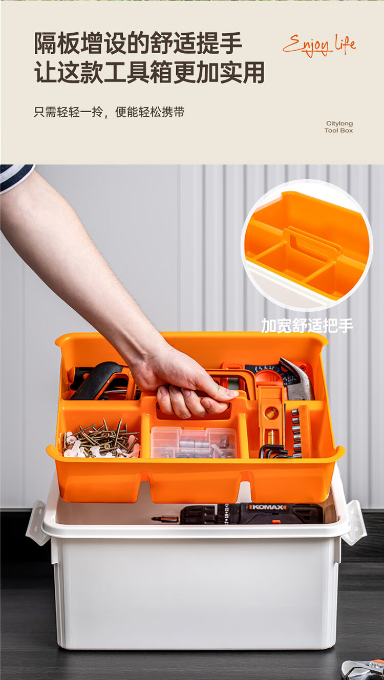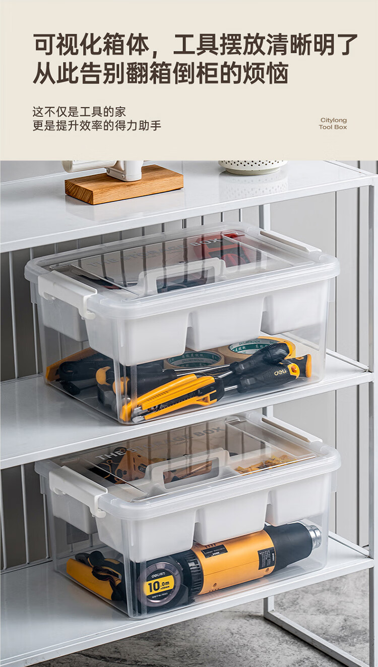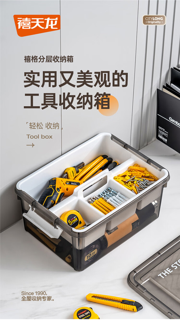 禧天龙(Citylong)工具箱大号收纳箱空箱五金双层大容量汽修家用车载箱 烟熏灰 瓷白隔板 装 1个