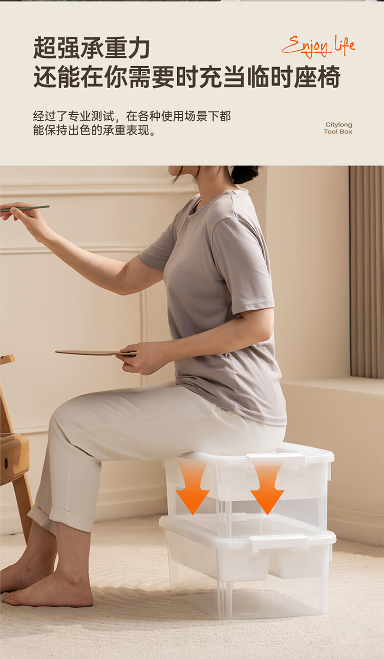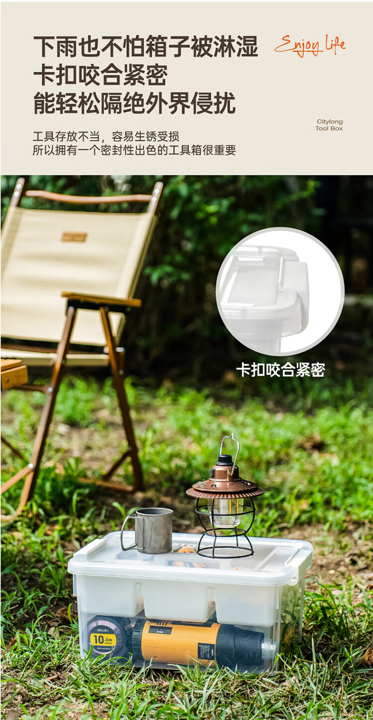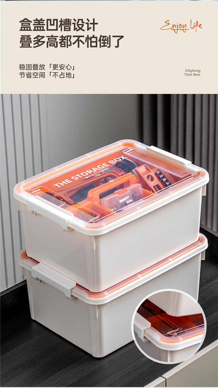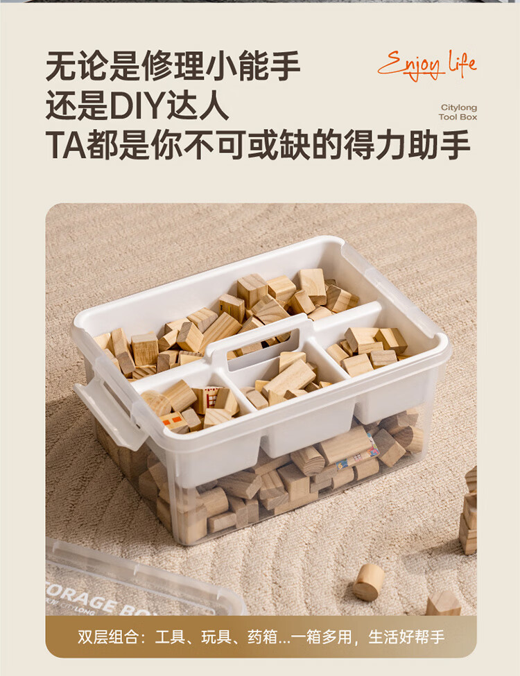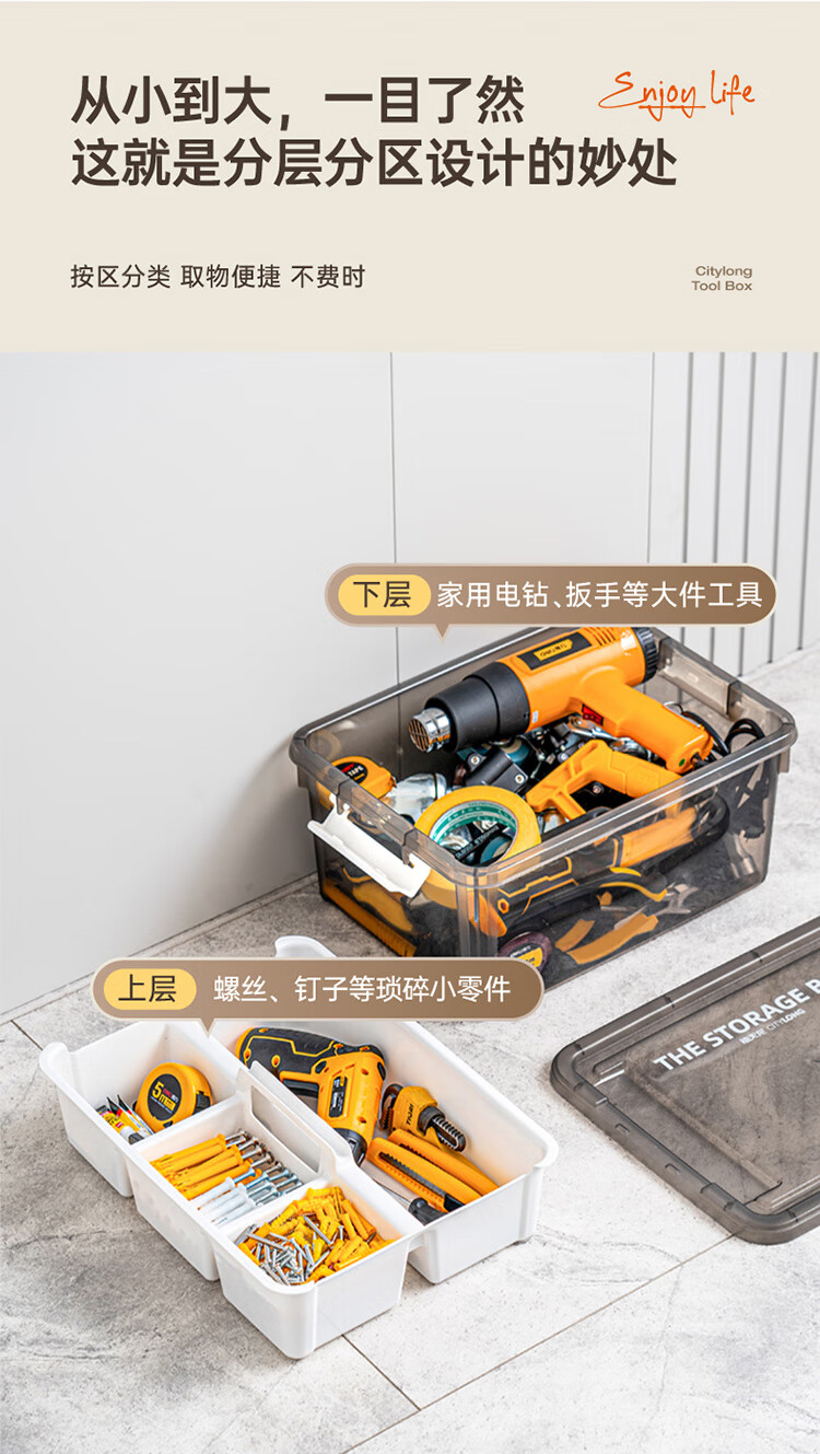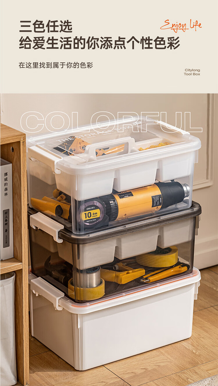 禧天龙(Citylong)工具箱大号收纳箱空箱五金双层大容量汽修家用车载箱 烟熏灰 瓷白隔板 装 1个