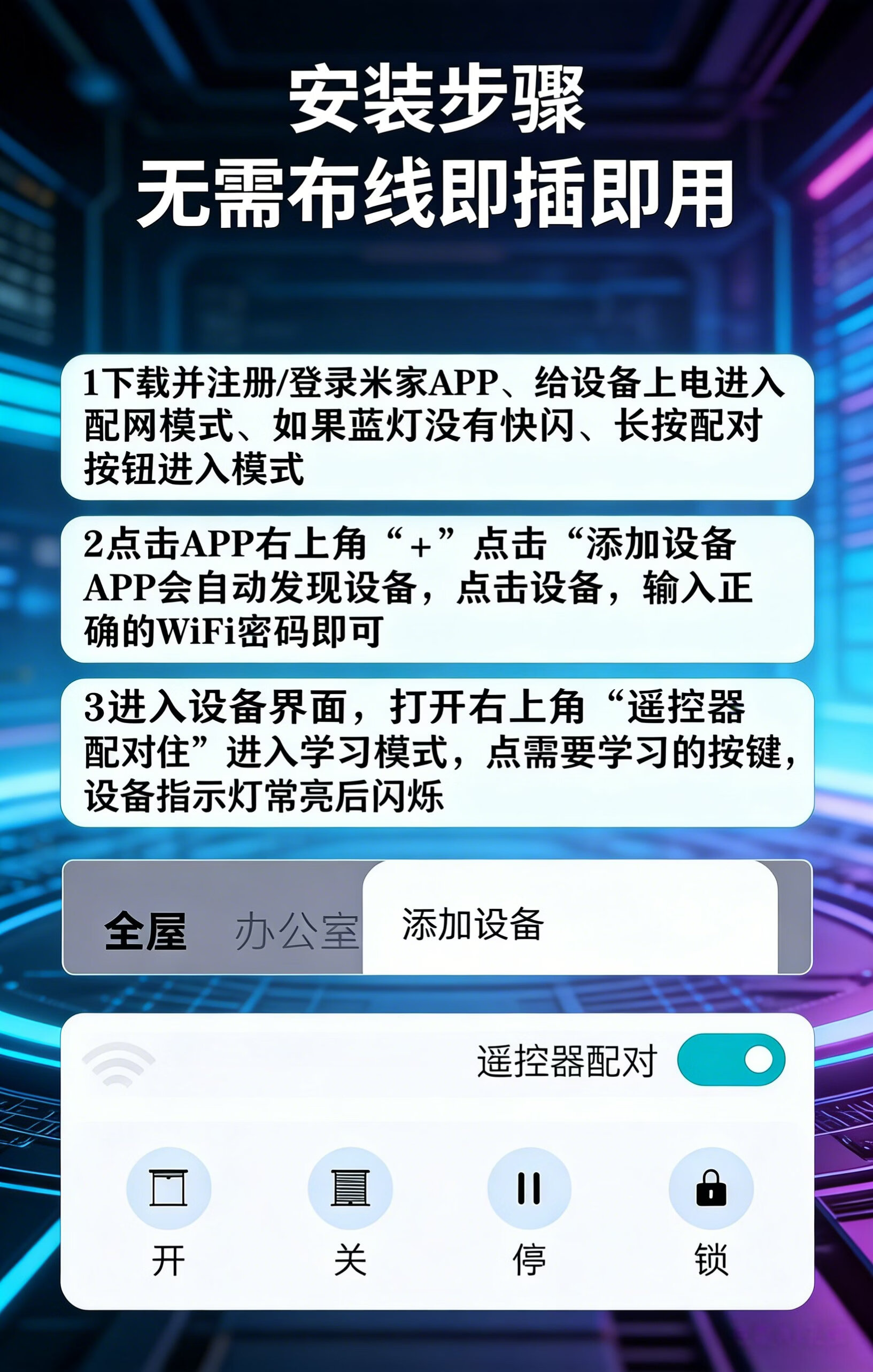 麒石已接入米家APP卷帘门手机远程开门控制器卷闸门WiFi遥控器电动门 米家433普通版