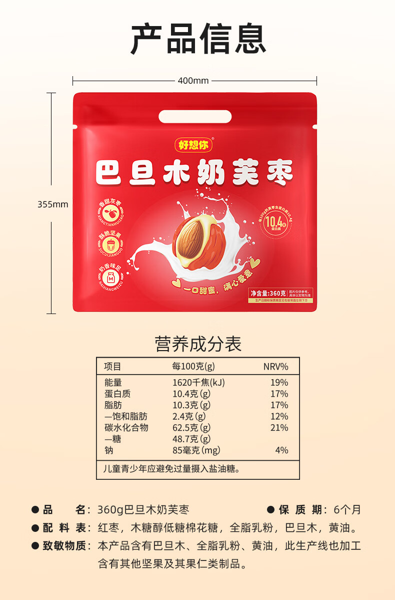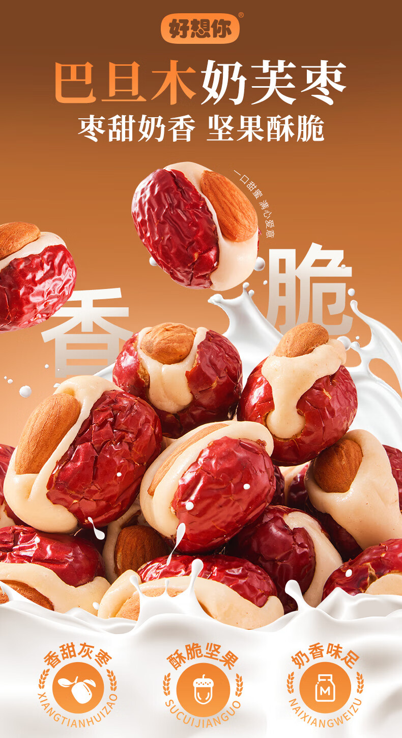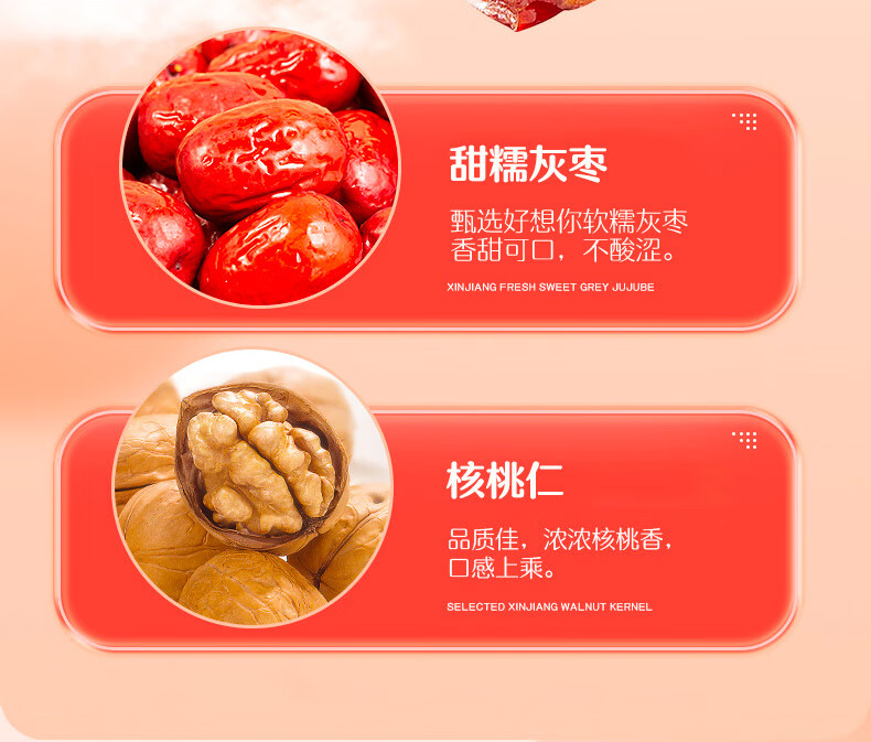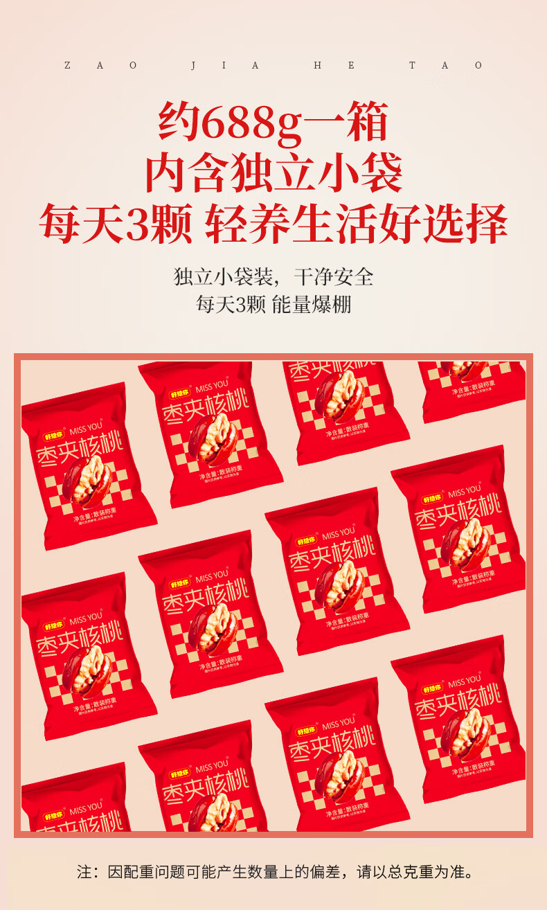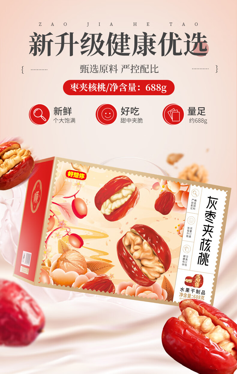 好想你灰枣夹核桃去核巴旦木奶芙枣血糯米核桃糕枣片dd 【约120小袋】688g灰枣夹核桃