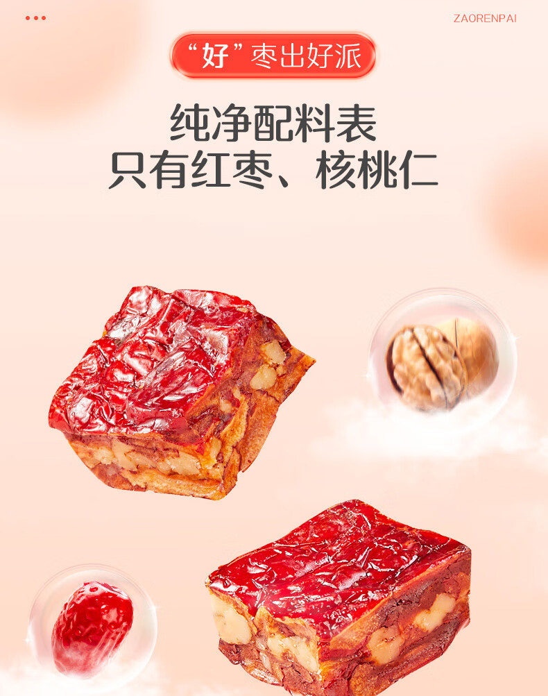 枣粮先生枣仁派零食香糯新疆红枣夹核桃夹心即食独立包装枣糕零食年货礼品 枣仁派205g*3/箱