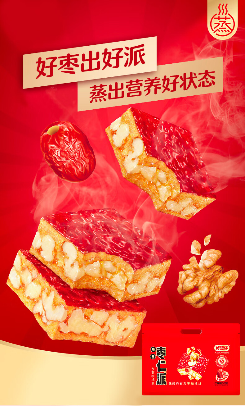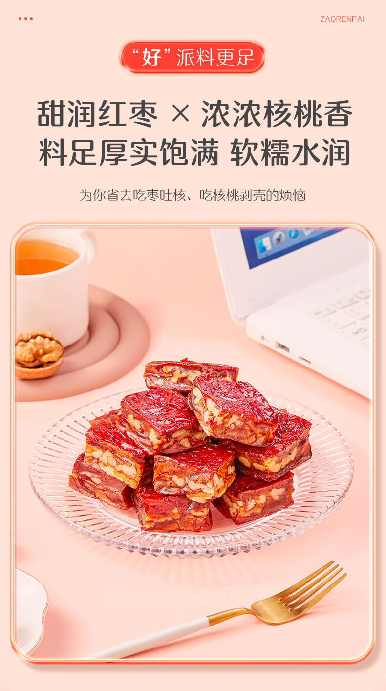 枣粮先生枣仁派零食香糯新疆红枣夹核桃夹心即食独立包装枣糕零食年货礼品 枣仁派205g*4/箱