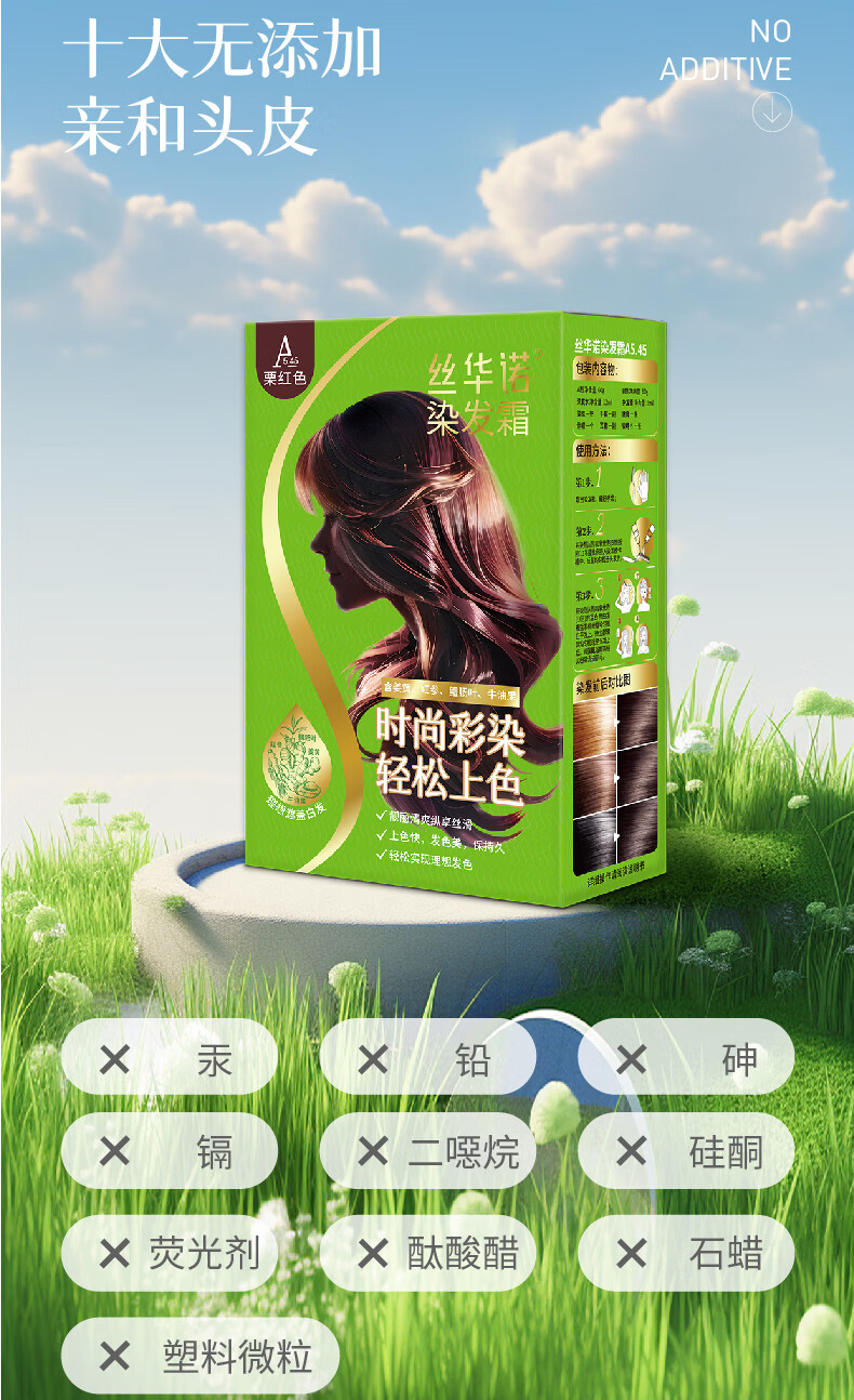 丝华诺染发膏植物养护染发剂男女自己在家染发霜遮盖白头发敏感过敏可用 【长发2盒装】K4.4栗棕色
