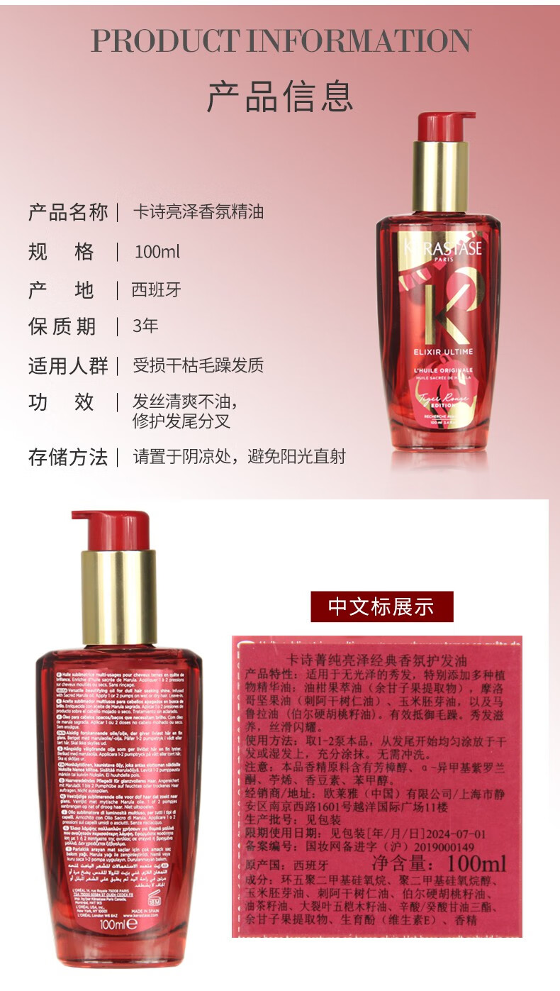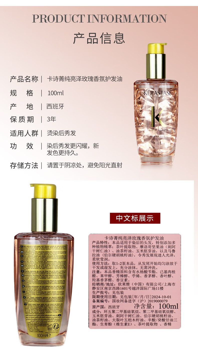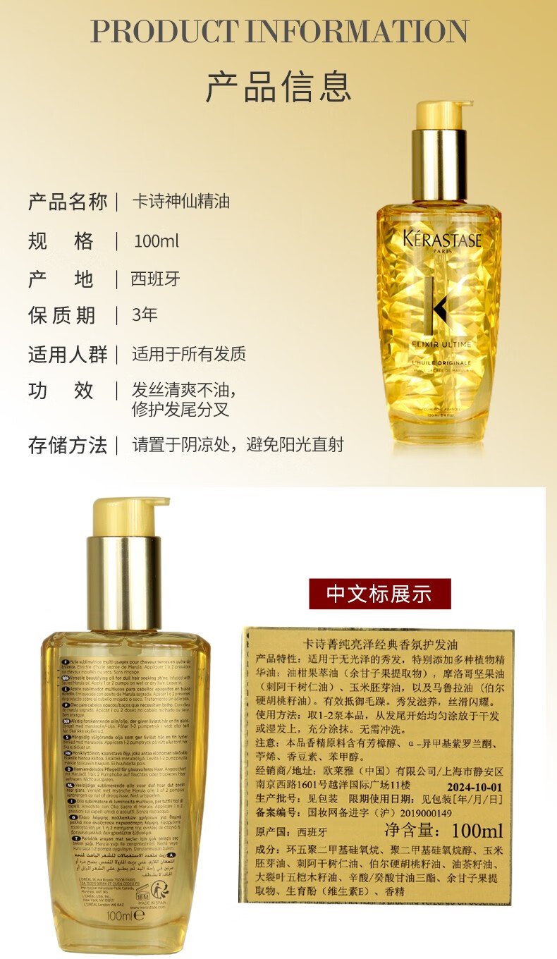 卡诗;KARSI箐纯亮泽经典香氛护发精油顺滑防毛躁柔顺自然不油腻 经典香氛护发精油小金瓶50ml