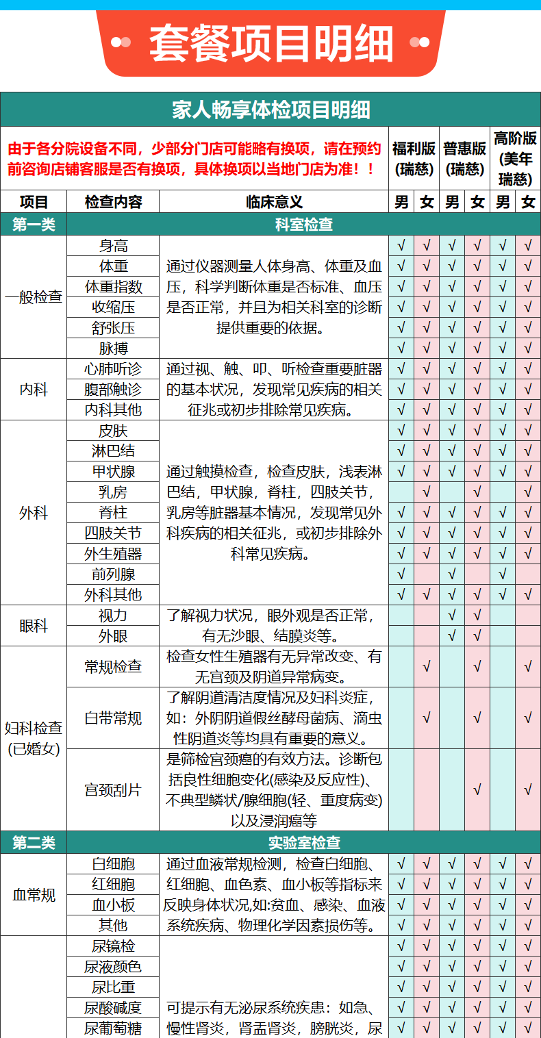 美年大健康/瑞慈体检家人畅享A体检套餐女士中青年中老年父母男士全国500+门店通用体检卡 高阶版(1人)(美年瑞慈) 2个工作日内店铺客服(咚咚)发您卡密自主预约
