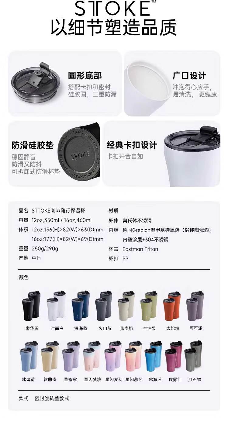 慕咖STTOKE咖啡杯星彩星闪系列密封保温杯陶瓷覆盖内胆随行杯生日礼物 星彩紫460ml【星彩系列】