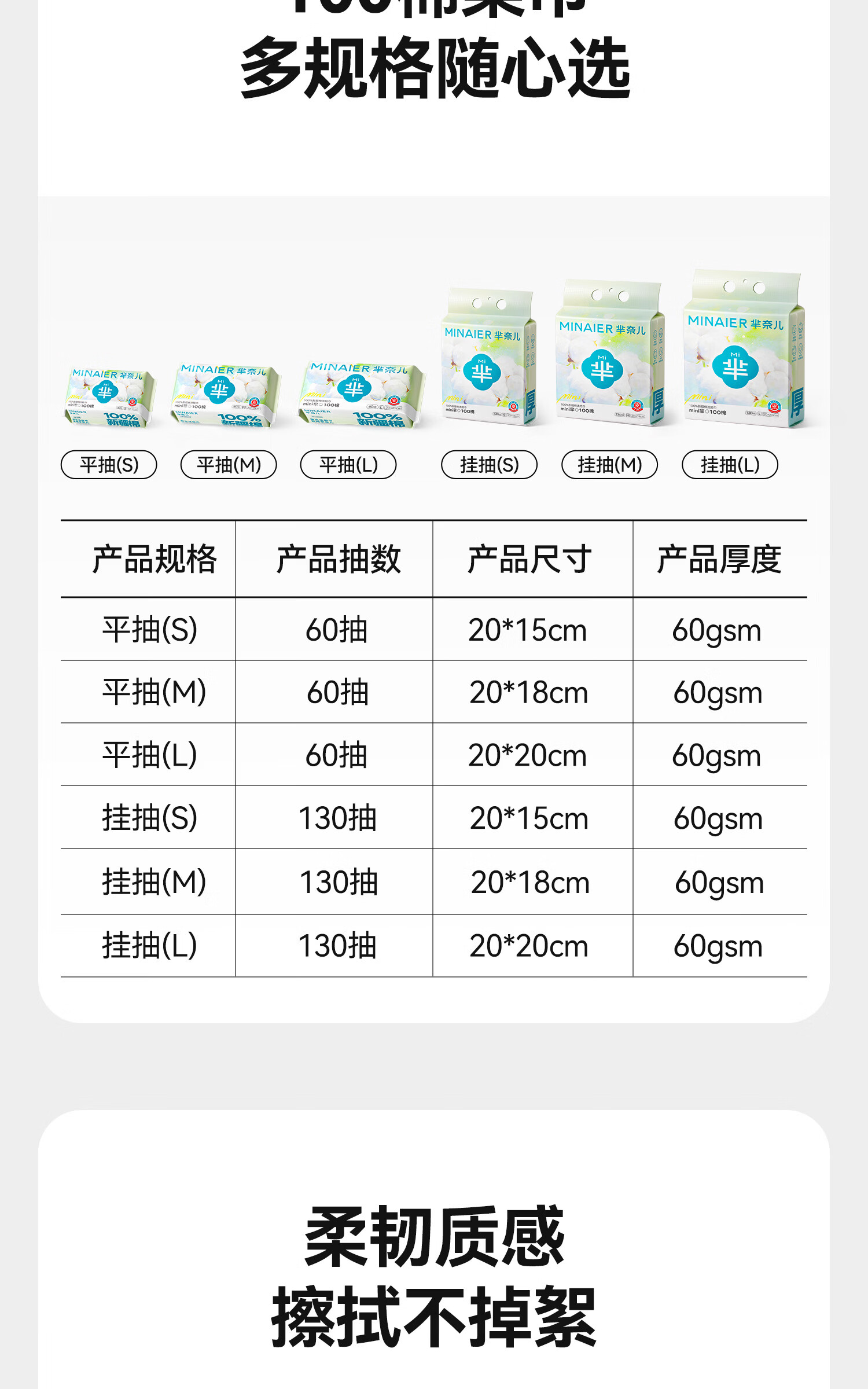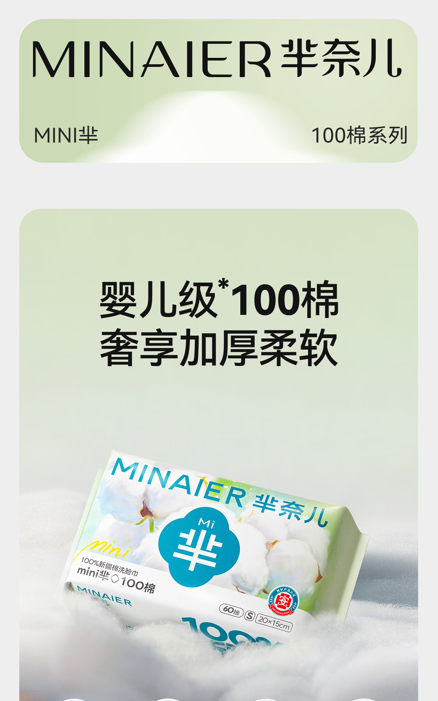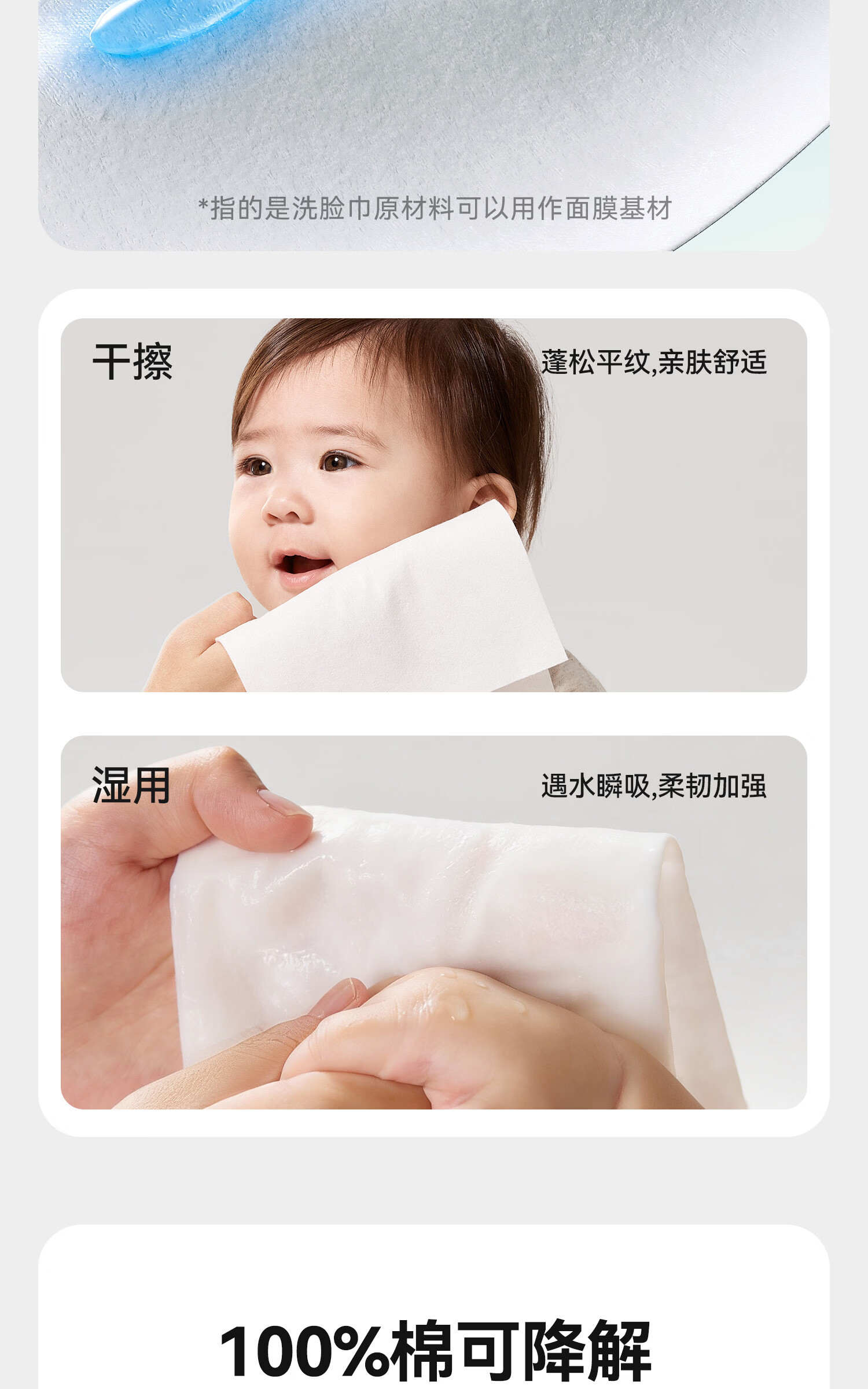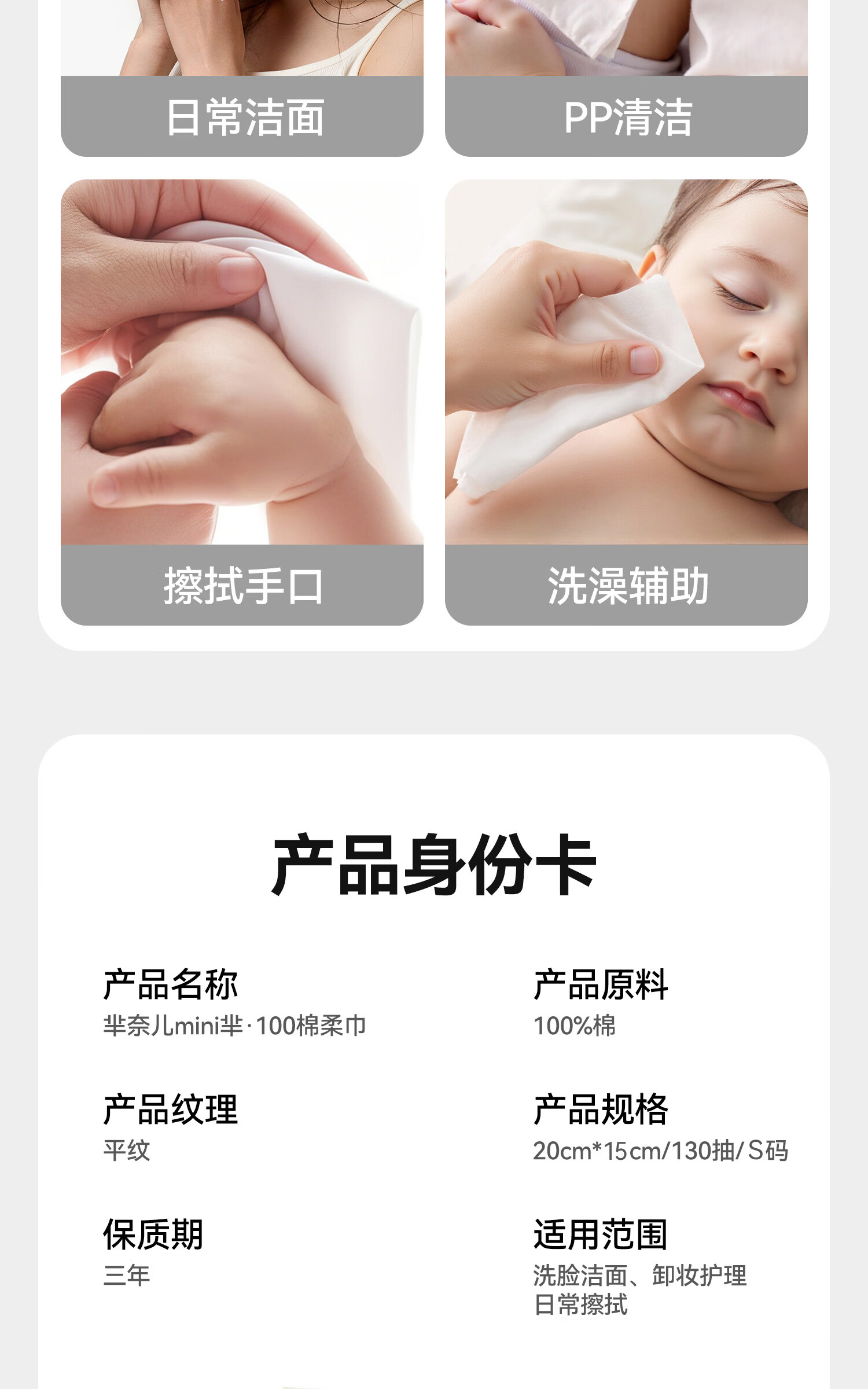 芈奈儿婴儿棉柔巾加大加厚100%纯棉干湿两用新生儿专用洗脸巾洁面巾 L码130抽*3包