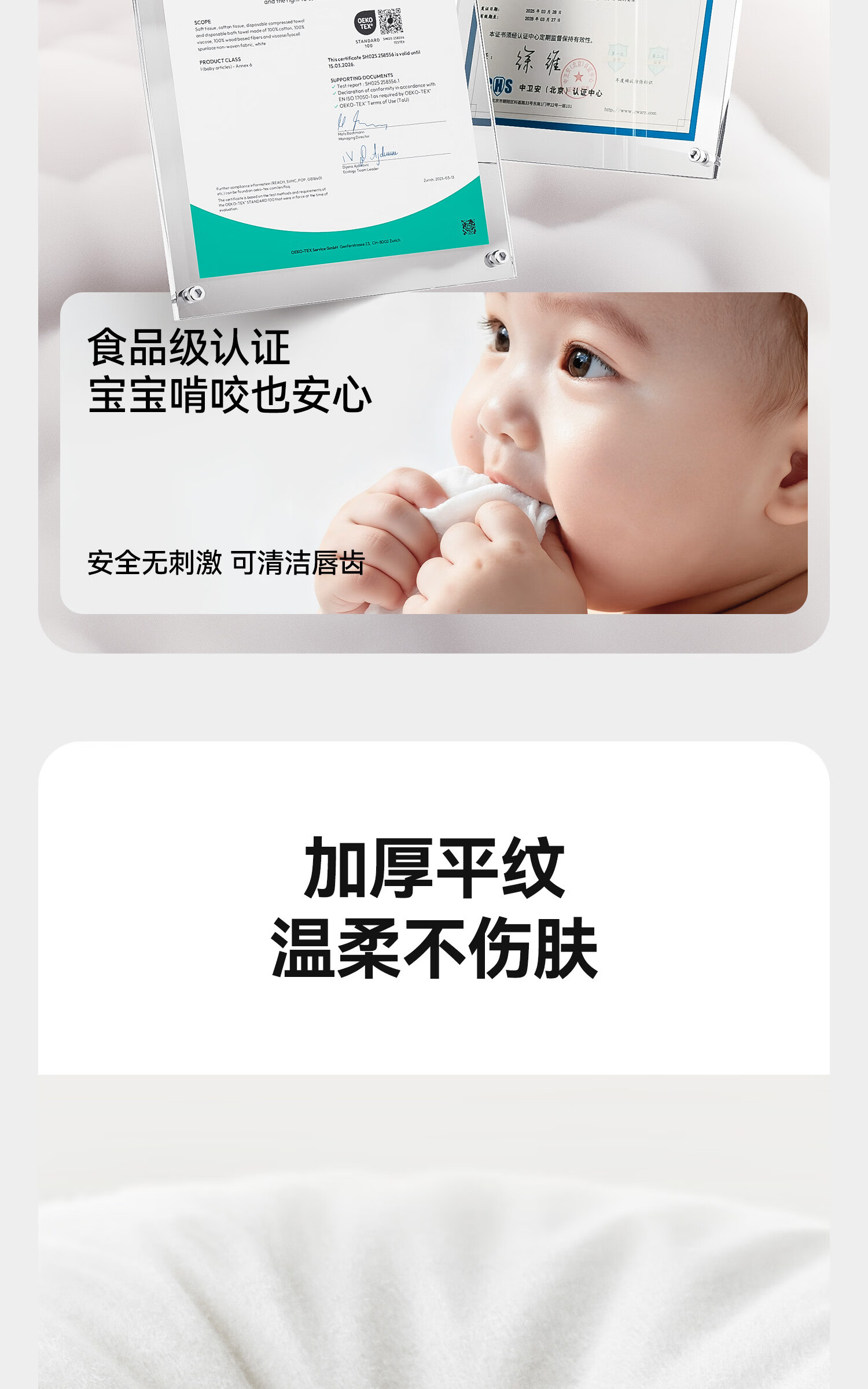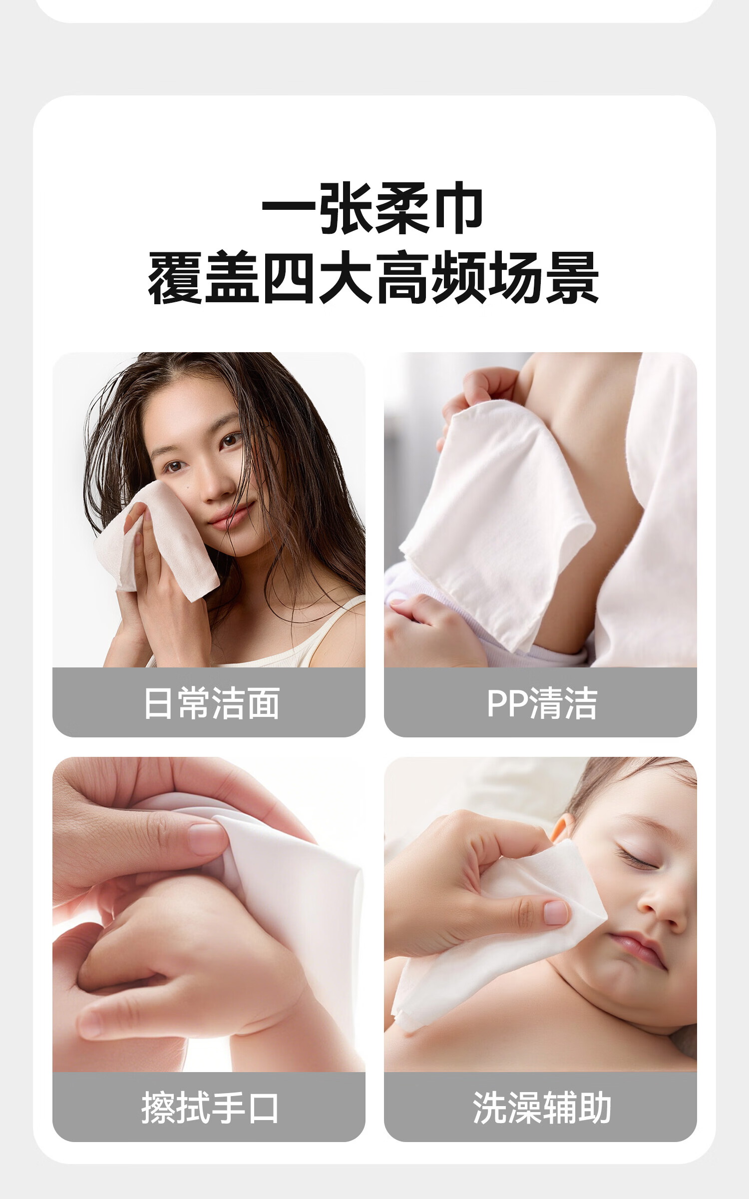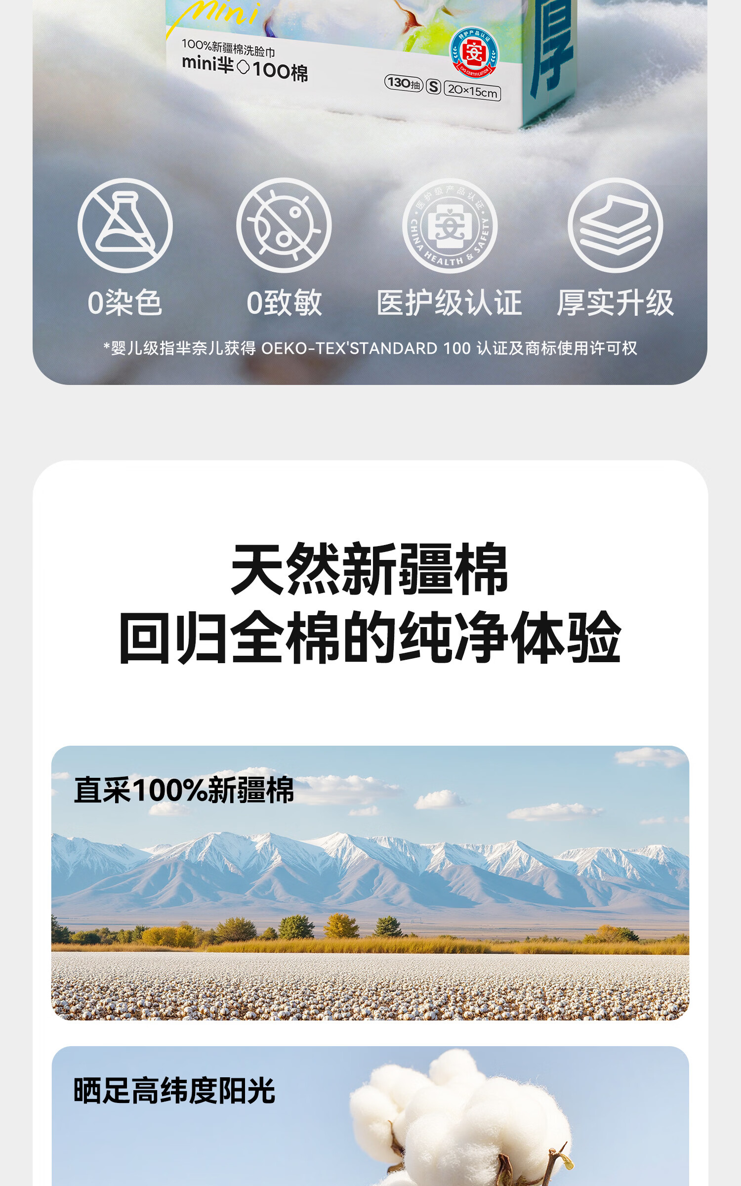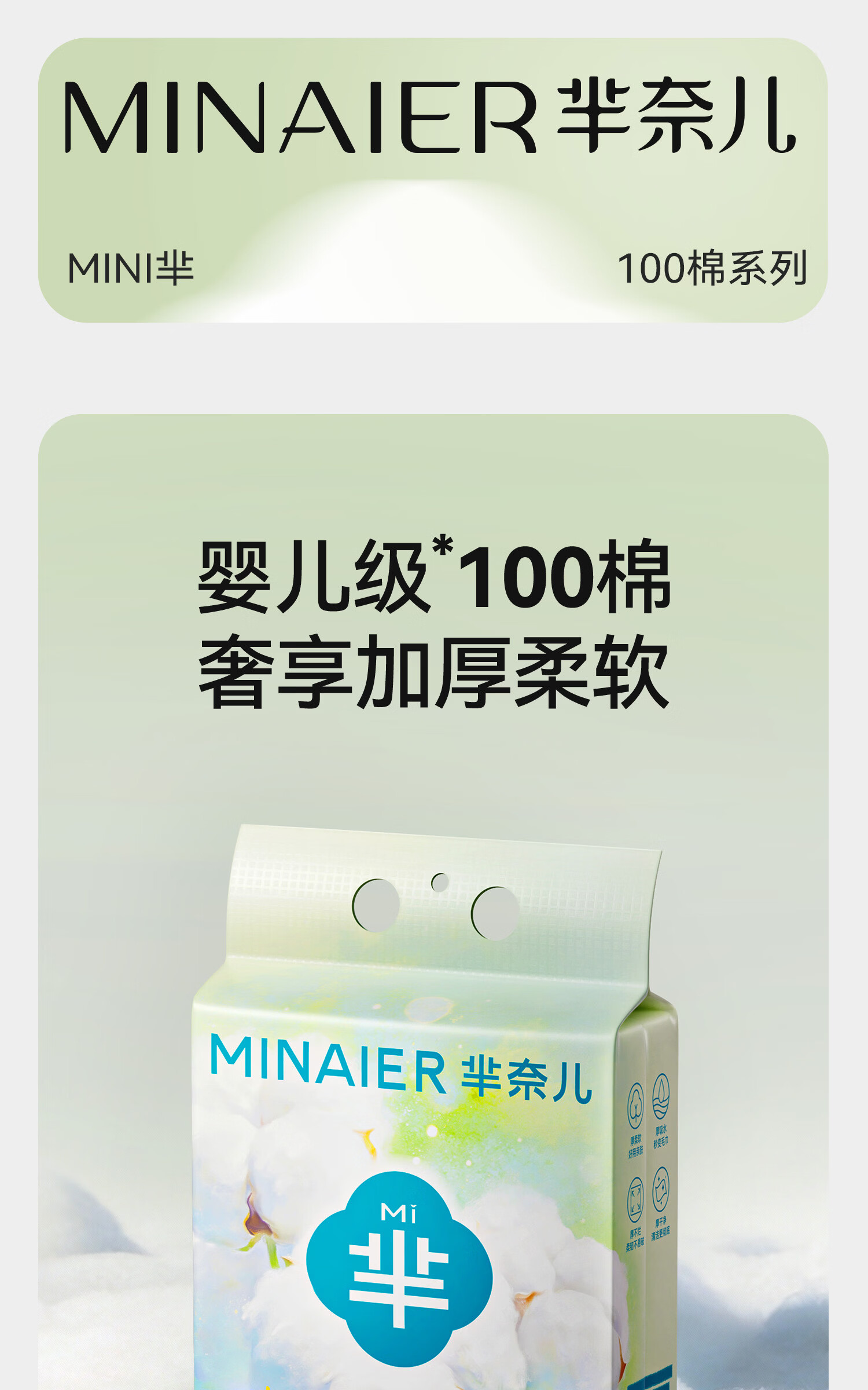 芈奈儿婴儿棉柔巾加大加厚100%纯棉干湿两用新生儿专用洗脸巾洁面巾 L码130抽*3包