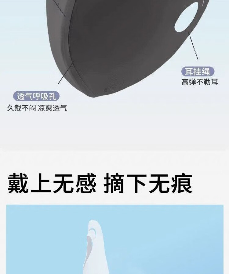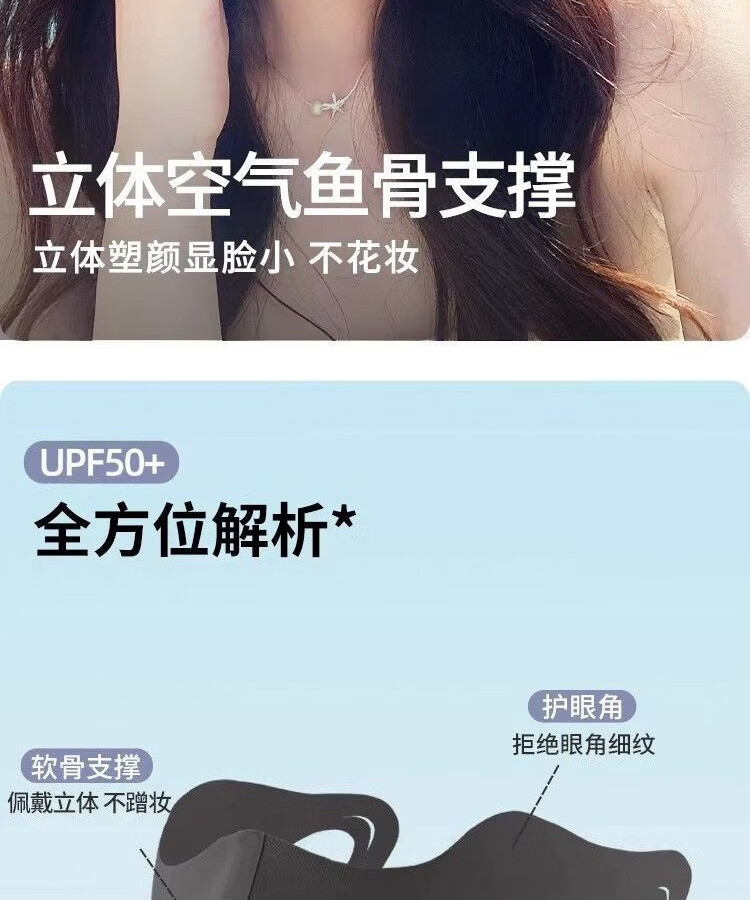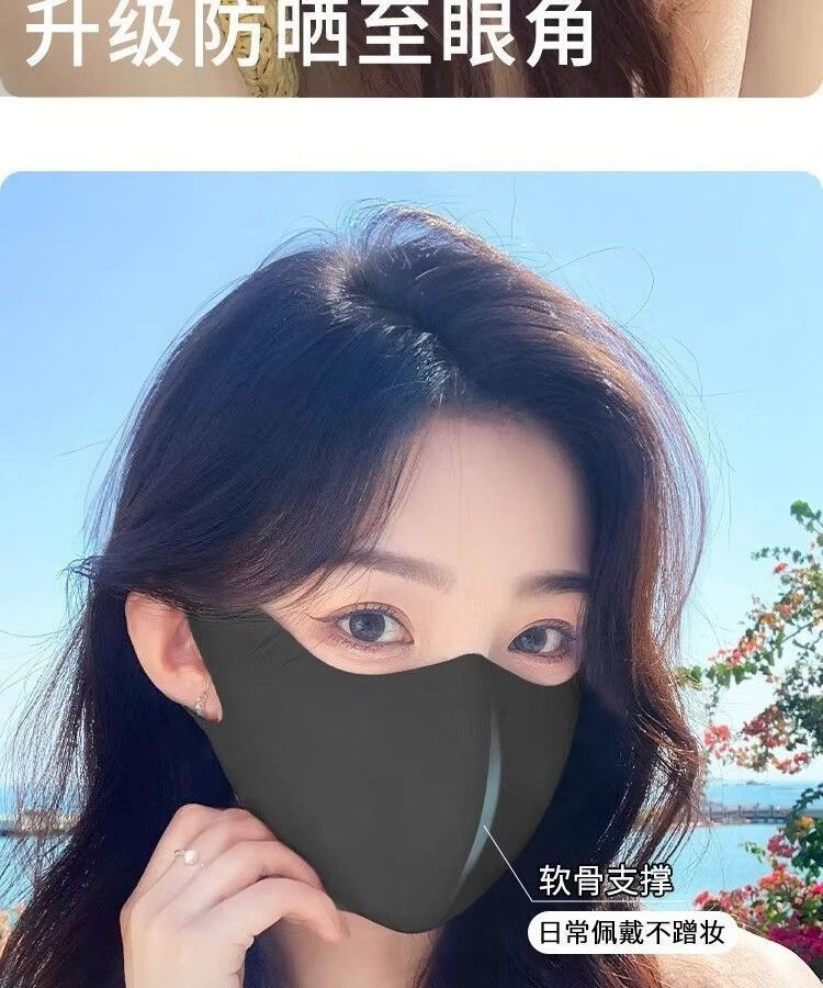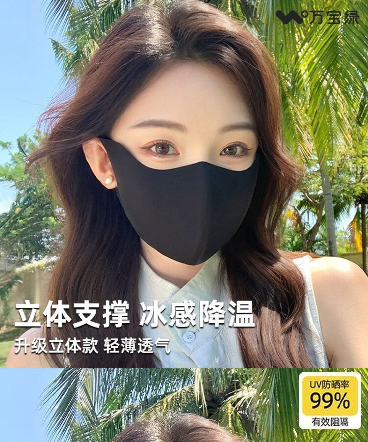万宝绿冰丝口罩女高颜值2026新款无痕3d立体防晒面罩夏防紫外线透气遮阳 云碳黑+云碳黑【冰感防晒 防紫外线】