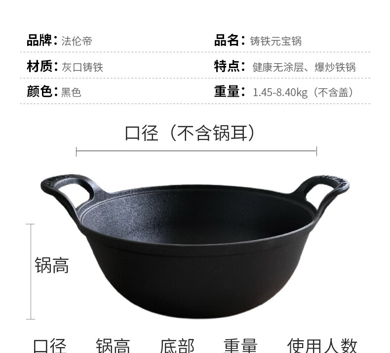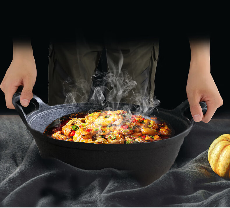 巴拿赫加厚双耳纯铸铁炖锅炒锅无涂层不粘锅老式生铁锅燃气灶电磁炉通用 加厚铸铁锅(订制) 40英寸