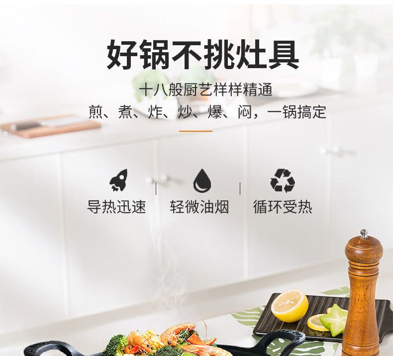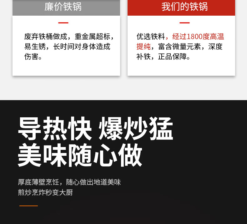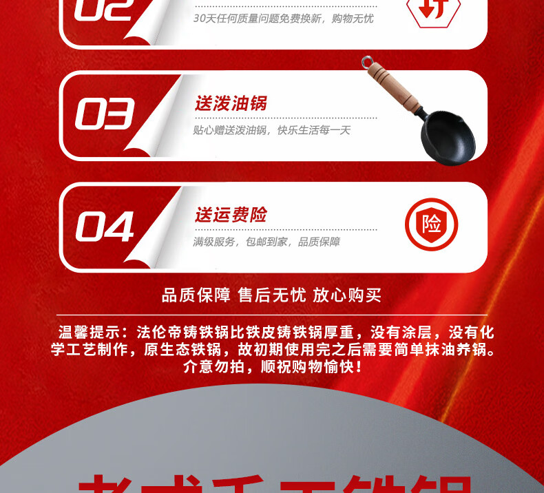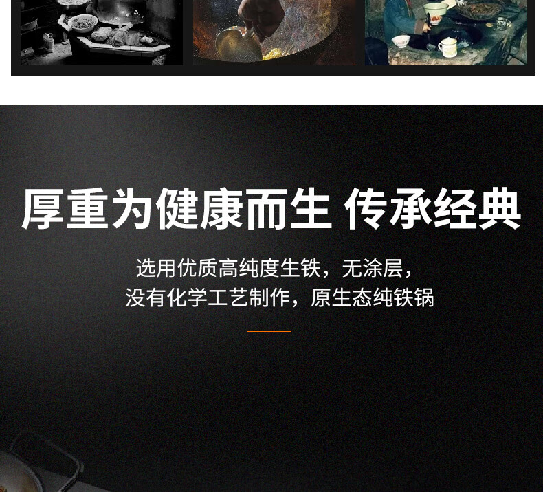 臻古朴铁锅炒锅无涂层精铁锅平底炒菜锅不粘锅炒勺电磁炉燃气灶用已开锅 无涂层极铁锅【免开锅+锅盖】 32cm