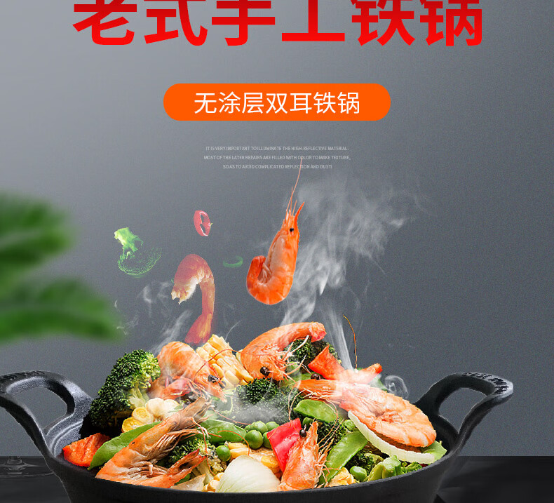 阎铁匠章丘铸铁锅炒锅无涂层炒菜锅炖锅不易粘家用圆底老式双耳锅 老式双耳铸铁锅 40cm