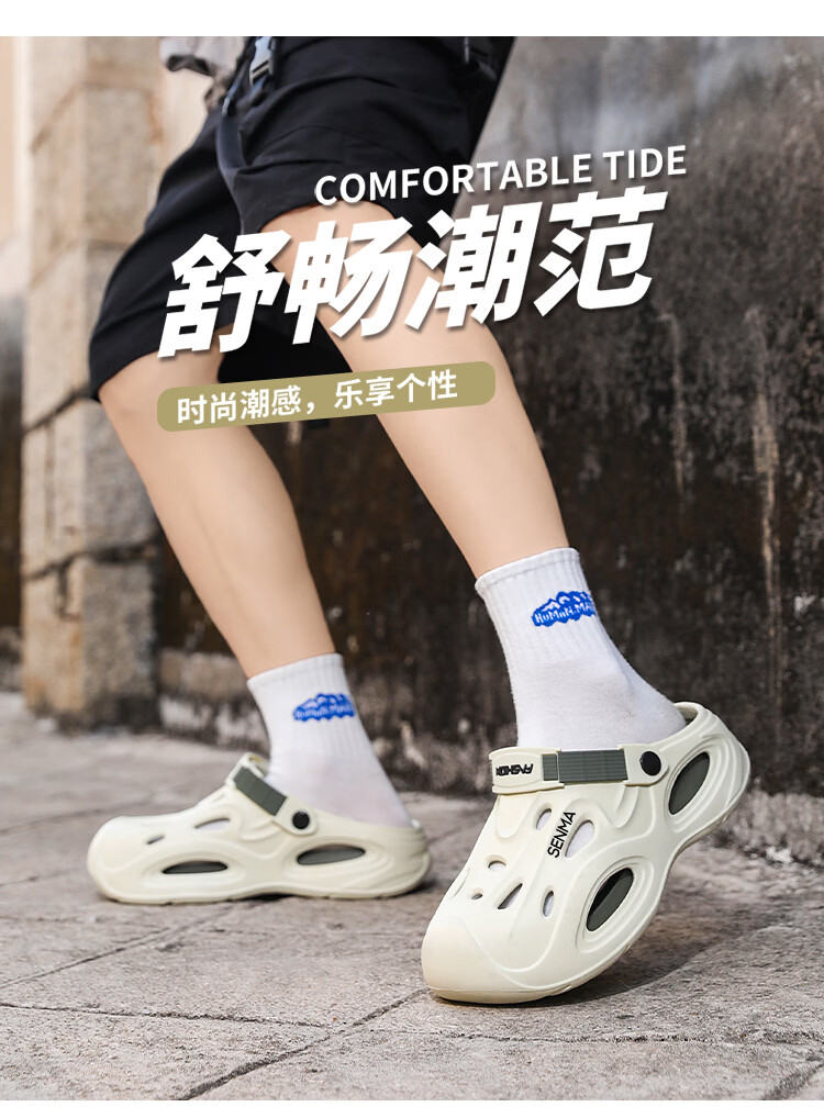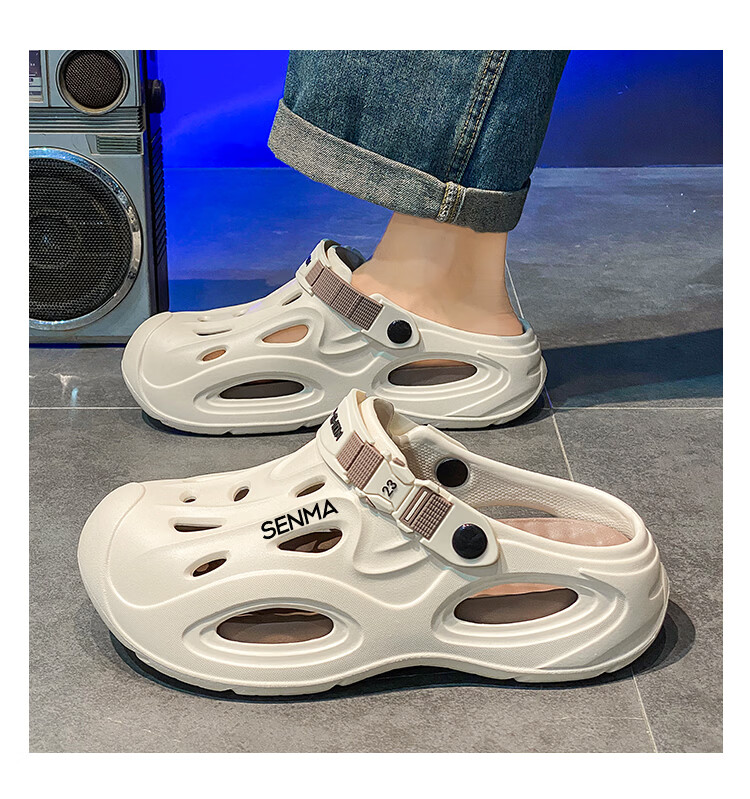 森馬凉鞋男2026夏季外穿防滑司机开车两用洞洞鞋运动休闲包头沙滩拖鞋 米棕【基础款】 38-39 现货秒发