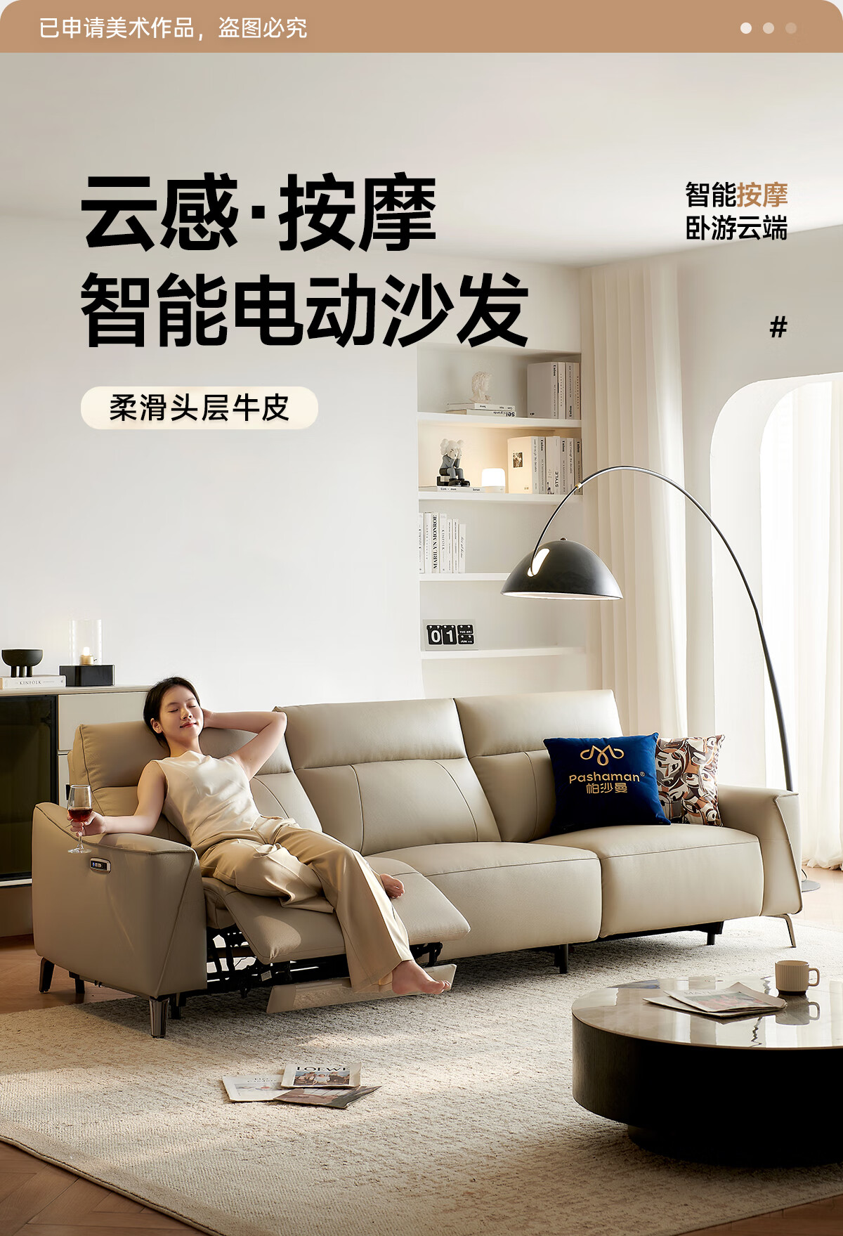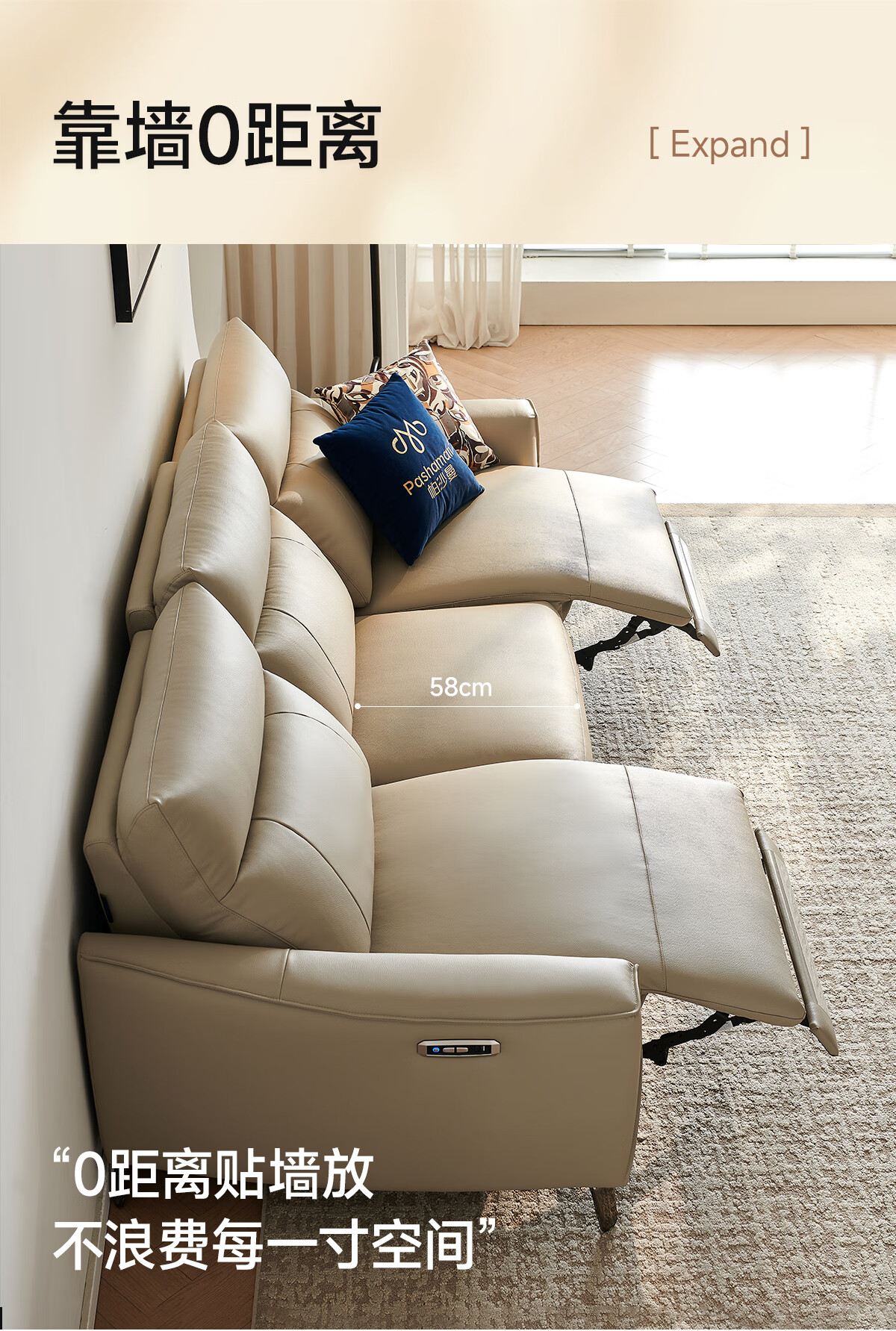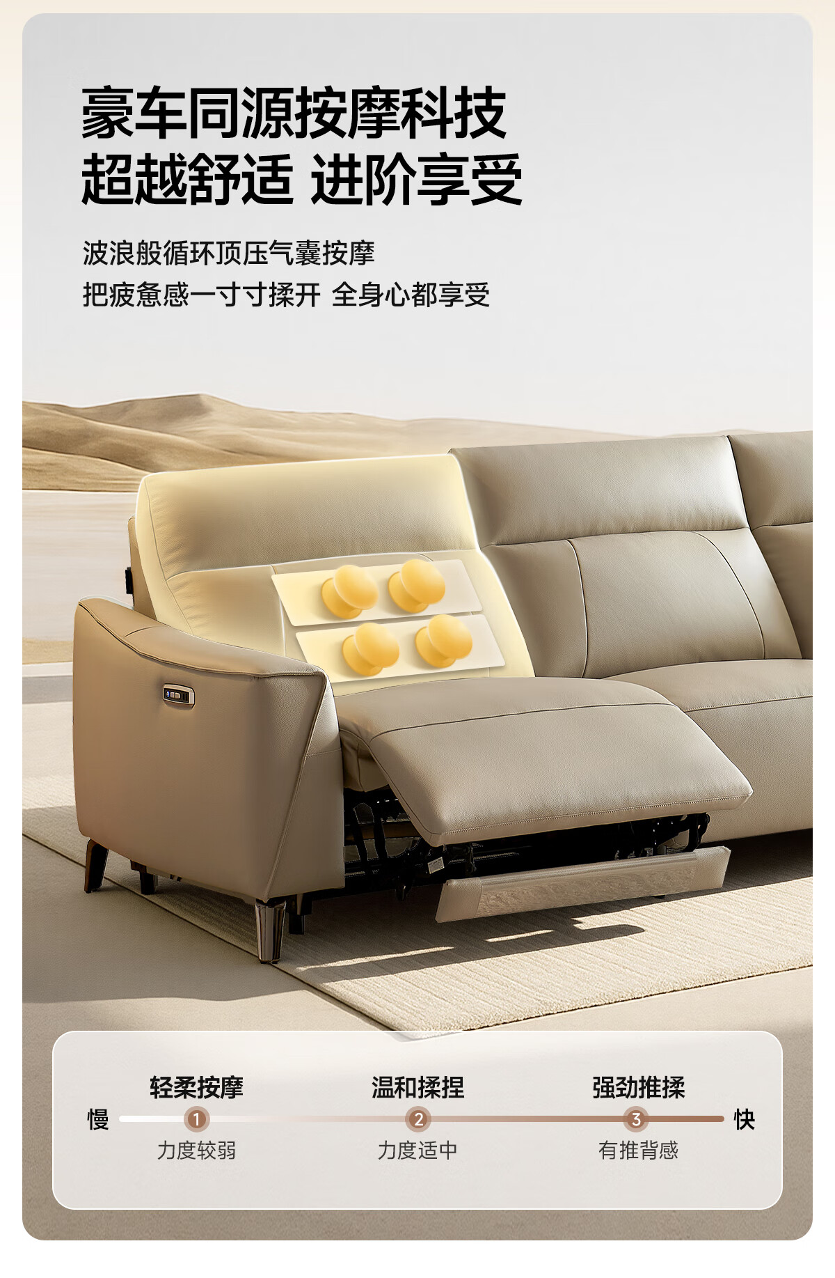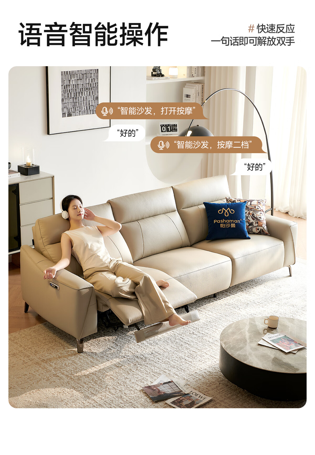 帕沙曼首款腰背按摩功能皮艺沙发2025新款客厅家用现代电动沙发GF512-C 坐感王【双电动+双气囊按摩+语音】3.48米双人位 柔滑头层牛皮MX(高回弹无粉乳棉)